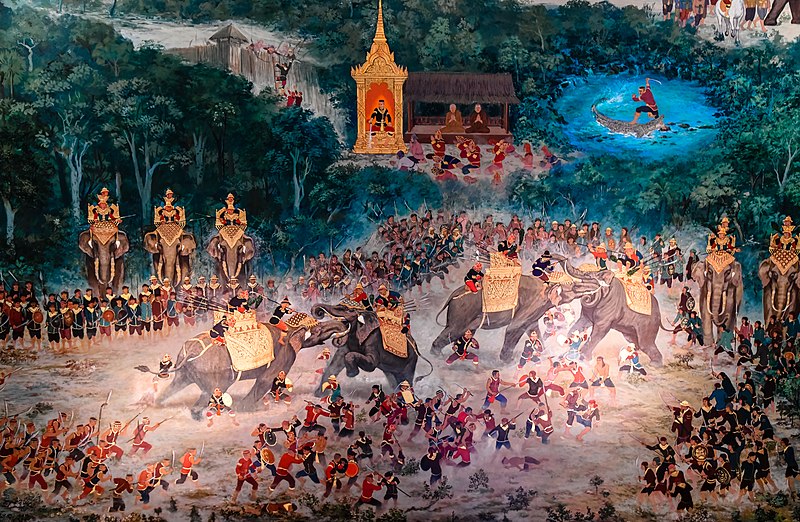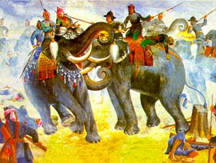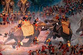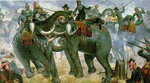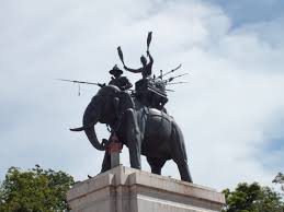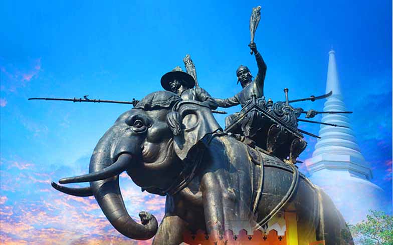 สงครามยุทธหัตถีในสมัยสมเด็จพระนเรศวรมหาราช เกิดขึ้นเมื่อปี พ.ศ. 2135 ในครั้งนั้นพระเจ้านันทบุเรงได้ให้พระมหาอุปราชายกทัพใหญ่มาตีกรุงศรีอยุธยา สมเด็จพระนเรศวรมหาราชทรงทราบข่าวจึงยกทัพหลวงไปตั้งรับที่หนองสาหร่าย ซึ่งระหว่างที่การรบกำลังดำเนินอยู่นั้น ช้างพระที่นั่งของสมเด็จพระนเรศวรมหาราช และพระเอกาทศรถ ก็ได้ไล่ล่าศัตรูไปจนออกนอกเขตแดน จนทำให้ทั้งสองพระองค์ตกไปอยู่ในวงล้อมของศัตรูโดยไม่รู้ตัว แต่ถึงแม้จะอยู่ในสภาวะเสียเปรียบ พระองค์ก็มีพระสติ ไม่หวั่นไหว และทรงแก้ไขปัญหาได้อย่างรวดเร็ว ว่าทางที่จะรอดได้มีเพียงทางเดียวเท่านั้น คือเชิญพระมหาอุปราชาเสด็จมาทำยุทธหัตถี ในท้ายที่สุดพระองค์ก็สามารถกระทำยุทธหัตถีได้รับชัยชนะอย่างสมพระเกียรติ และนับตั้งแต่นั้นมาก็ไม่มีกองทัพใดกล้ายกทัพมาตีกรุงศรีอยุธยาอีกเลย ทำให้ในสมัยนั้นไทยได้ขยายอาณาเขตไปอย่างกว้างขวางกว่าสมัยใดๆ