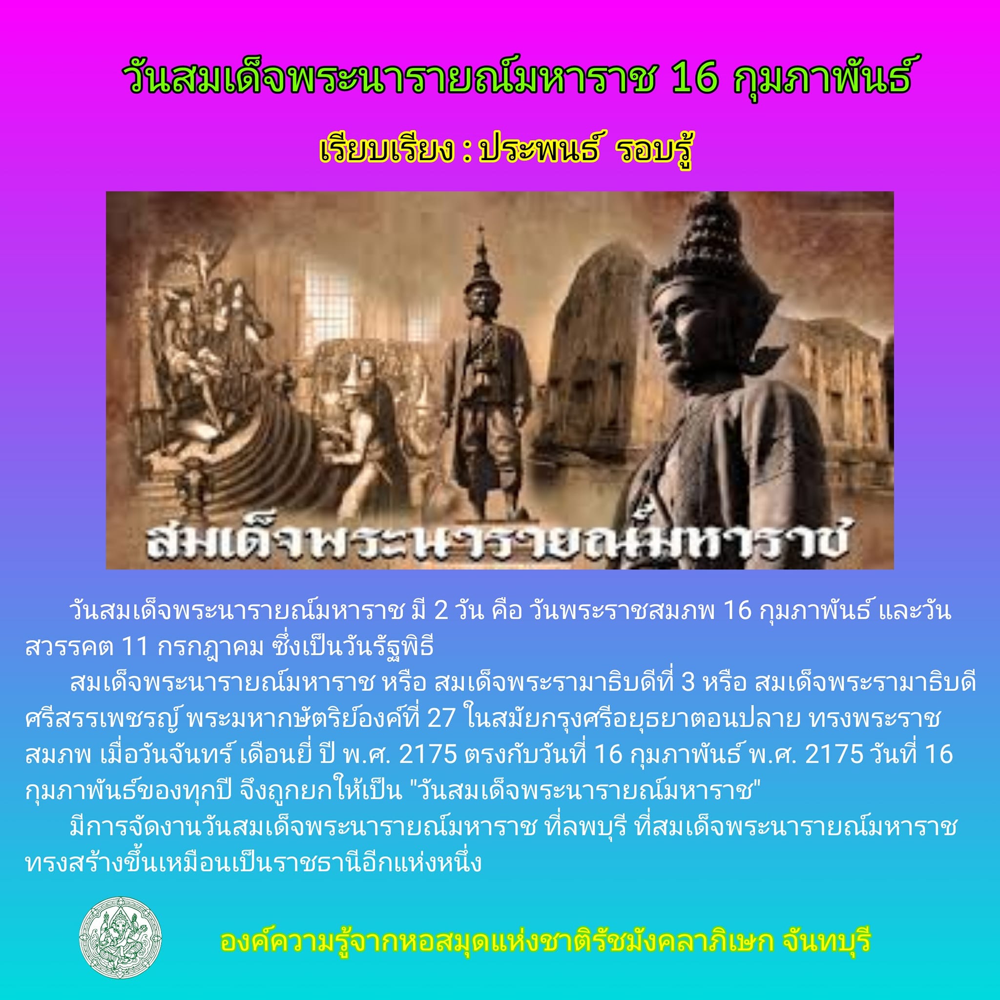 เรื่อง "วันสมเด็จพระนารายณ์มหาราช 16 กุมภาพันธ์"