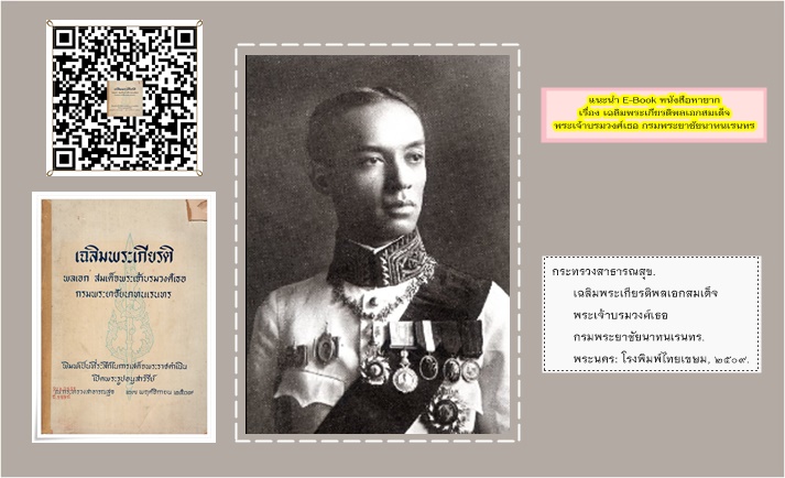 กระทรวงสาธารณสุข. เฉลิมพระเกียรติพลเอกสมเด็จพระเจ้าบรมวงศ์เธอ กรมพระยาชัยนาทนเรนทร. พระนคร: โรงพิมพ์ไทยเขษม, 2509.