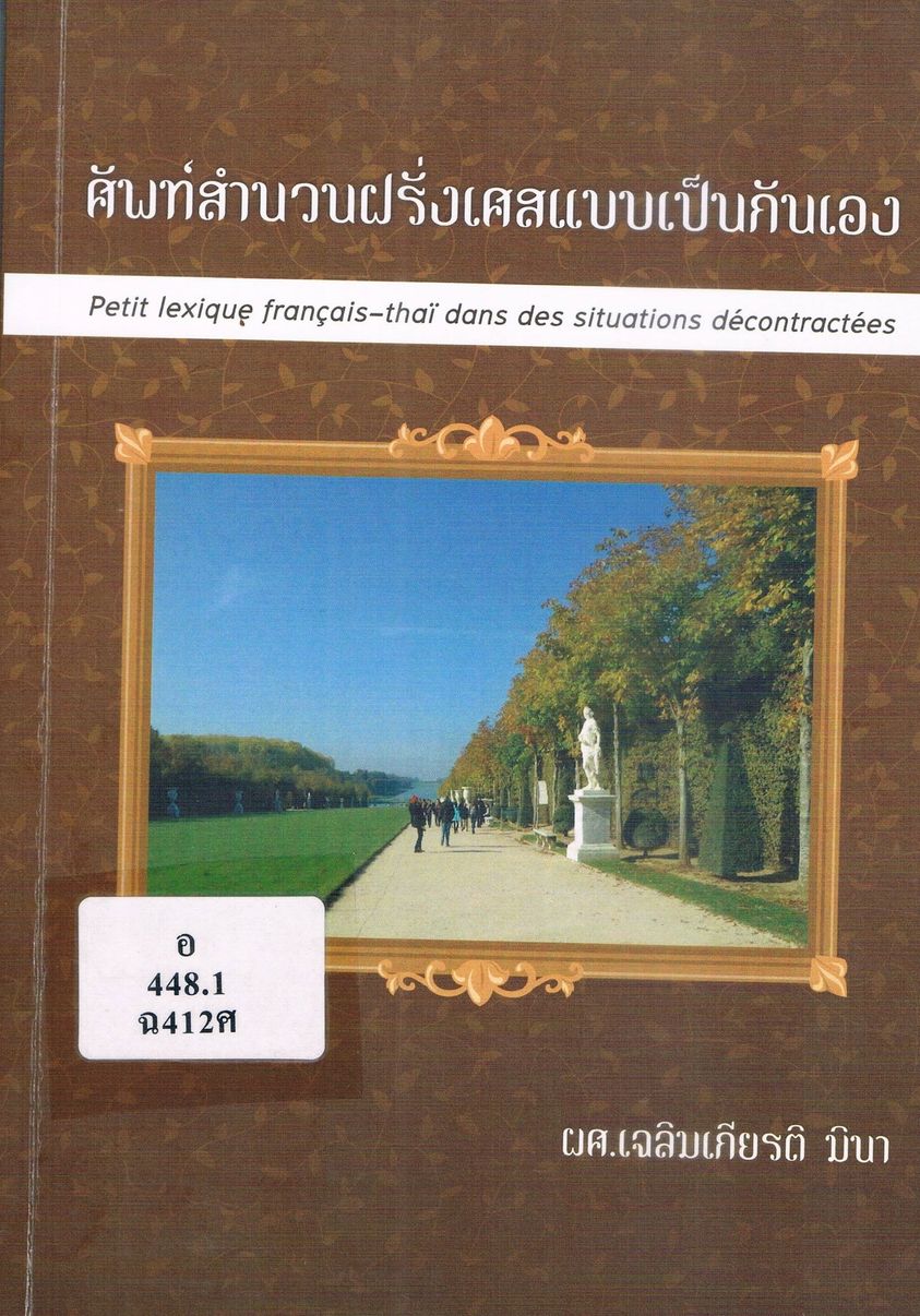 เฉลิมเกียรติ มินา. ศัพท์สำนวนฝรั่งเศสแบบเป็นกันเอง. ขอนแก่น : คณะ มนุษยศาสตร์และสังคมศาสตร์ มหาวิทยาลัยขอนแก่น, 2564. 75หน้า.
