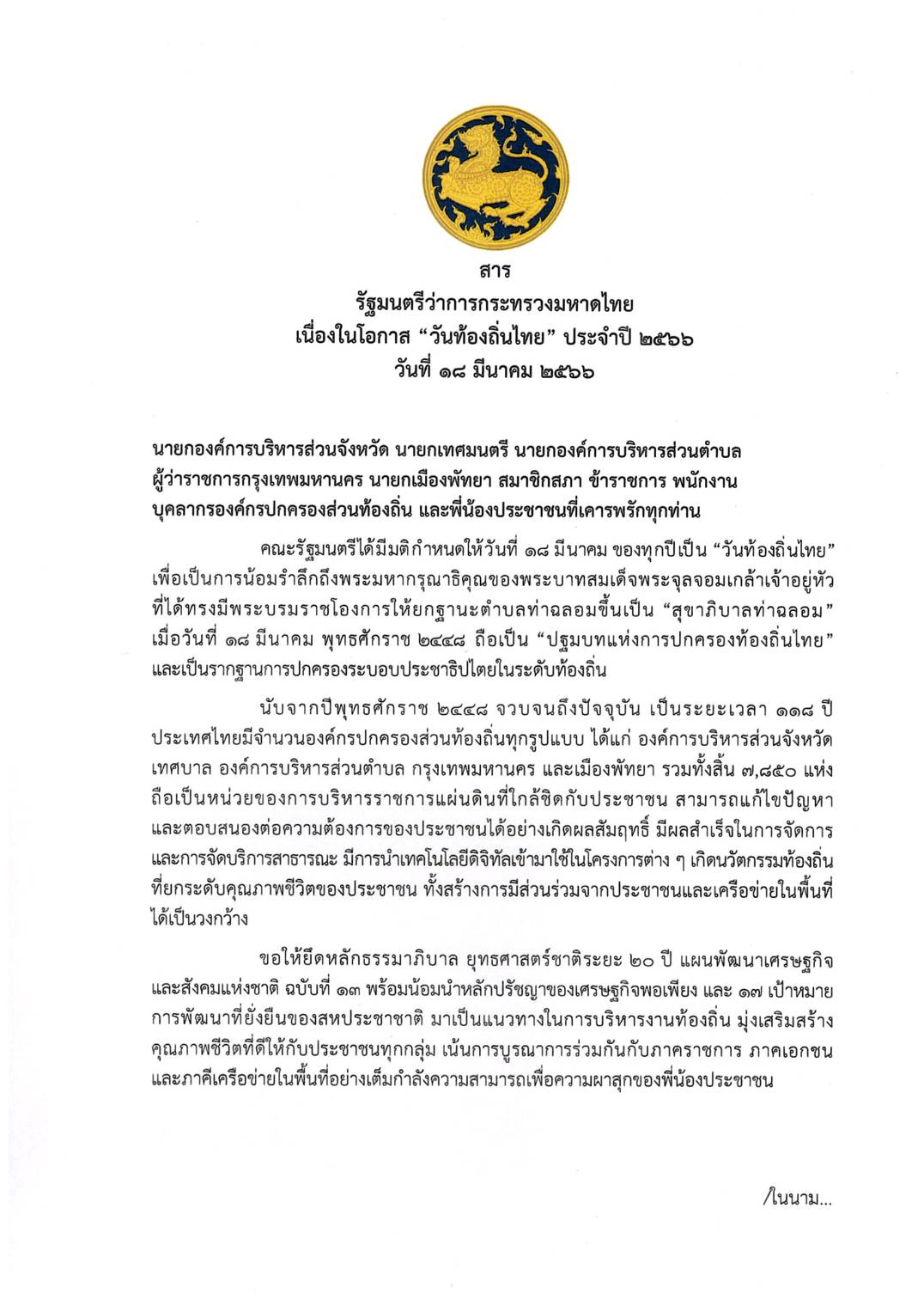 18 มีนาคม วันท้องถิ่นไทย