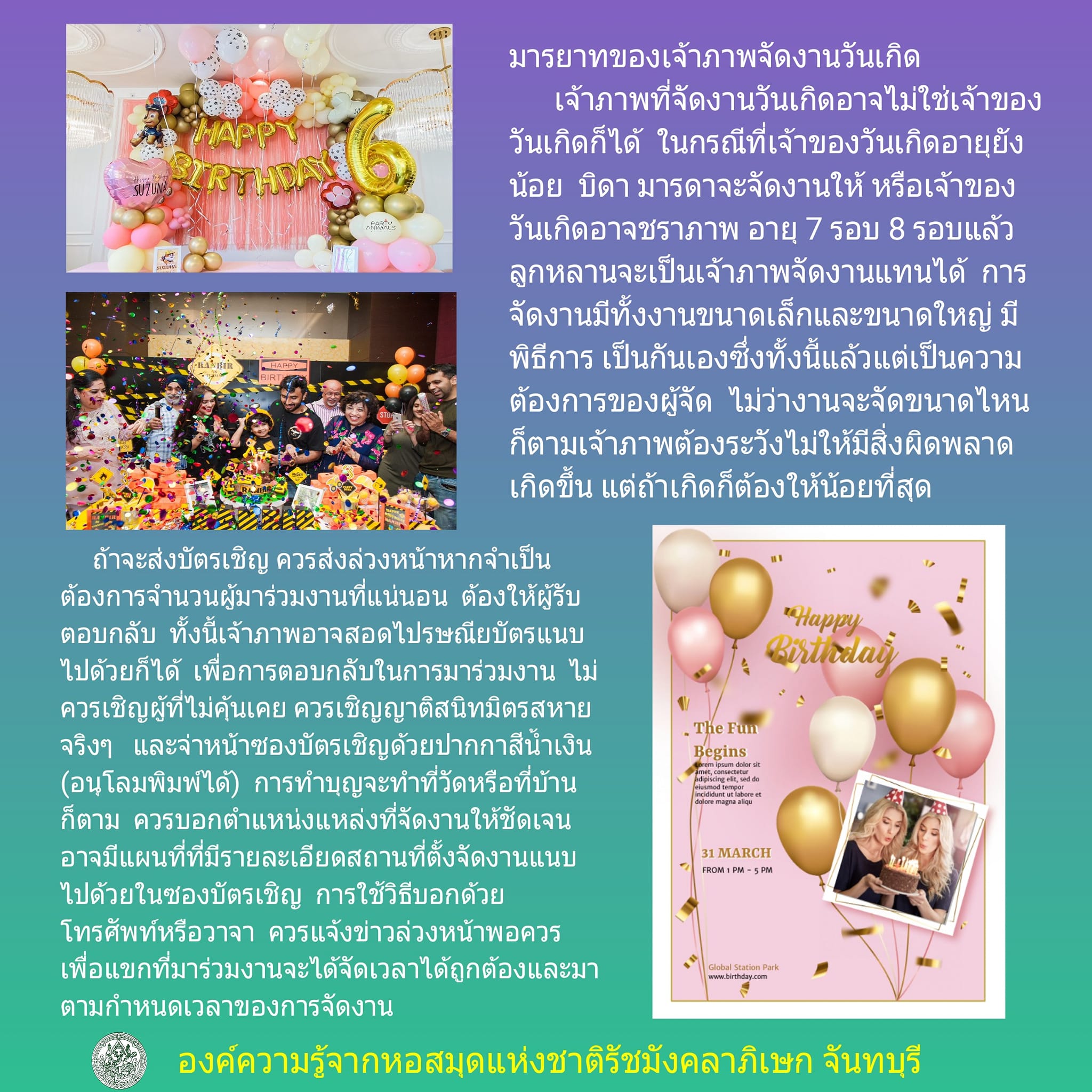 องค์ความรู้ส่งเสริมการอ่านผ่านออนไลน์ เรื่อง "มารยาทในงานวันเกิด"
