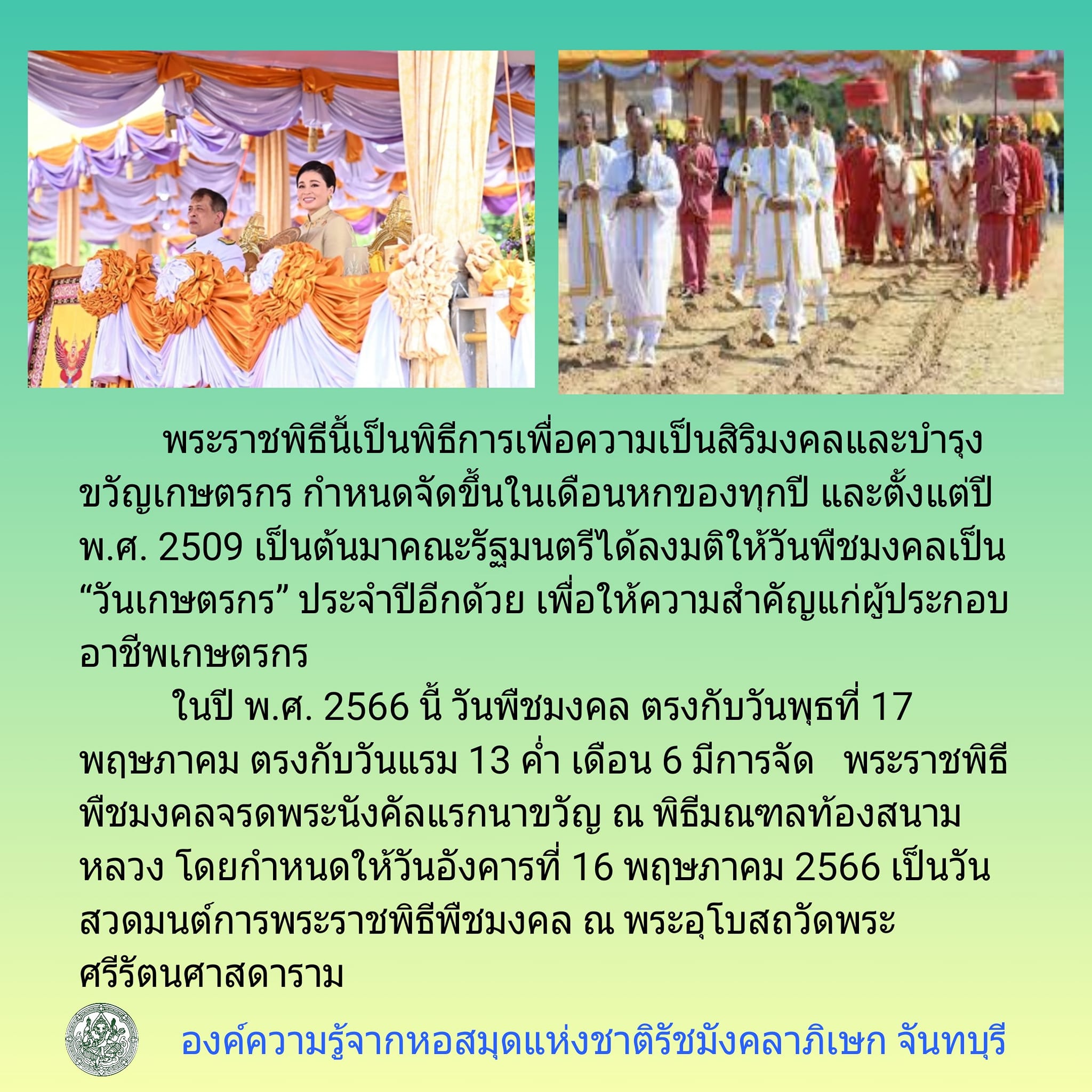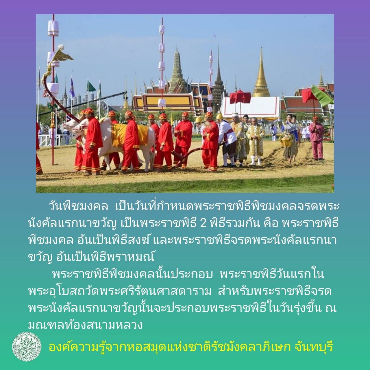 องค์ความรู้ ส่งเสริมการอ่านผ่านออนไลน์ เรื่อง “วันพืชมงคล และวันเกษตรกร”