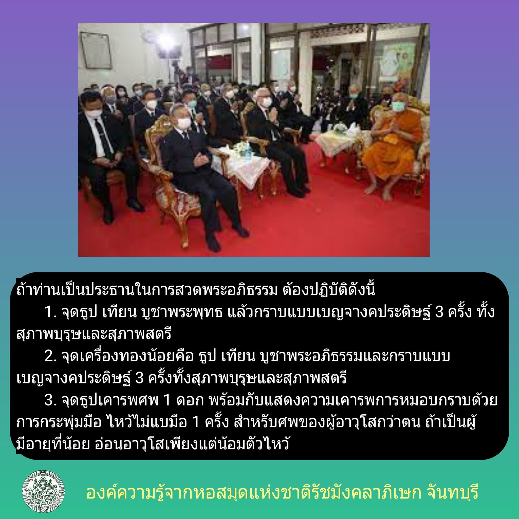 ถ้าท่านเป็นประธานในการสวดพระอภิธรรม ต้องปฏิบัติดังนี้