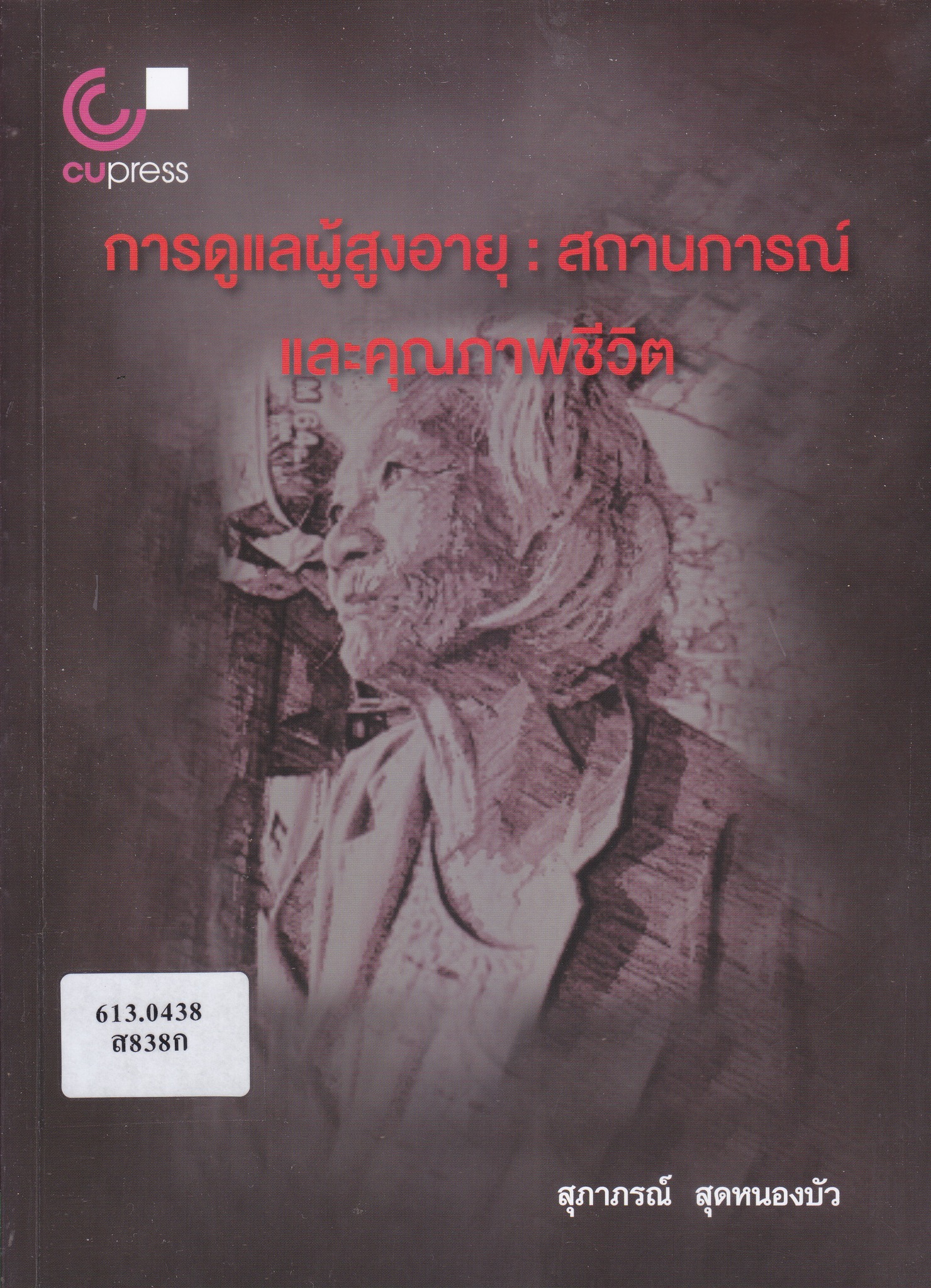 สุภาภรณ์ สุดหนองบัว. การดูแลผุ้สูงอายุ : สถานการณ์และคุณภาพชีวิต. พิมพ์ครั้งที่ 2. กรุงเทพฯ: จุฬลงกรณ์มหาวิทยาลัย, 2565. 218 หน้า. ภาพประกอบ. 250 บาท.