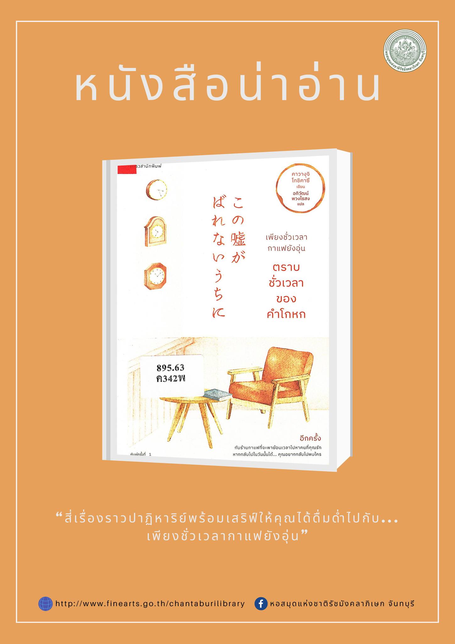 คาวางุจิ, โทชิคาซึ. เพียงชั่วเวลากาแฟยังอุ่น ตราบชั่วเวลาของคำโกหก. กรุงเทพฯ: แพรวสำนักพิมพ์, 2565.