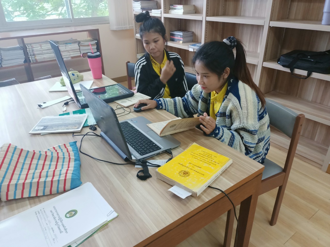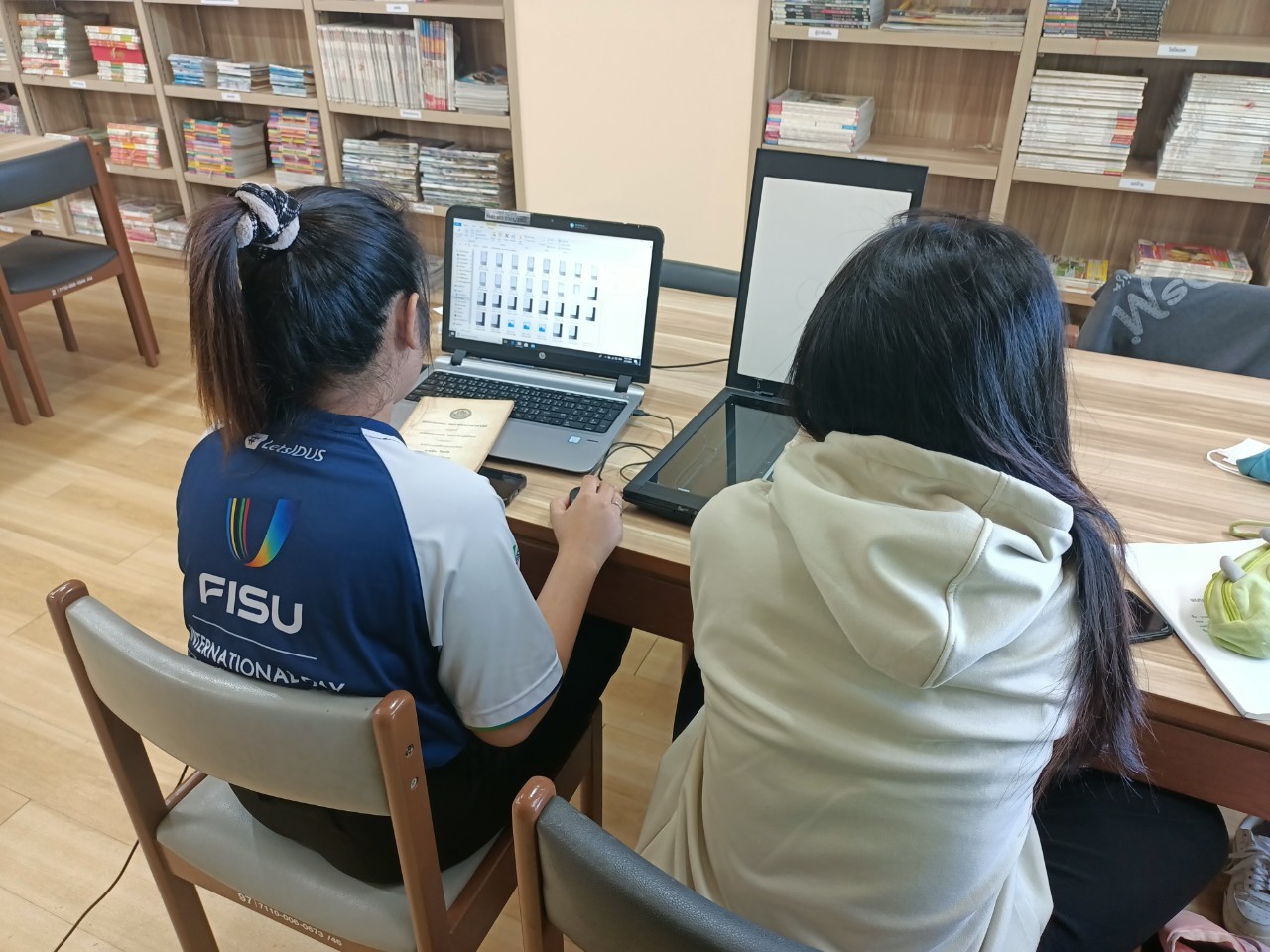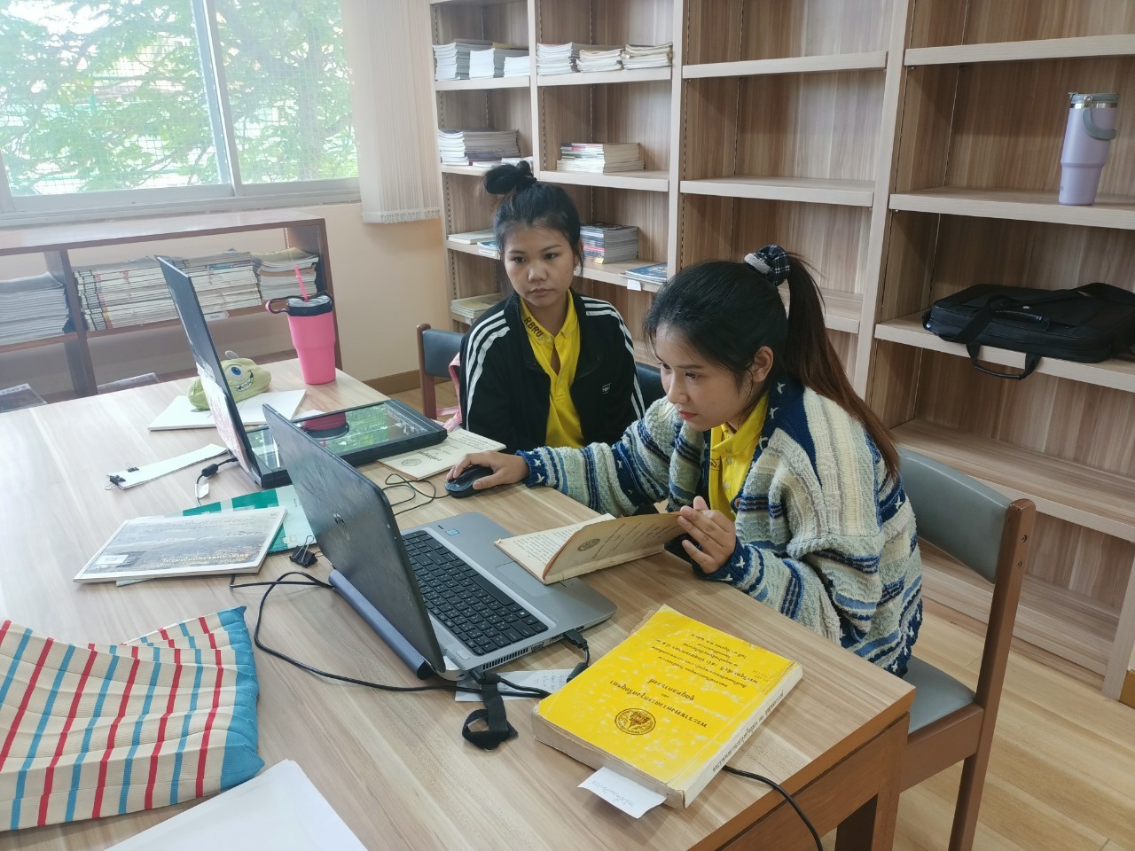 นางสาวทับทิม พันธ์จำปา และนางสาวศศิรินทร์ มีทรัพย์มั่น นักศึกษาสหกิจศึกษา สาขาวิชาภาษาไทย มหาวิทยาลัยราชภัฏรำไพพรรณี ฝึกปฏิบัติงานห้องสมุด และงานบริการห้องวารสารและหนังสือพิมพ์ ระหว่างวันที่ วันที่ 25 พฤศจิกายน - 9 ธันวาคม 2566 โดยนายสุรศักดิ์ บัวเลียง เจ้าพนักงานห้องสมุดปฏิบัติงาน เป็นผู้ฝึกสอน