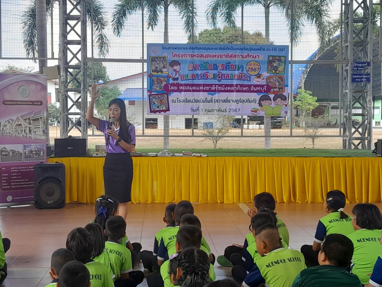 กิจกรรมโครงการหอสมุดแห่งชาติสู่สถานศึกษา : ส่งเสริมการศึกษาและการเรียนรู้ตลอดชีวิต ประจำปี 2567 ครั้งที่ 3 ณ โรงเรียนวัดเนินโพธิ์ (สวาสดิ์ราษฎร์อุปถัมภ์)