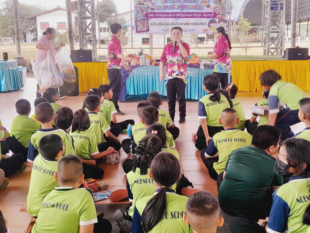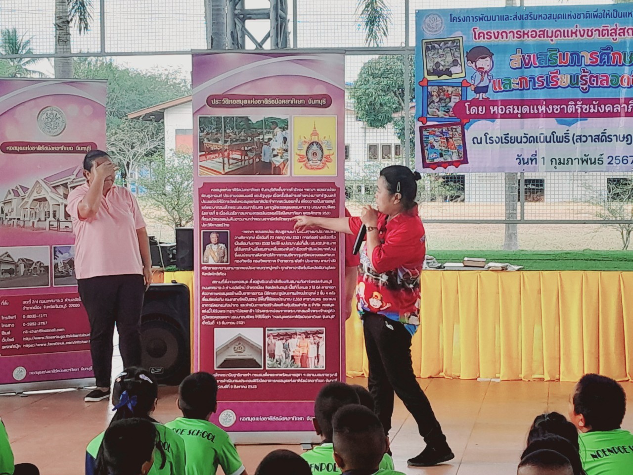 วันพฤหัสบดีที่ 1 กุมภาพันธ์ 2567 หอสมุดแห่งชาติรัชมังคลาภิเษก จันทบุรี จัดกิจกรรมโครงการหอสมุดแห่งชาติสู่สถานศึกษา : ส่งเสริมการศึกษาและการเรียนรู้ตลอดชีวิต ประจำปี 2567 ครั้งที่ 3 ณ โรงเรียนวัดเนินโพธิ์ (สวาสดิ์ราษฎร์อุปถัมภ์) ต.หนองบัว อ. เมือง จ.จันทบุรี นางสาวเพ็ญนภา วิสารวุฒิ ผู้อำนวยการโรงเรียนวัดเนินโพธิ์ (สวาสดิ์ราษฎร์อุปถัมภ์) กล่าวต้อนรับคณะวิทยากร และเจ้าหน้าที่จากหอสมุดแห่งชาติรัชมังคลาภิเษก จันทบุรี นางสาวเมษา ครุปิติ ผู้อำนวยการหอสมุดแห่งชาติรัชมังคลาภิเษก จันทบุรี กล่าวถึงวัตุประสงค์และเปิดโครงการ จากนั้นได้มอบหนังสือให้กับโรงเรียน และถ่ายภาพหมู่ร่วมกัน กิจกรรมประกอบด้วย การแนะนำให้รู้จักกับหอสมุดแห่งชาติรัชมังคลาภิเษก จันทบุรี การแนะนำทรัพยากรสารสนเทศ และให้นักเรียนตอบคำถามเกี่ยวกับหอสมุดแห่งชาติฯ จันทบุรี กิจกรรมเล่านิทานและระบายสีภาพสำหรับนักเรียนชั้นอนุบาล นักเรียนร่วมแข่งขันเกมนันทนาการต่างๆ ประกอบด้วย - เกมส์เหยียบลูกโป่ง - เก้าอี้ดนตรี - เกมส์ใส่กางเกงในไร้มือ - การแข่งขันการเต้นประกอบเพลง จบจากกิจกรรมนันทนาการ นักเรียนได้อ่านหนังสือที่ตนเองสนใจ ในช่วงท้ายรายการผู้แทนนักเรียนกล่าวขอบคุณคณะวิทยากรจากหอสมุดแห่งชาติฯ นางสาวเมษา ครุปิติ ผู้อำนวยการหอสมุดแห่งชาติฯ จันทบุรี กล่าวปิดโครงการ มีนักเรียนชั้นอนุบาล และชั้นประถมศึกษาปีที่ 1-6 ร่วมกิจกรรม รวมทั้งสิ้น 70 คน