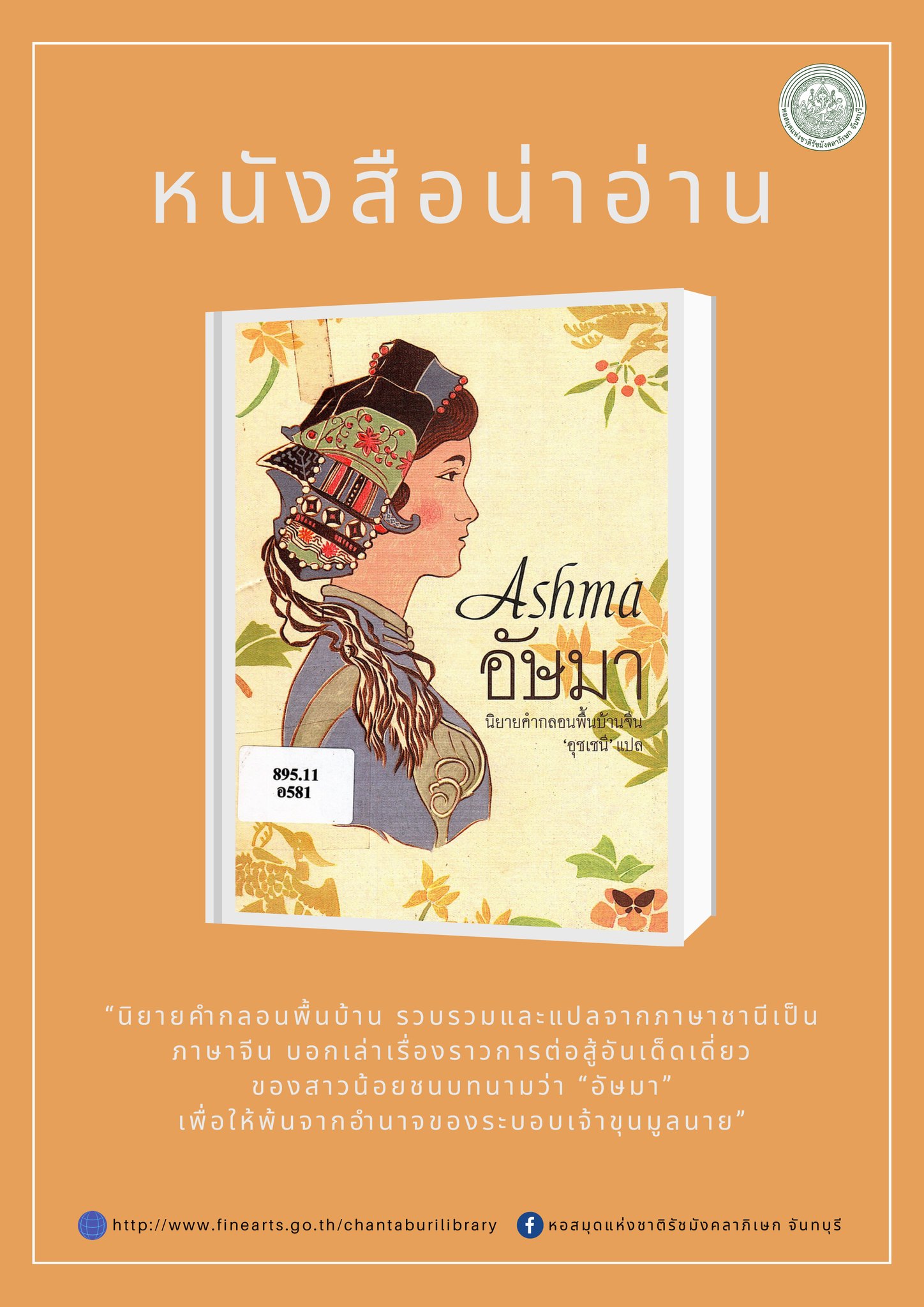 หนังสือนี้มีประวัติยาวนานกว่าครึ่งศตวรรษ นับแต่เป็นหนังสือแปลต้องห้ามในยุคเผด็จการ จนมาถึงยุคโลกไร้พรมแดนในปัจจุบัน อัษมา เป็นนิยายคำกลอนพื้นบ้านจีนขนาดยาวที่มีสีสัน และถ่ายทอดต่อกันมาแบบปากต่อปากนานหลายชั่วอายุคนโดยชนเผ่าชานีในมณฑลยูนนาน เป็นเรื่องราวของสาวน้อยชนบทนามว่า “อัษมา” และพี่ชายของเธอชื่อ “อาเฮย์” ใช้ภาษาที่แบบเรียบง่าย เล่าถึงการต่อสู้อย่างเด็ดเดี่ยวของอัษมาให้พ้นจากอำนาจกดขี่ของเจ้าขุนมูลนายผู้ครองกรรมสิทธิ์ที่ดิน ซึ่งเป็นผู้ลักพาตัวเธอไป อาศัยพลังชีวิตและความปรารถนาอย่างแรงกล้าที่จะให้ได้มาซึ่งอิสรภาพและความผาสุก