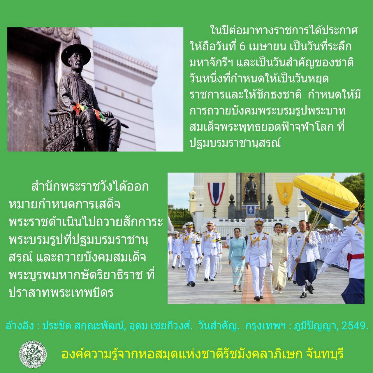 องค์ความรู้ ส่งเสริมการอ่านผ่านออนไลน์ เรื่อง "วันพระบาทสมเด็จพระพุทธยอดฟ้าจุฬาโลกมหาราช และ วันที่ระลึกมหาจักรีบรมราชวงศ์ 6 เมษายน”