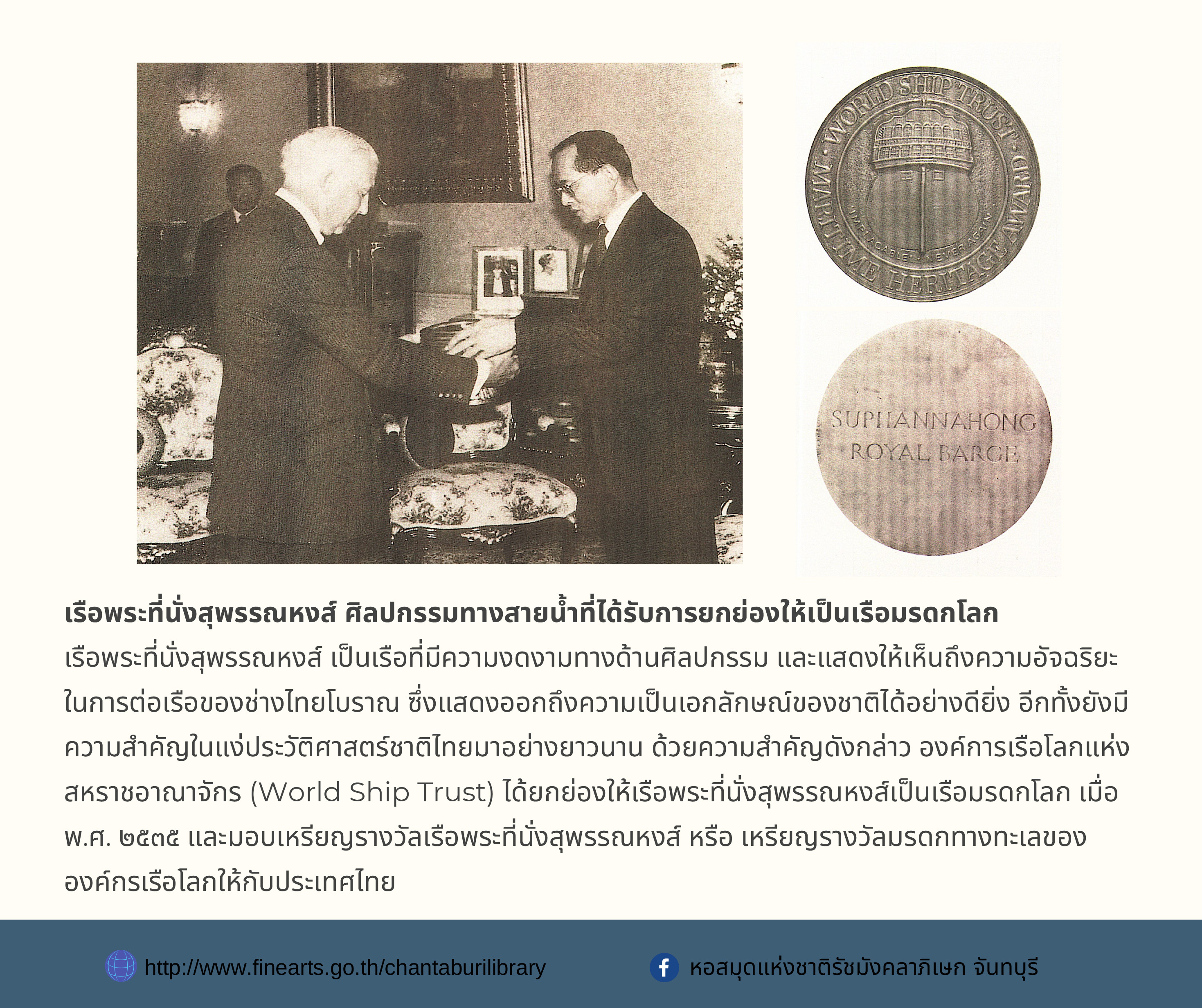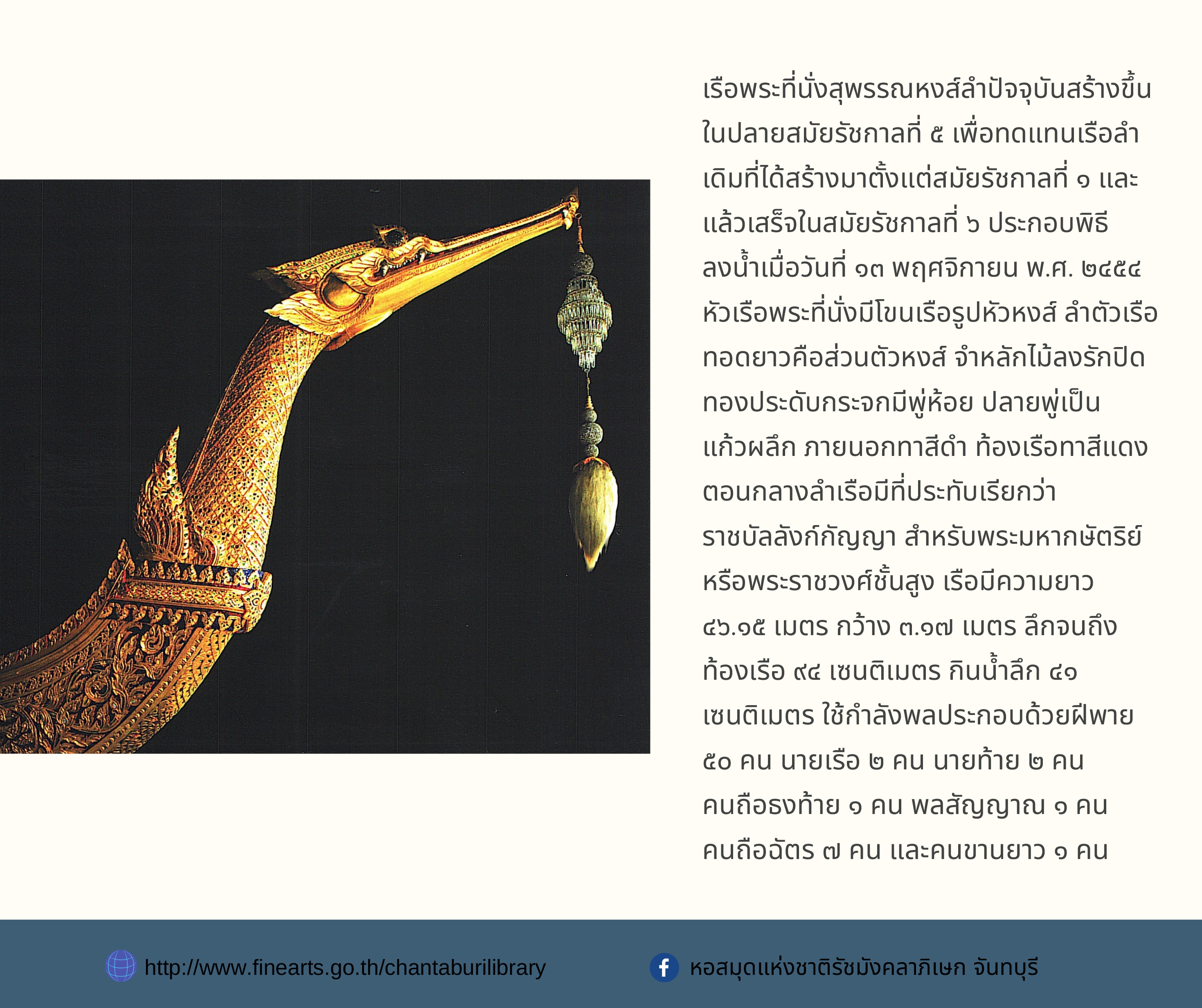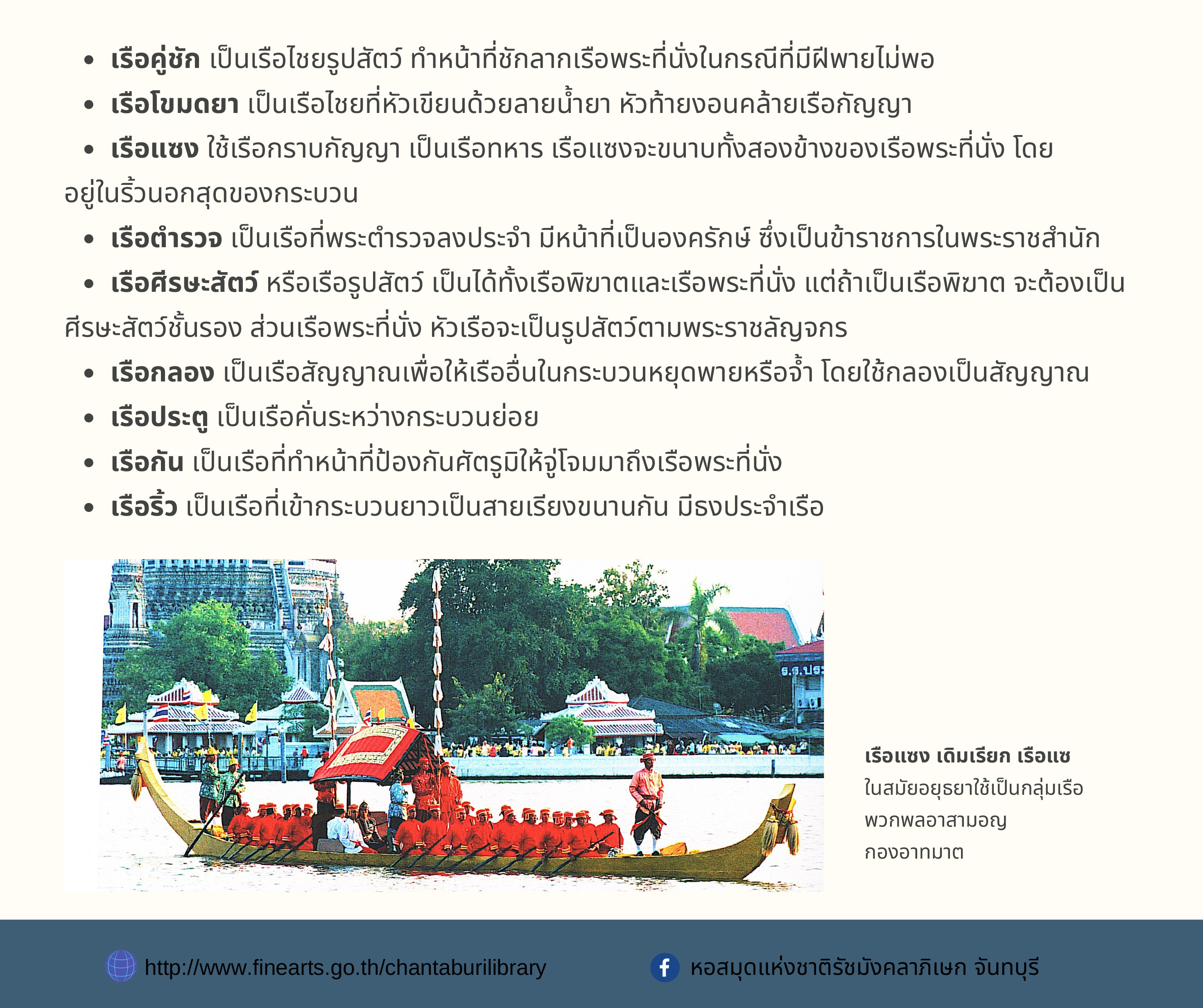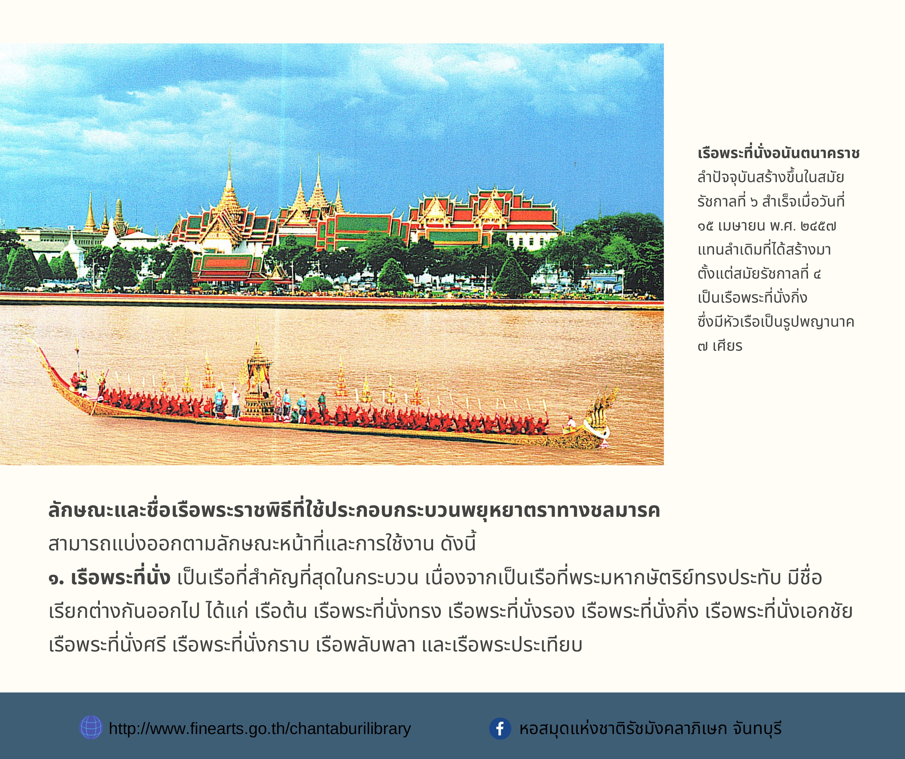 องค์ความรู้ส่งเสริมการอ่าน หอสมุดแห่งชาติรัชมังคลาภิเษก จันทบุรี เรื่อง เรือพระราชพิธี