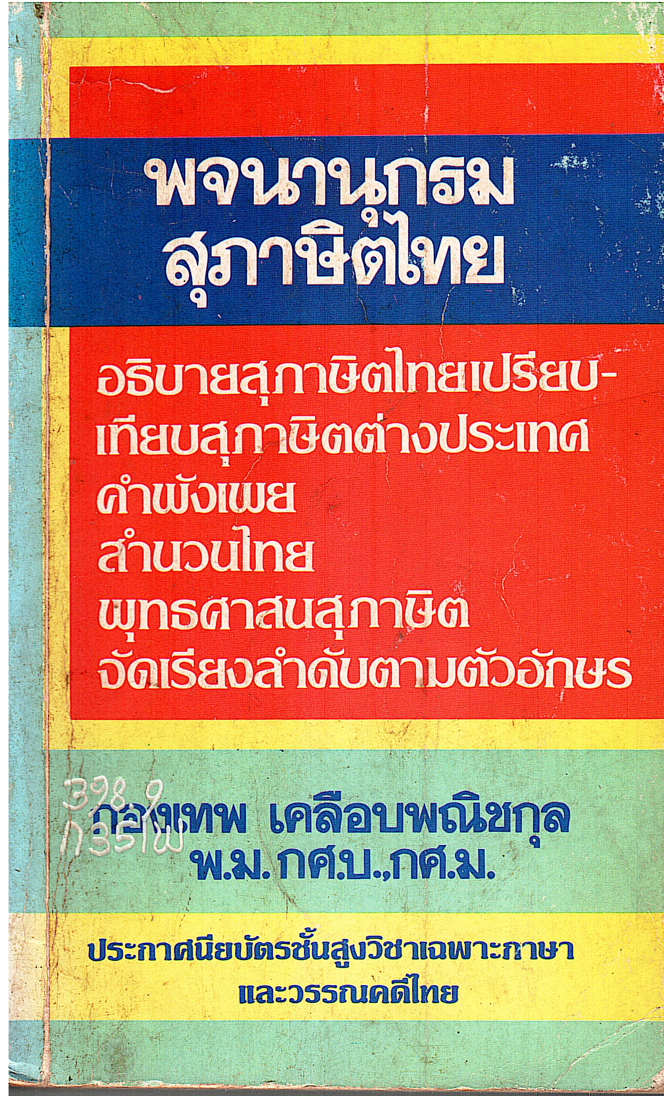 กองเทพ เคลือบพณิชกุล. พจนานุกรมสุภาษิตไทย. กรุงเทพฯ: อักษรวัฒนา, [2531]. 247 หน้า. 24 บาท.