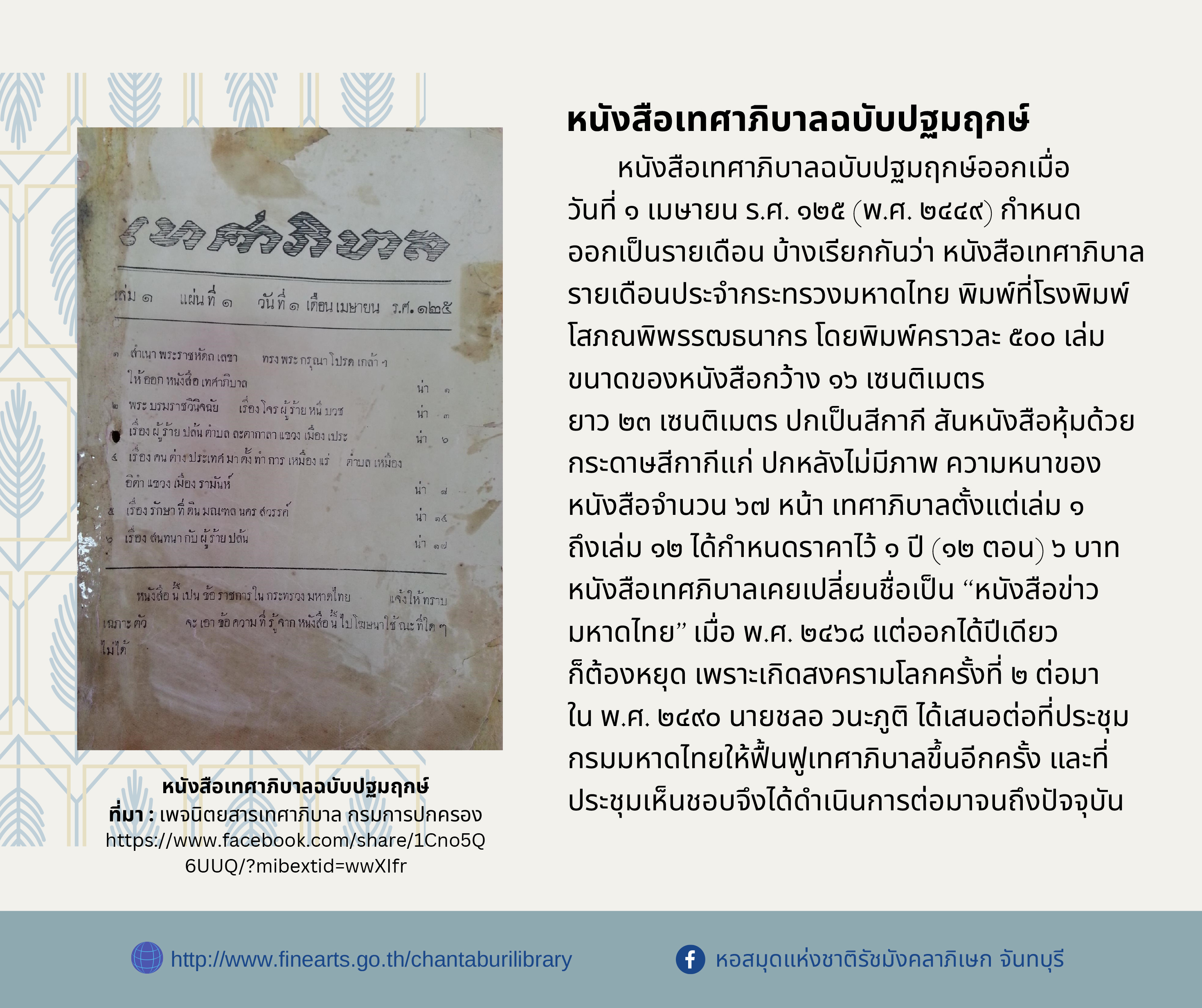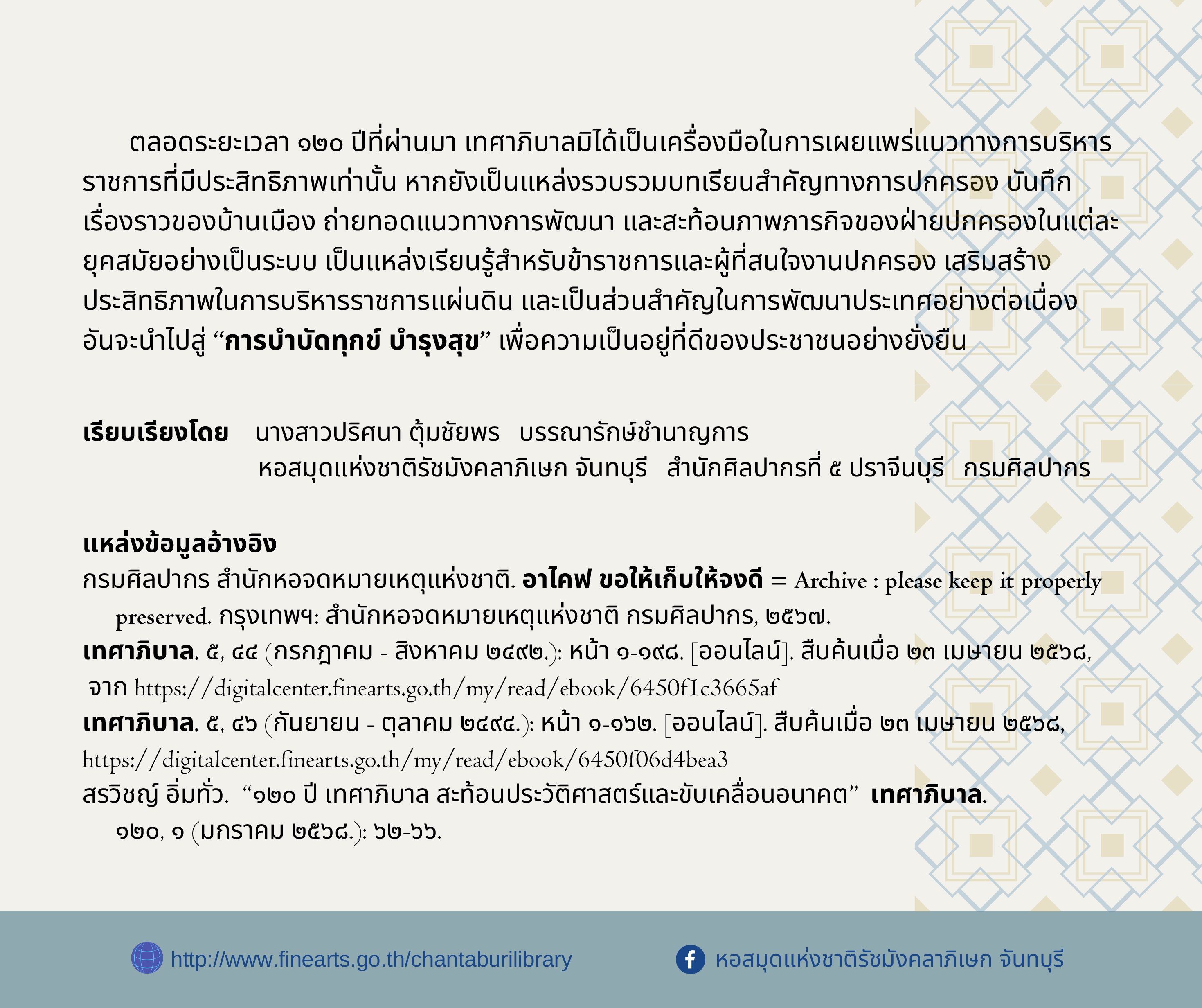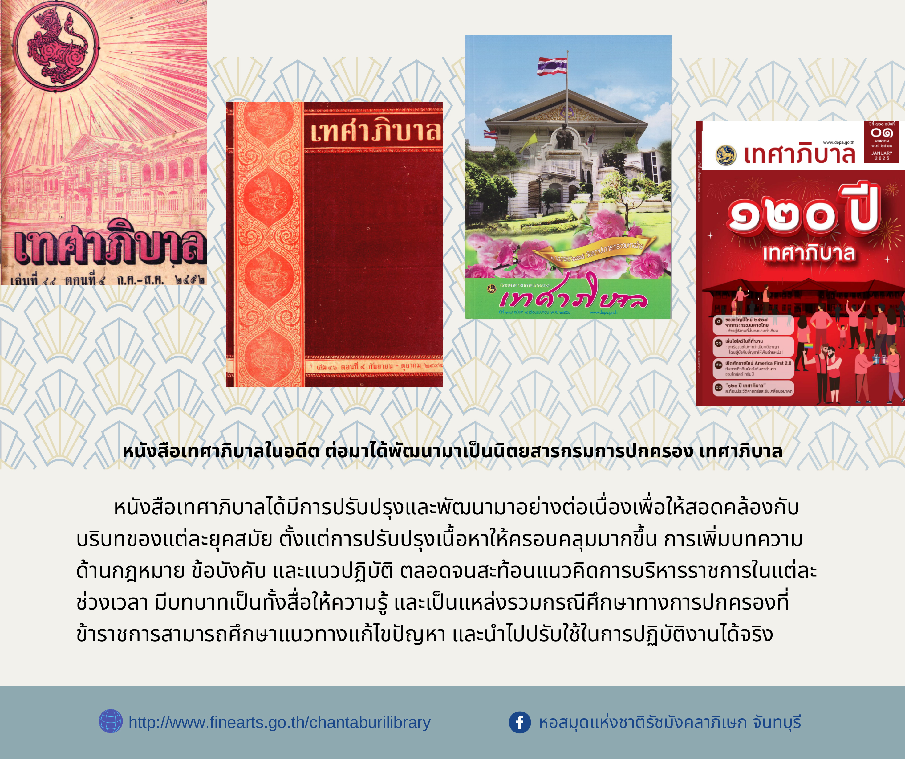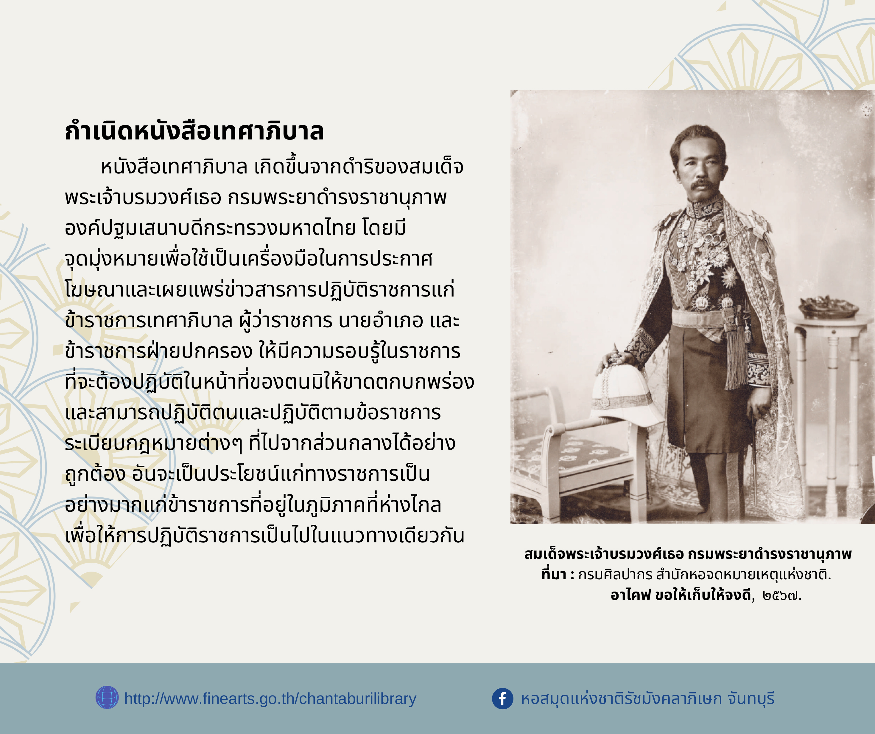 เนื่องในวันเทศบาล ประจำปี ๒๕๖๘ วันที่ ๒๔ เมษายน ๒๕๖๘ หอสมุดแห่งชาติรัชมังคลาภิเษก จันทบุรี ขอนำเสนอความรู้เกี่ยวกับ “หนังสือเทศาภิบาล” ซึ่งเป็น