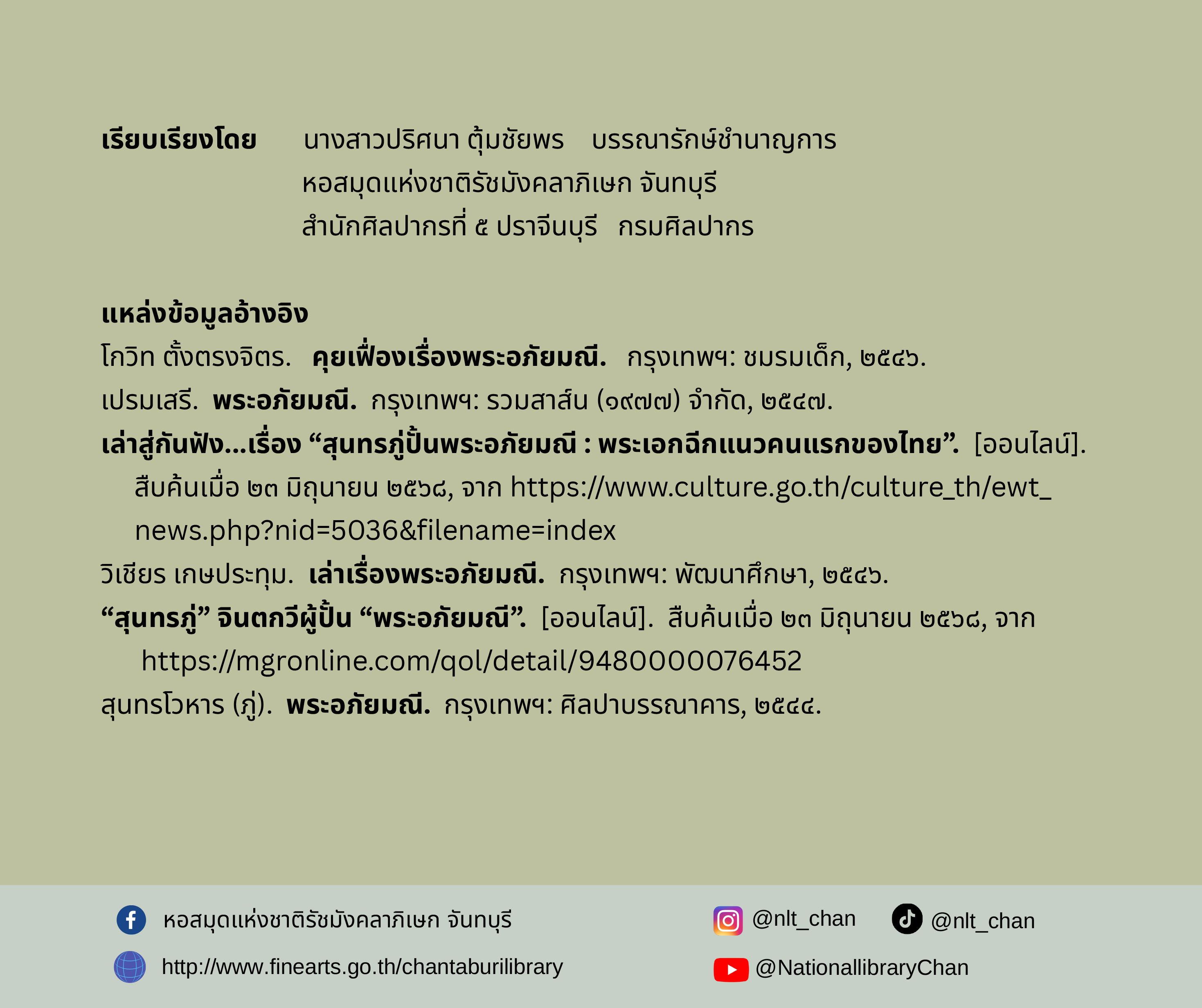 เล่าสู่กันฟัง...เรื่อง “สุนทรภู่ปั้นพระอภัยมณี : พระเอกฉีกแนวคนแรกของไทย”. [ออนไลน์]. สืบค้นเมื่อ ๒๓ มิถุนายน ๒๕๖๘, จาก