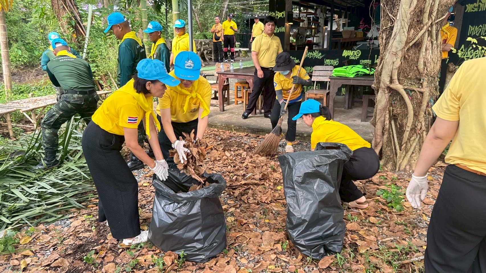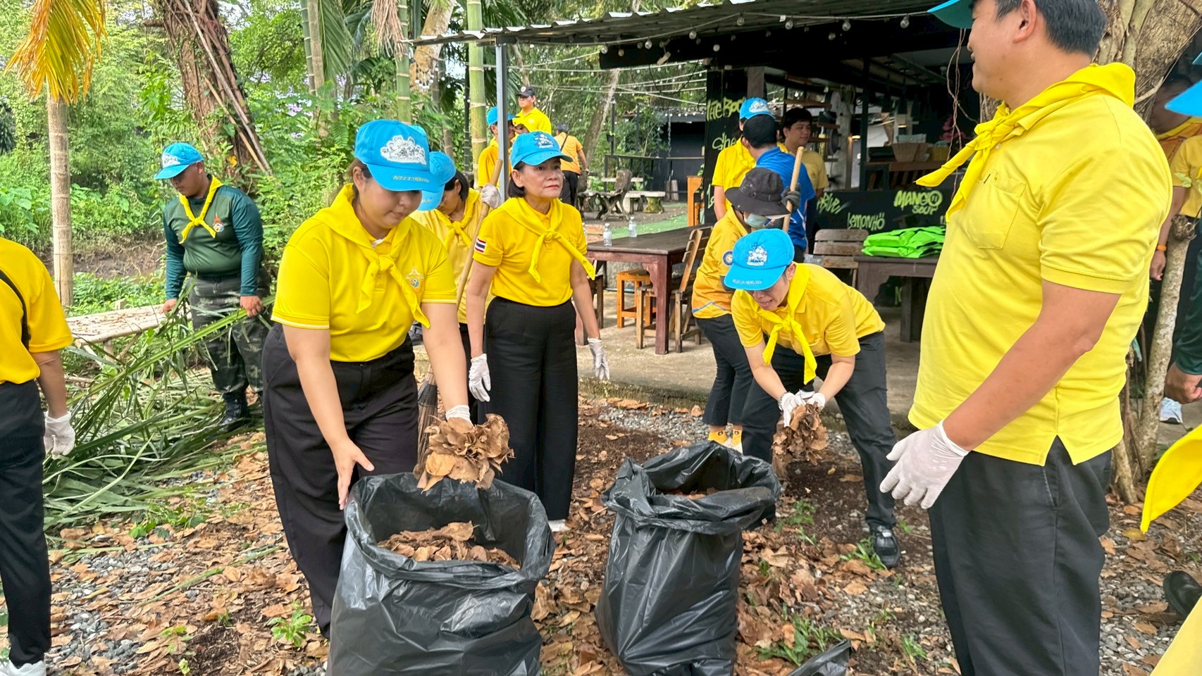 วันศุกร์ที่ ๒๕ กรกฎาคม ๒๕๖๘ -- นางสาวเมษา ครุปิติ ผู้อำนวยการหอสมุดแห่งชาติรัชมังคลาภิเษก จันทบุรี ได้นำคณะข้าราชการของหน่วยงาน เข้าร่วมกิจกรรมจิตอาสาเนื่องในวันเฉลิมพระชนมพรรษาพระบาทสมเด็จพระวชิรเกล้าเจ้าอยู่หัว 28 กรกฎาคม 2568 พิธีเปิด ณ วิทยาลัยนาฏศิลปจันทบุรี จังหวัดจันทบุรี โดยมีนายธวัชชัย นามสมุทร รองผู้ว่าราชการจังหวัดจันทบุรี เป็นประธานในพิธี และร่วมกิจกรรมจิตอาสาพัฒนาแหล่งน้ำลำคลอง บริเวณสะพานวิทยาลัยนาฏศิลปจันทบุรี
