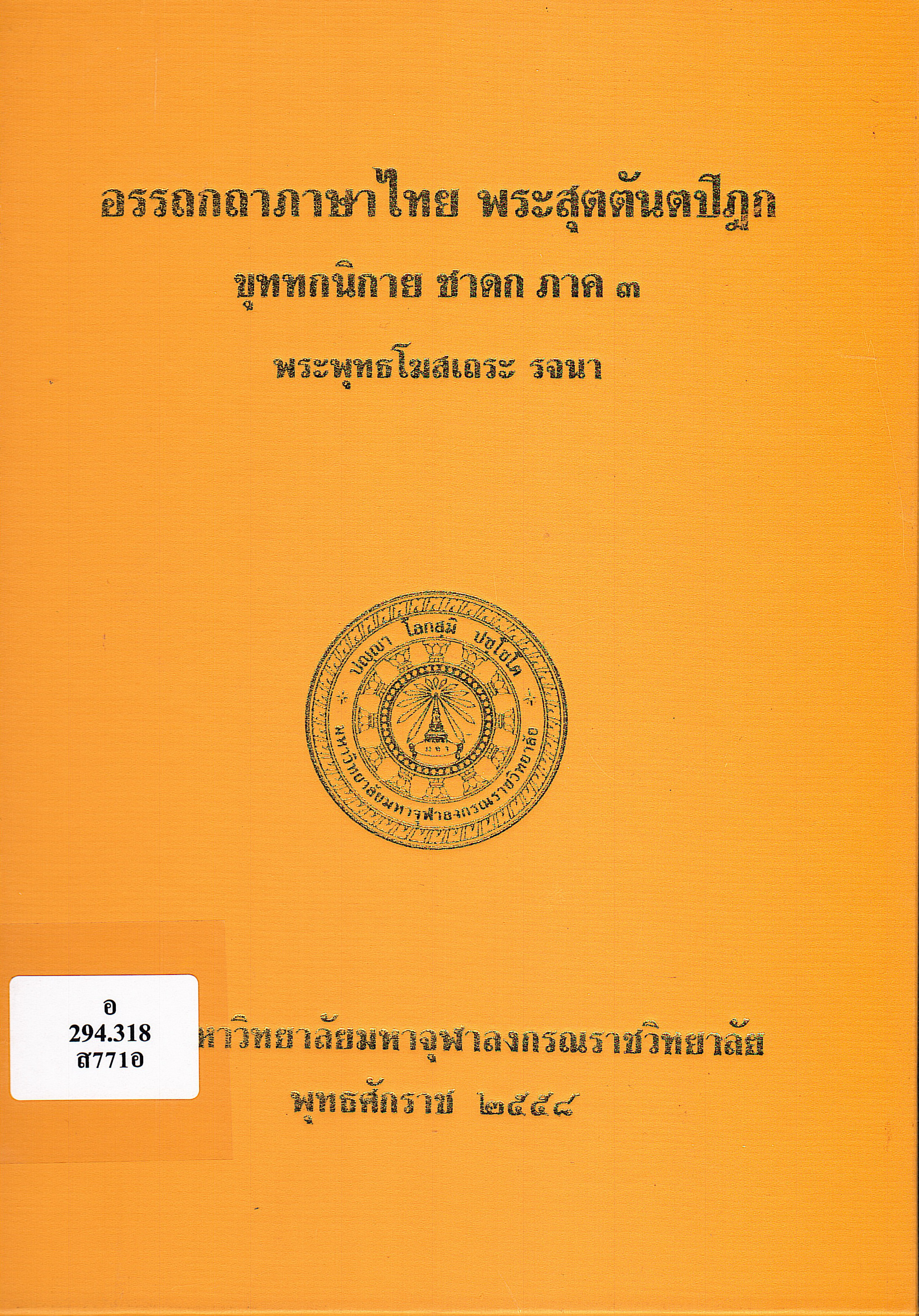 สุตตันตปิฎก ขุททกนิกาย. อรรถกถาภาษาไทย พระสุตตันตปิฎก ขุททกนิกาย ชาดก ภาค 3 : ฉบับมหาวิทยาลัยจุฬาลง