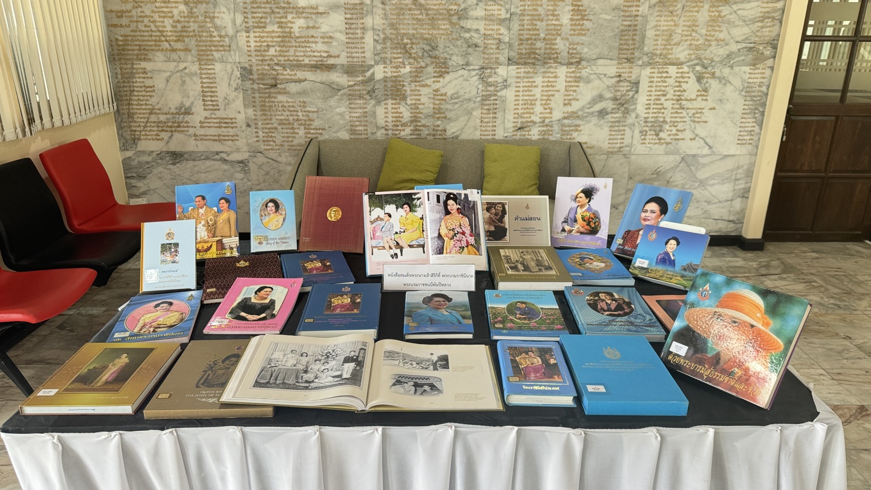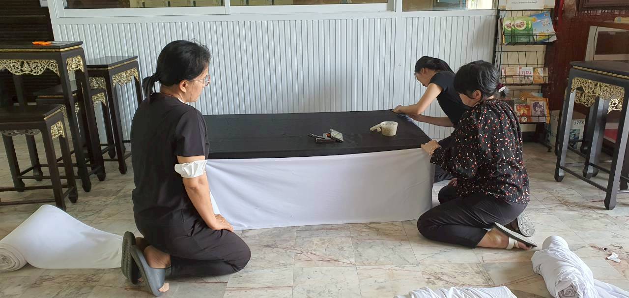 วันอังคารที่ ๒๘ ตุลาคม ๒๕๖๘ -- นางสาวเมษา ครุปิติ ผู้อำนวยการหอสมุดแห่งชาติรัชมังคลาภิเษก จันทบุรี ได้นำคณะข้าราชการ พนักงานราชการ และเจ้าหน้าที่หอสมุดแห่งชาติรัชมังคลาภิเษก จันทบุรี ร่วมประดับผ้าสีดำสลับสีขาว จัดโต๊ะหมู่บูชา จัดแสดงโซนหนังสือพระราชประวัติและหนังสือที่มีเนื้อหาเกี่ยวกับสมเด็จพระนางเจ้าสิริกิติ์ พระบรมราชินีนาถ พระบรมราชชนนีพันปีหลวง เพื่อแสดงความอาลัยถวาย สมเด็จพระนางเจ้าสิริกิติ์ พระบรมราชินีนาถ พระบรมราชชนนีพันปีหลวง เสด็จสู่สวรรคาลัย ด้วยสำนึกในพระมหากรุณาธิคุณเป็นล้นพ้นอันหาที่สุดมิได้