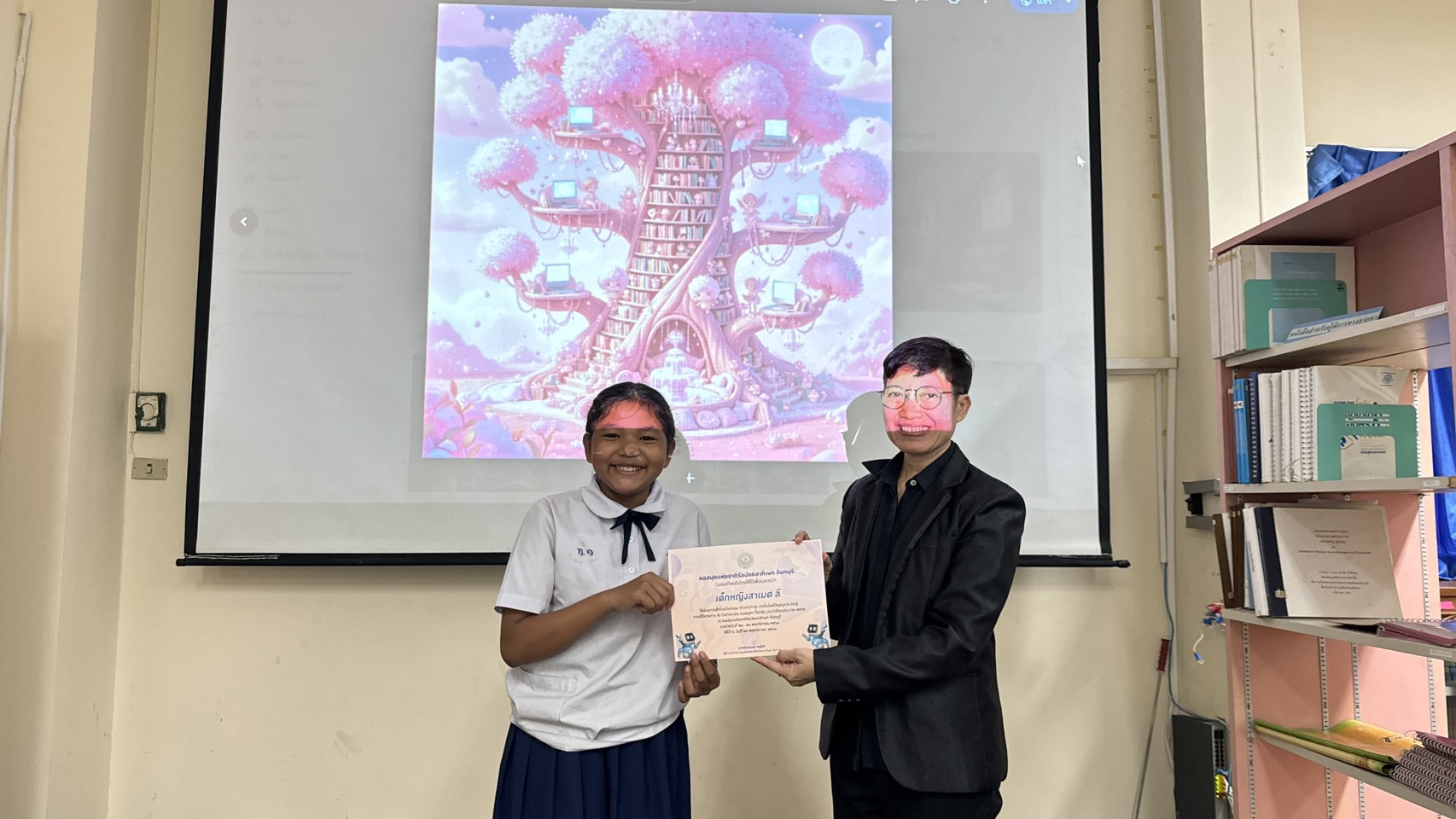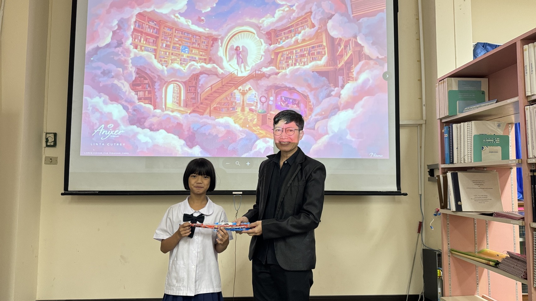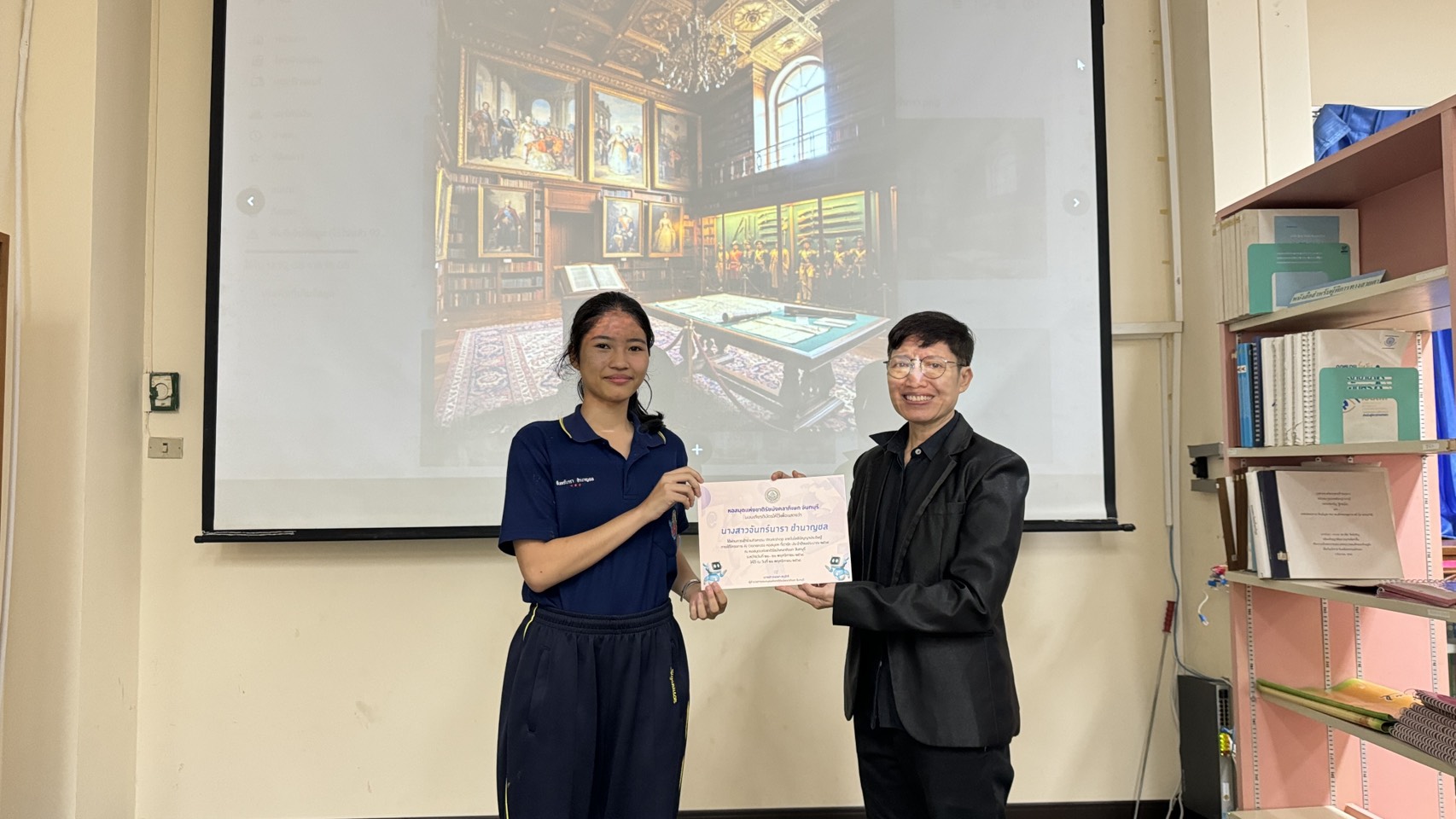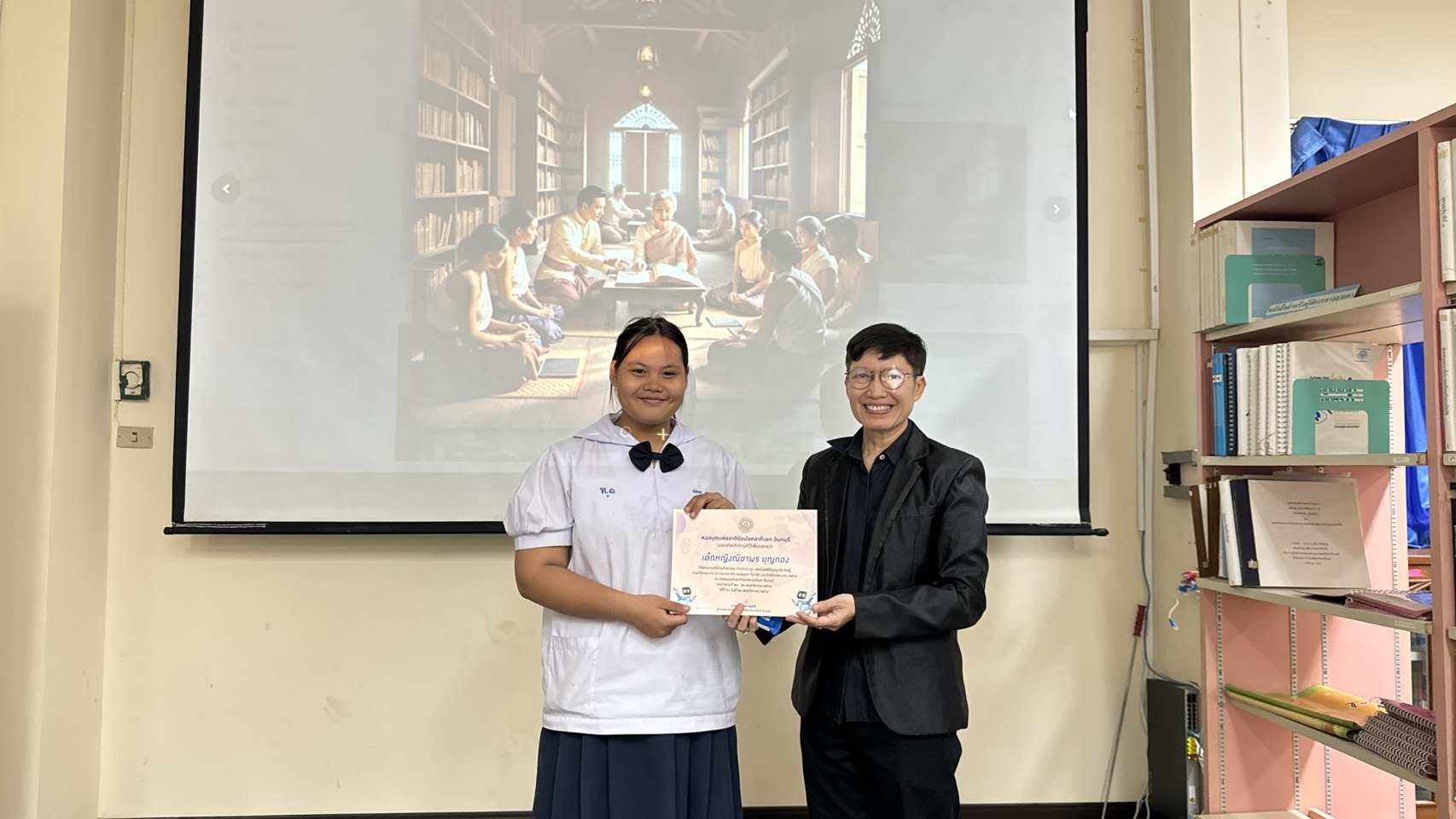 และรับมอบเกียรติบัตรจาก นางสาวเมษา ครุปิติ ผู้อำนวยการหอสมุดแห่งชาติรัชมังคลาภิเษก จันทบุรี