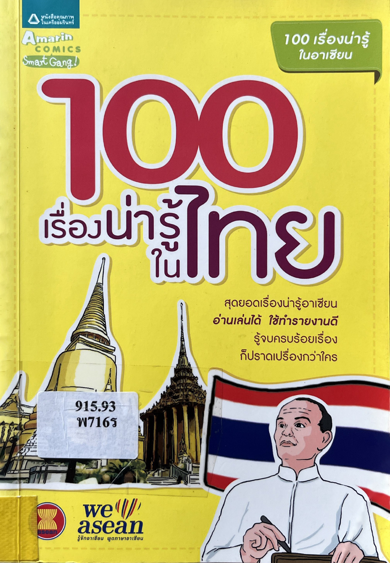 หนังสือเรื่อง 100 เรื่องน่ารู้ในไทย จากหนังสือชุด 100 เรื่องน่ารู้ในอาเซียน ช่วยปูพื้นฐานความเข้าใจเกี่ยวกับประเทศไทยผ่านเนื้อหา 10 หมวดสำคัญ เช่น ประวัติศาสตร์ ภูมิศาสตร์ เศรษฐกิจ การเมือง สังคม วัฒนธรรม บุคคลและเหตุการณ์สำคัญ ถ่ายทอดด้วยภาษาที่เข้าใจง่าย เหมาะสำหรับเยาวชนใช้เสริมความรู้นอกห้องเรียน และบุคคลทั่วไปที่สนใจความเคลื่อนไหวของสังคมโลก