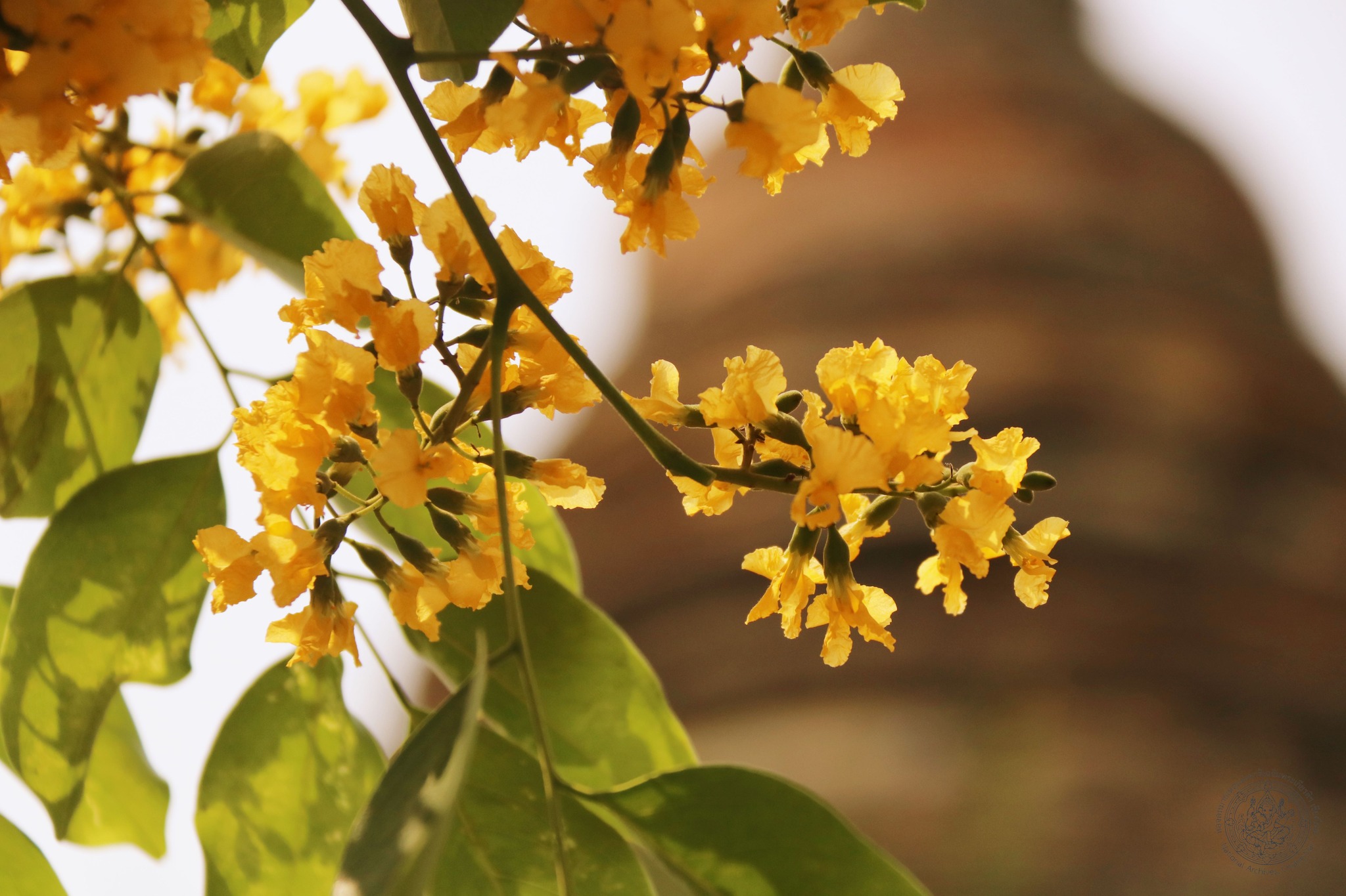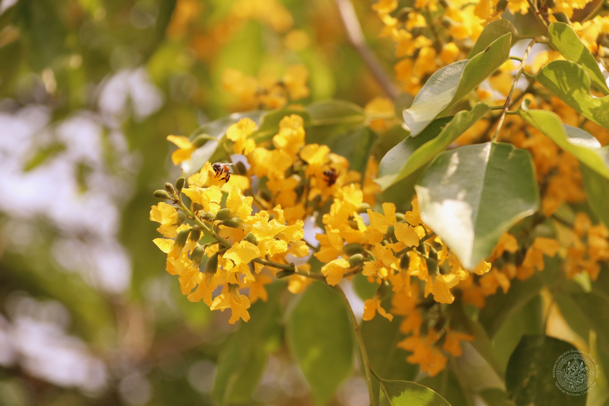 ชื่อทางการ : ต้นประดู่บ้าน พรรณไม้ยืนต้นขนาดกลางถึงขนาดใหญ่มีความสูงประมาณ ๑๐ - ๒๕ เมตร ใบเป็นช่อแตกออกจากปลายกิ่ง มีเป็นรูปมนรีปลายใบแหลมโคนใบมน ดอกออกเป็นช่อบริเวณโคนก้านใบหรือปลายกิ่ง มีช่อขนาดใหญ่ สีเหลือง มีกลิ่นหอมอ่อน