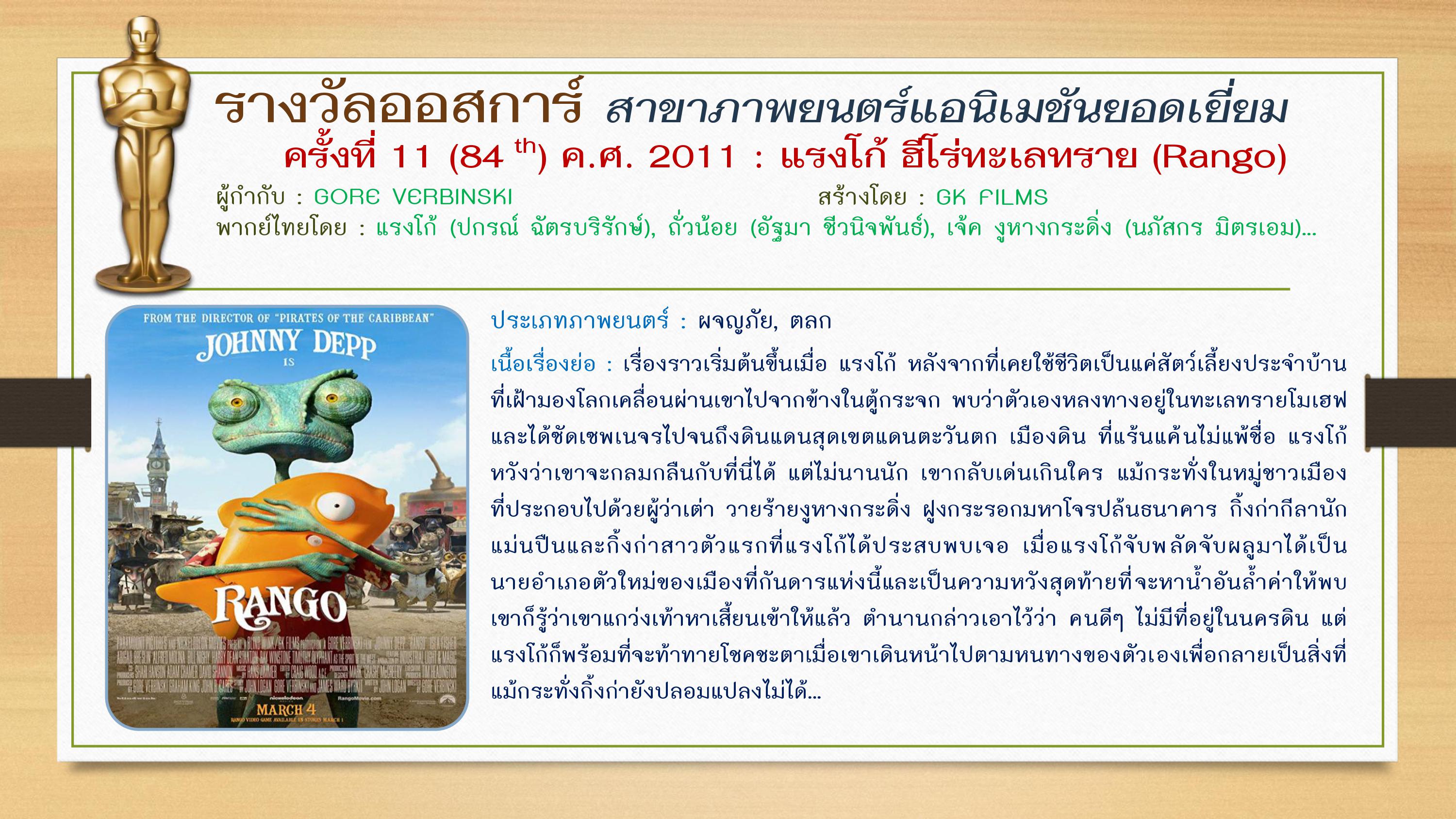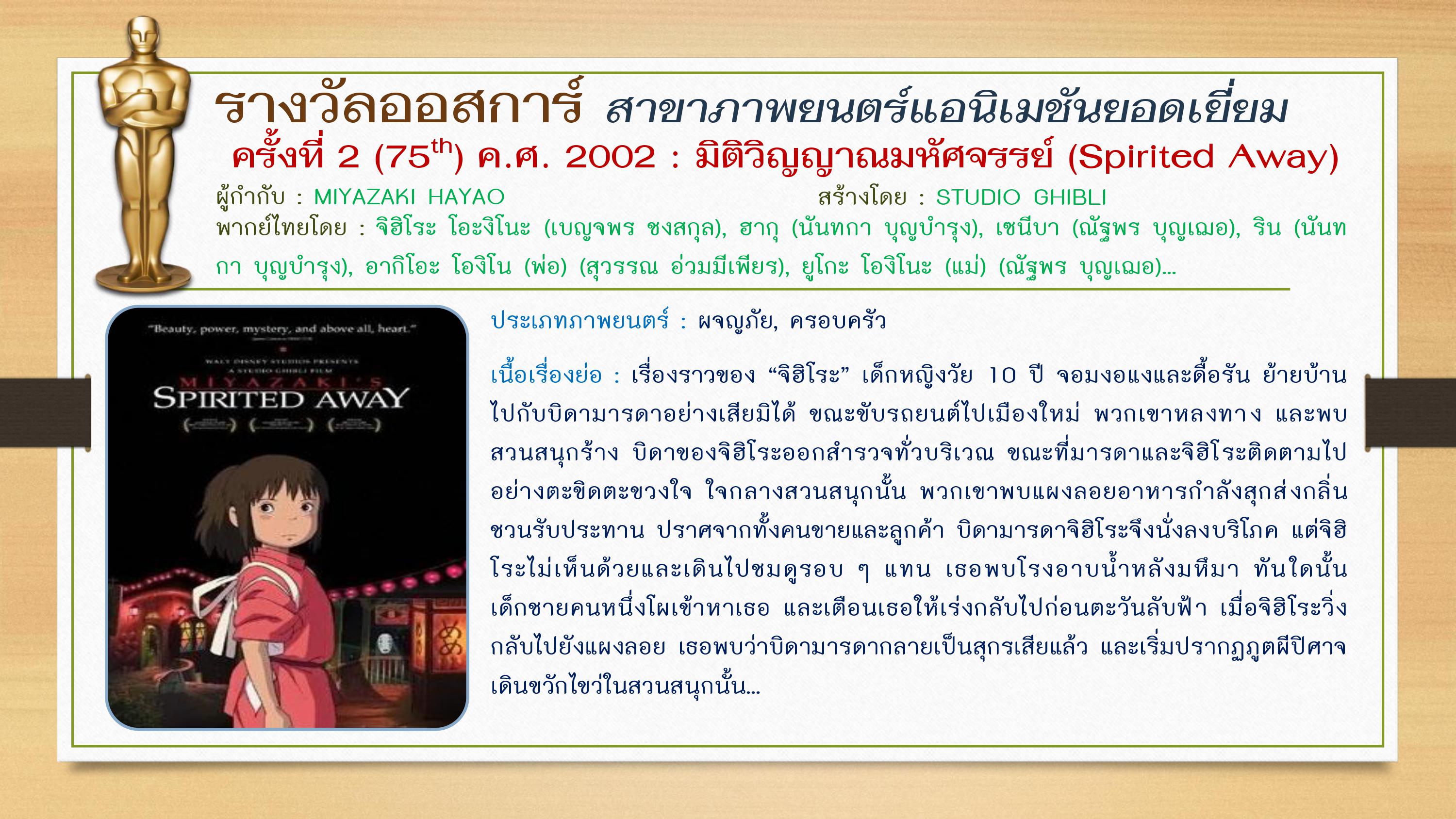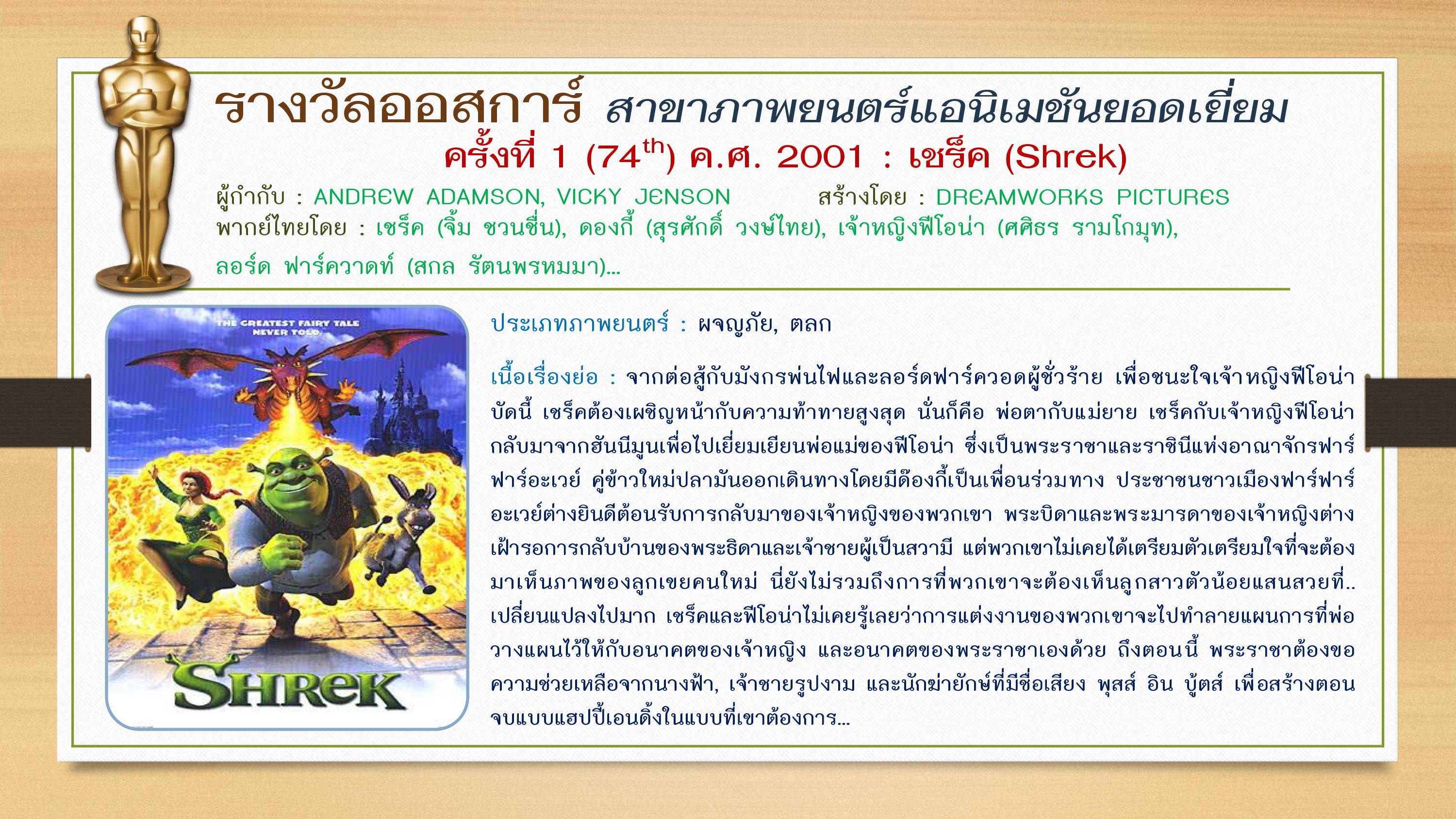 รางวัลออสการ์ สาขาภาพยนตร์แอนิเมชันยอดเยี่ยม (ครั้งแรก ตั้งแต่ ค.ศ. ๒๐๐๑- จนถึงปัจจุบัน)