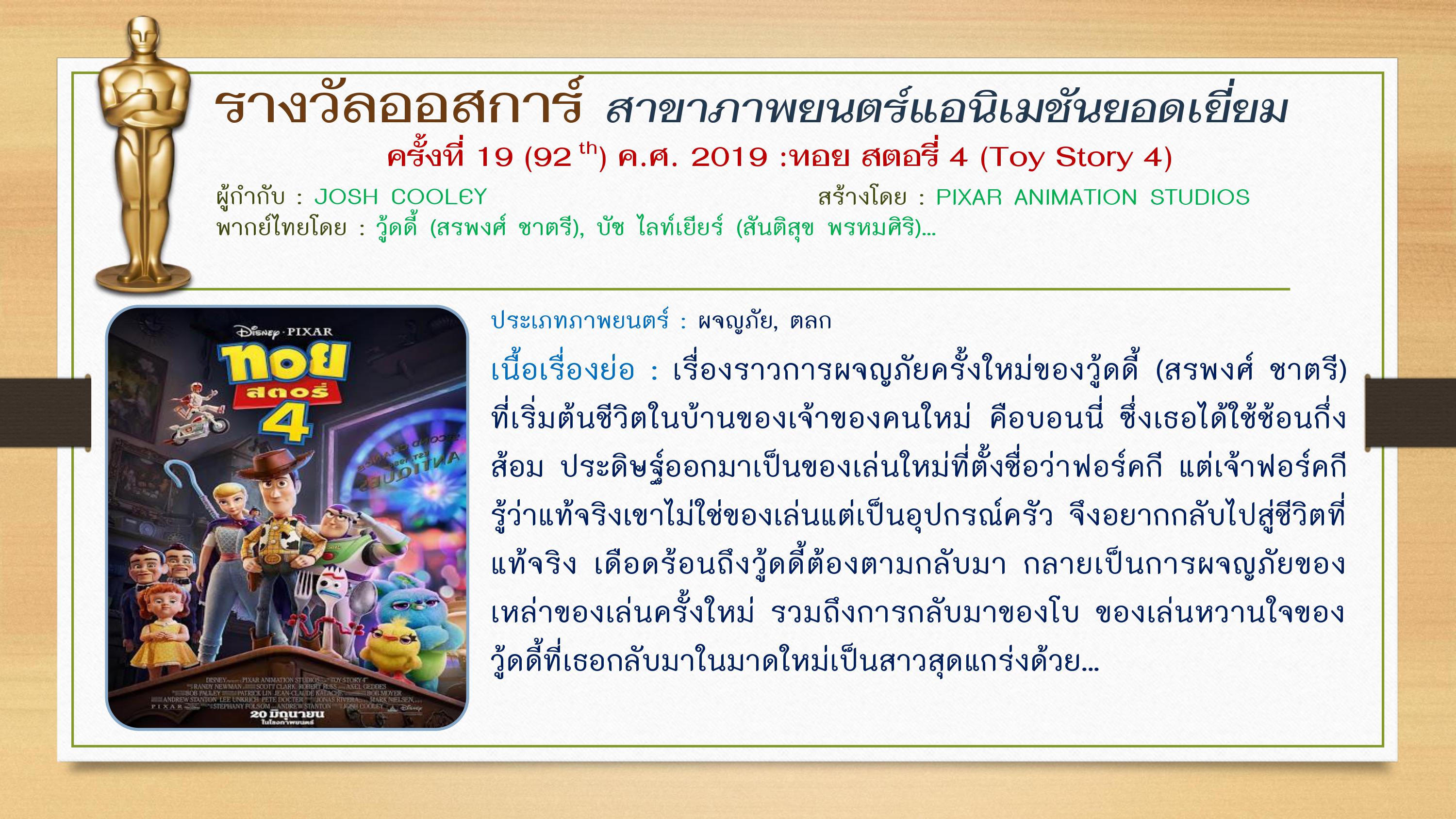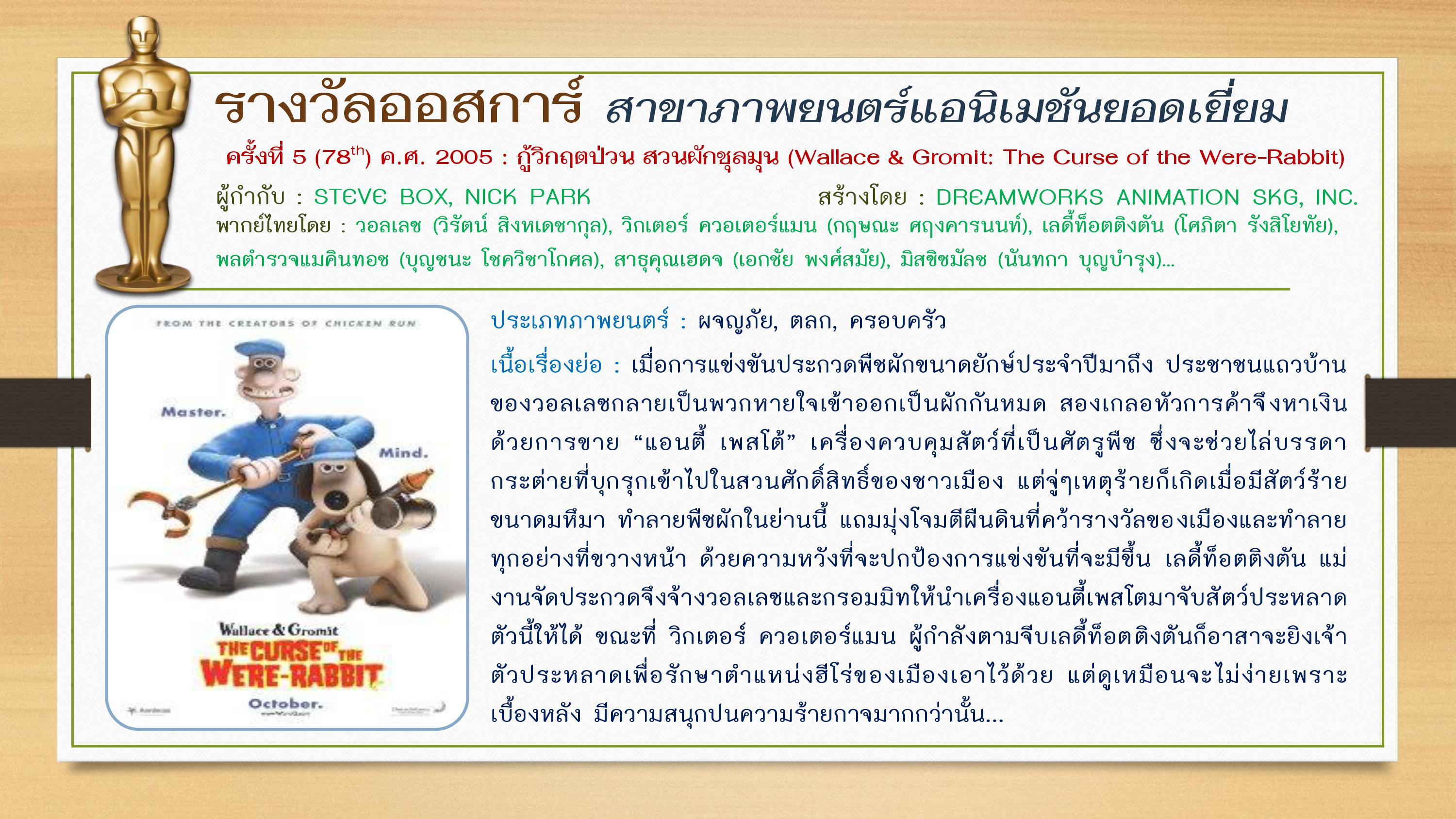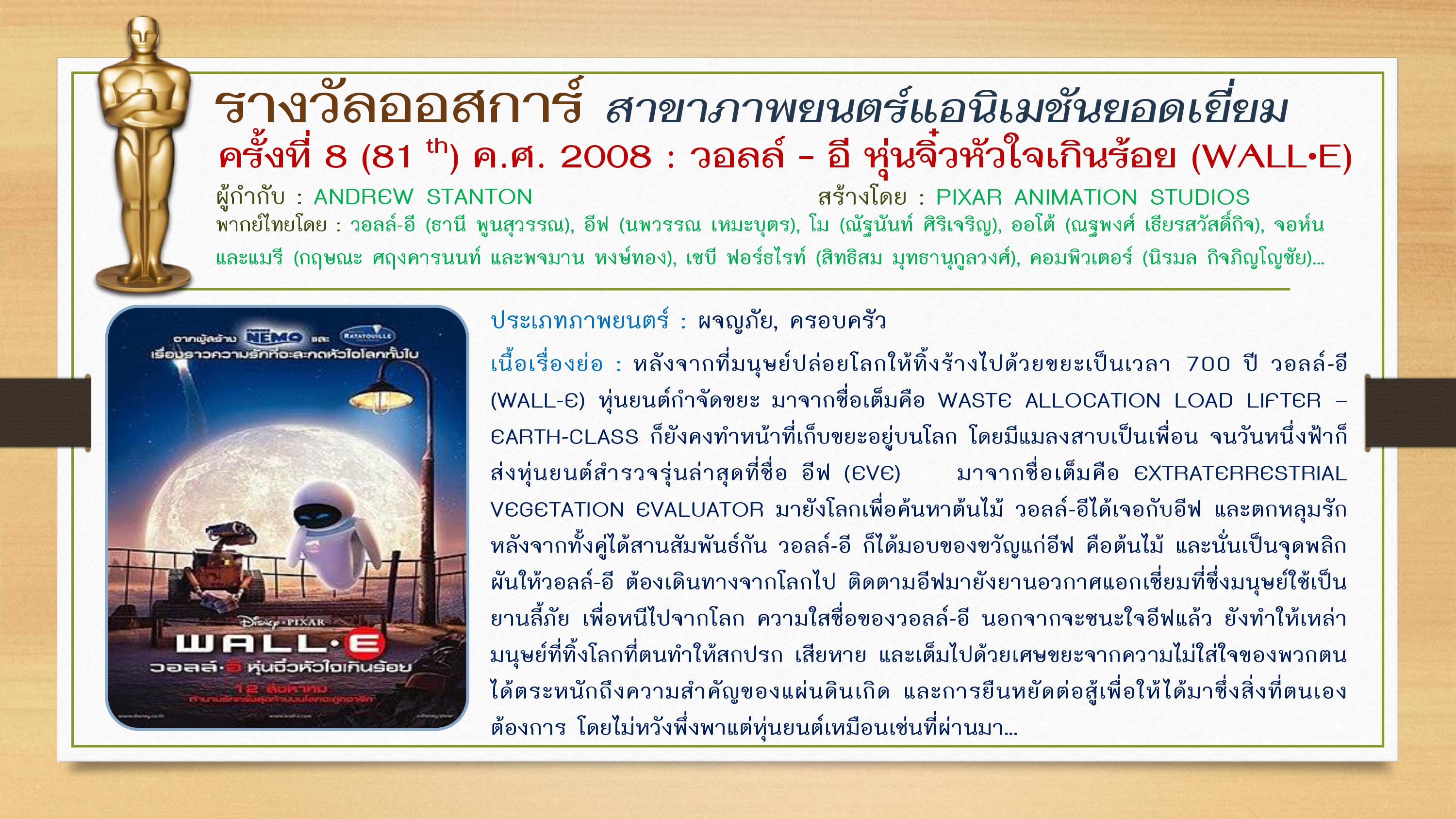 รางวัลออสการ์ สาขาภาพยนตร์แอนิเมชันยอดเยี่ยม (ครั้งแรก ตั้งแต่ ค.ศ. ๒๐๐๑- จนถึงปัจจุบัน)