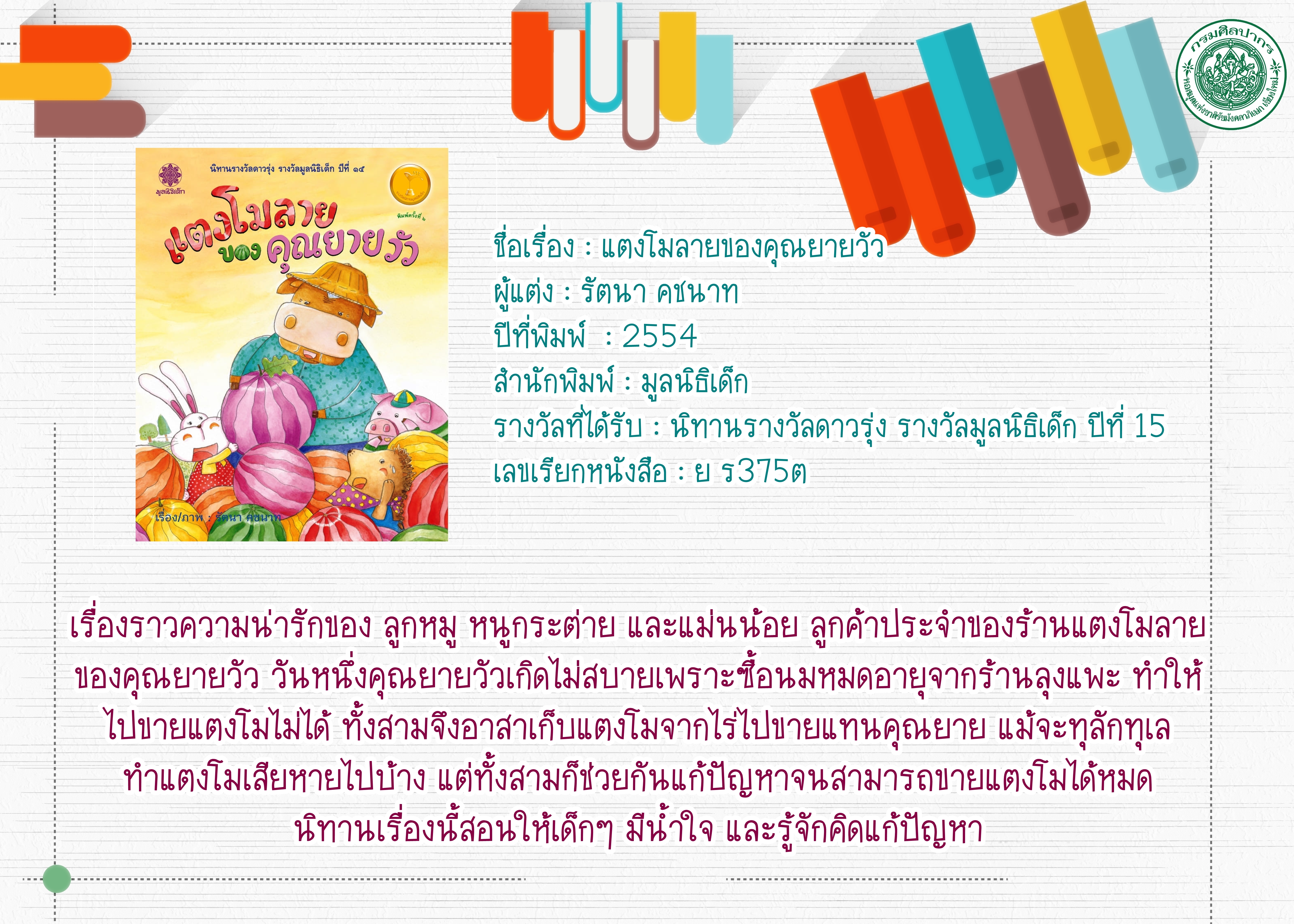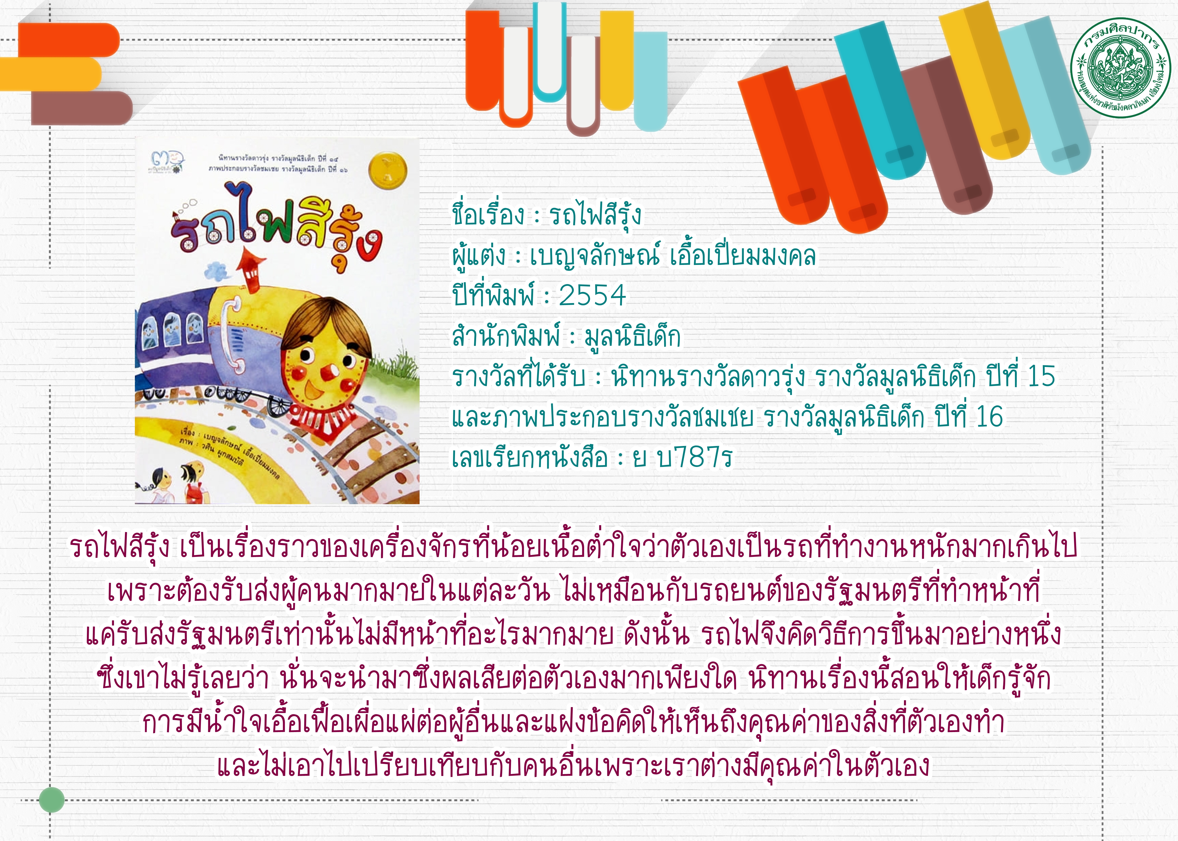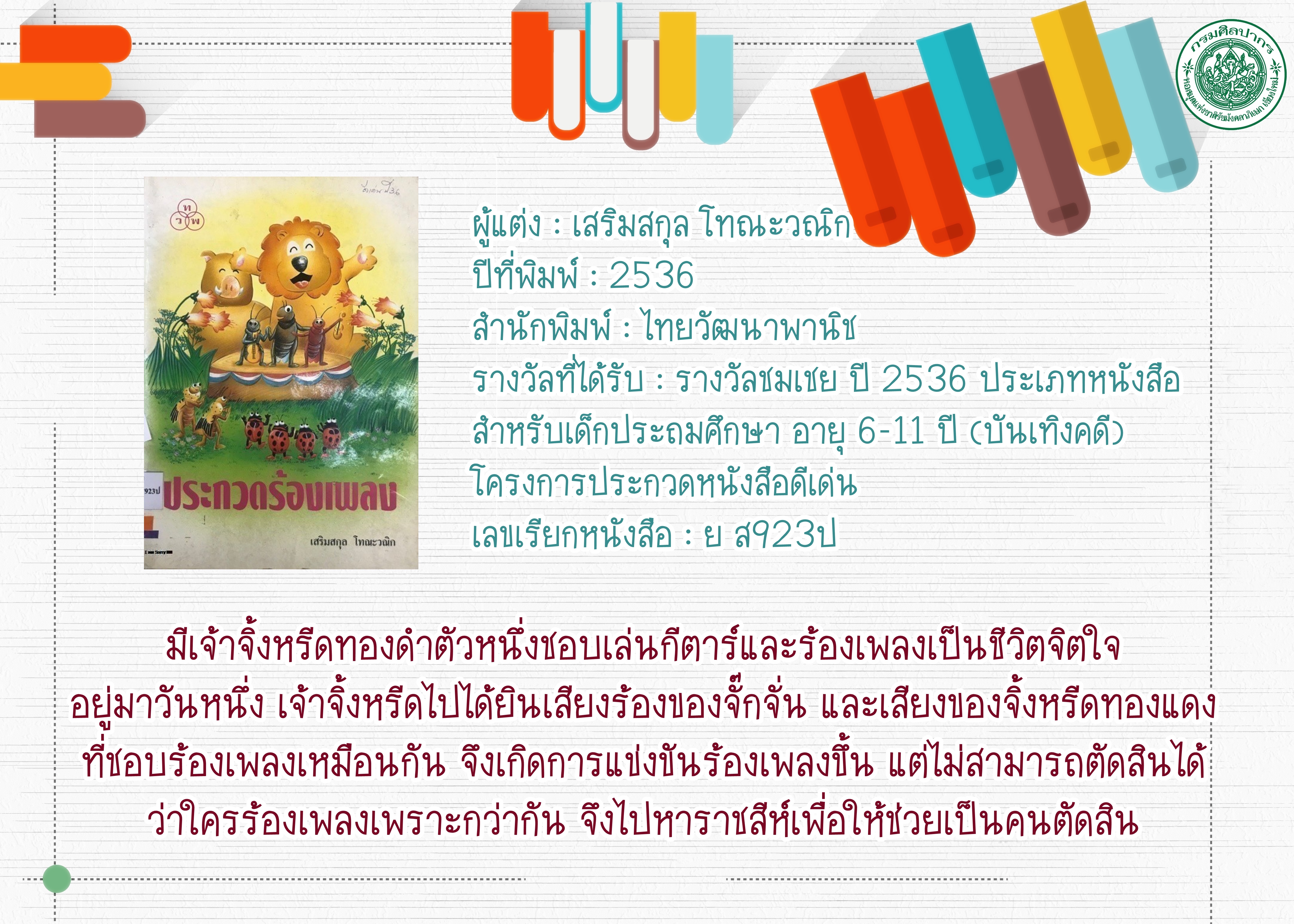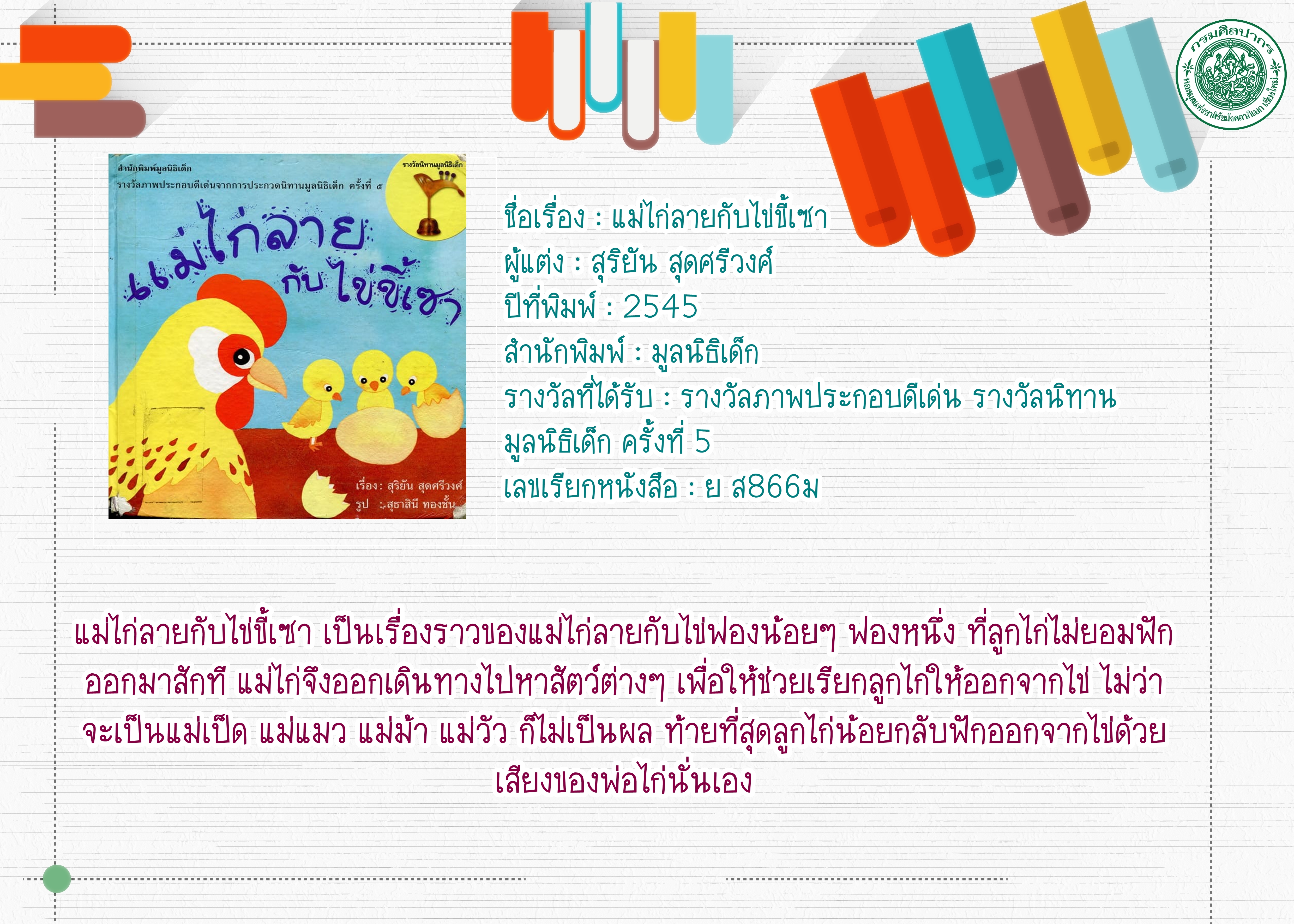 รายการหนังสือเด็กที่ได้รับรางวัล เช่น รางวัลมูลนิธิเด็ก รางวัลหนังสือดีเด่น รางวัลแว่นแก้ว ที่มีให้บริการในห้องหนังสือเด็กและเยาวชน หอสมุดแห่งชาติรัชมังคลาภิเษก เชียงใหม่