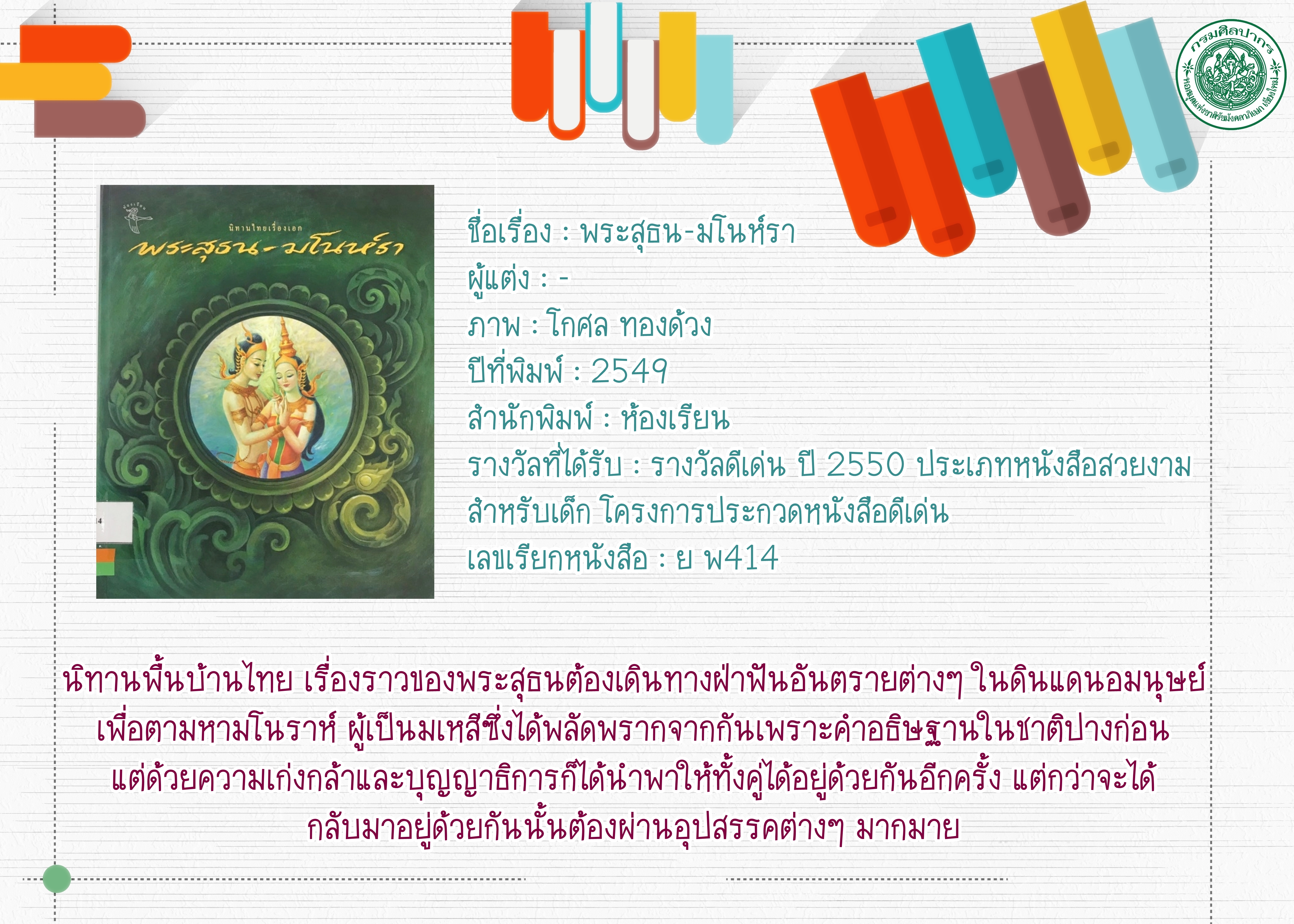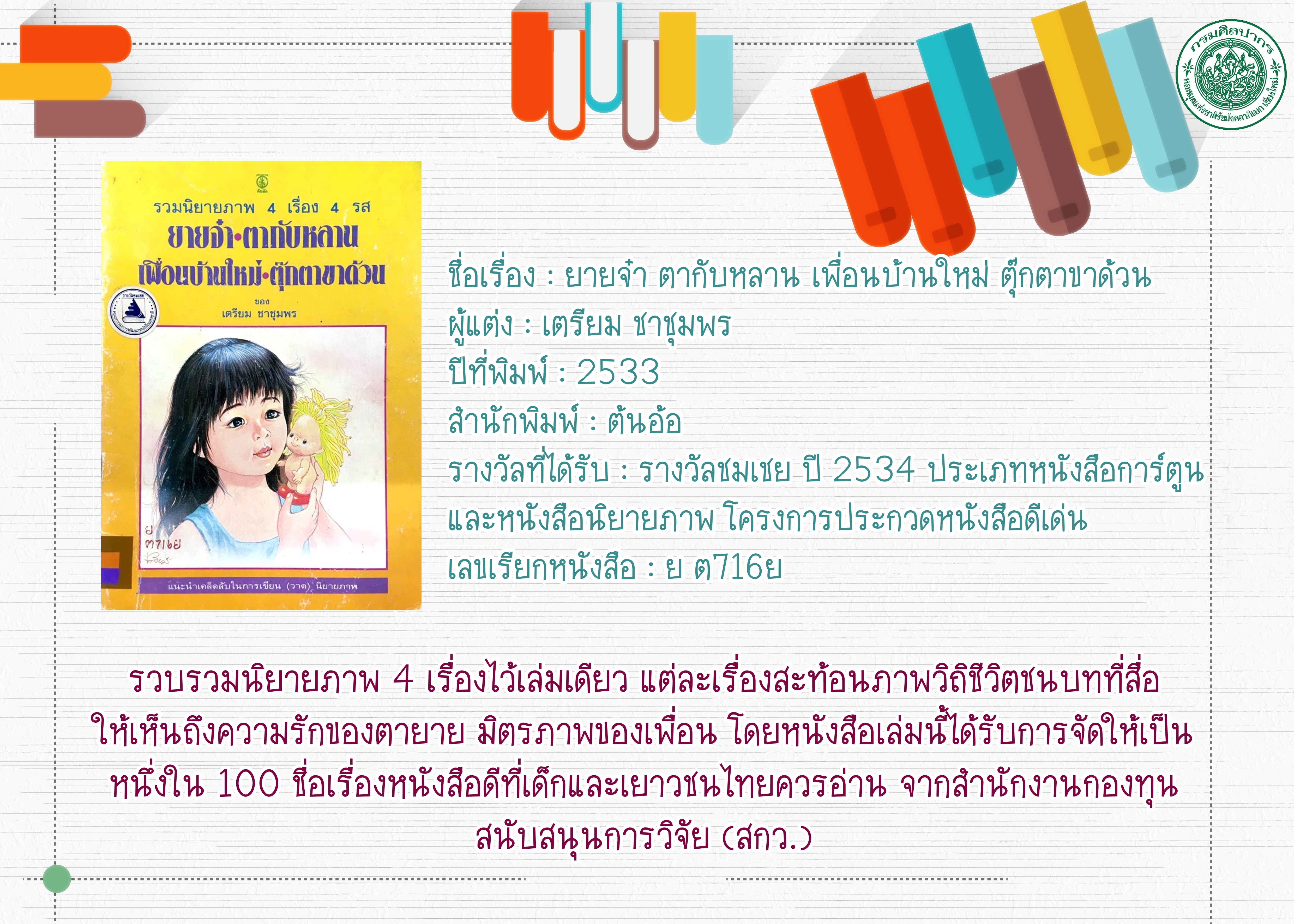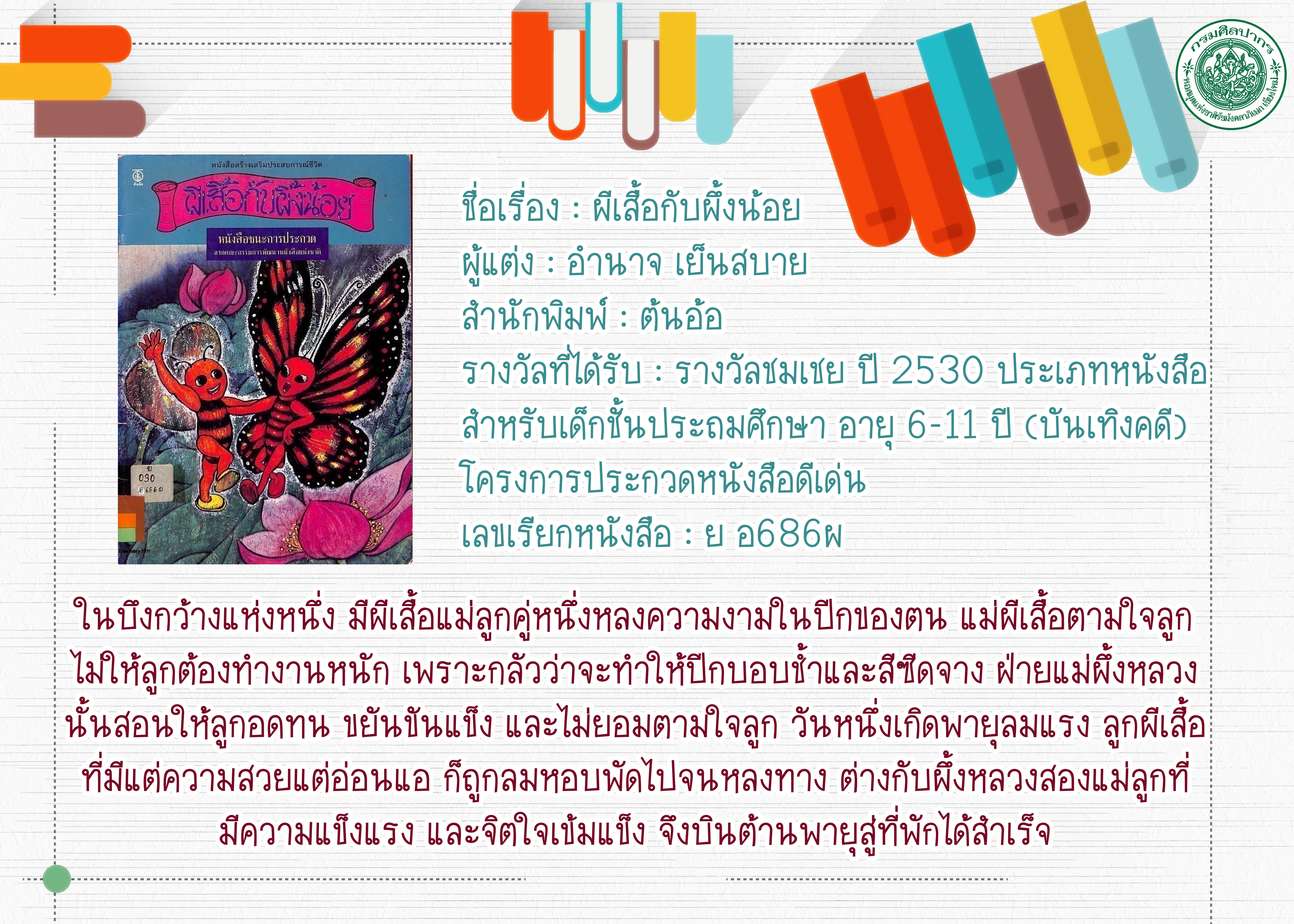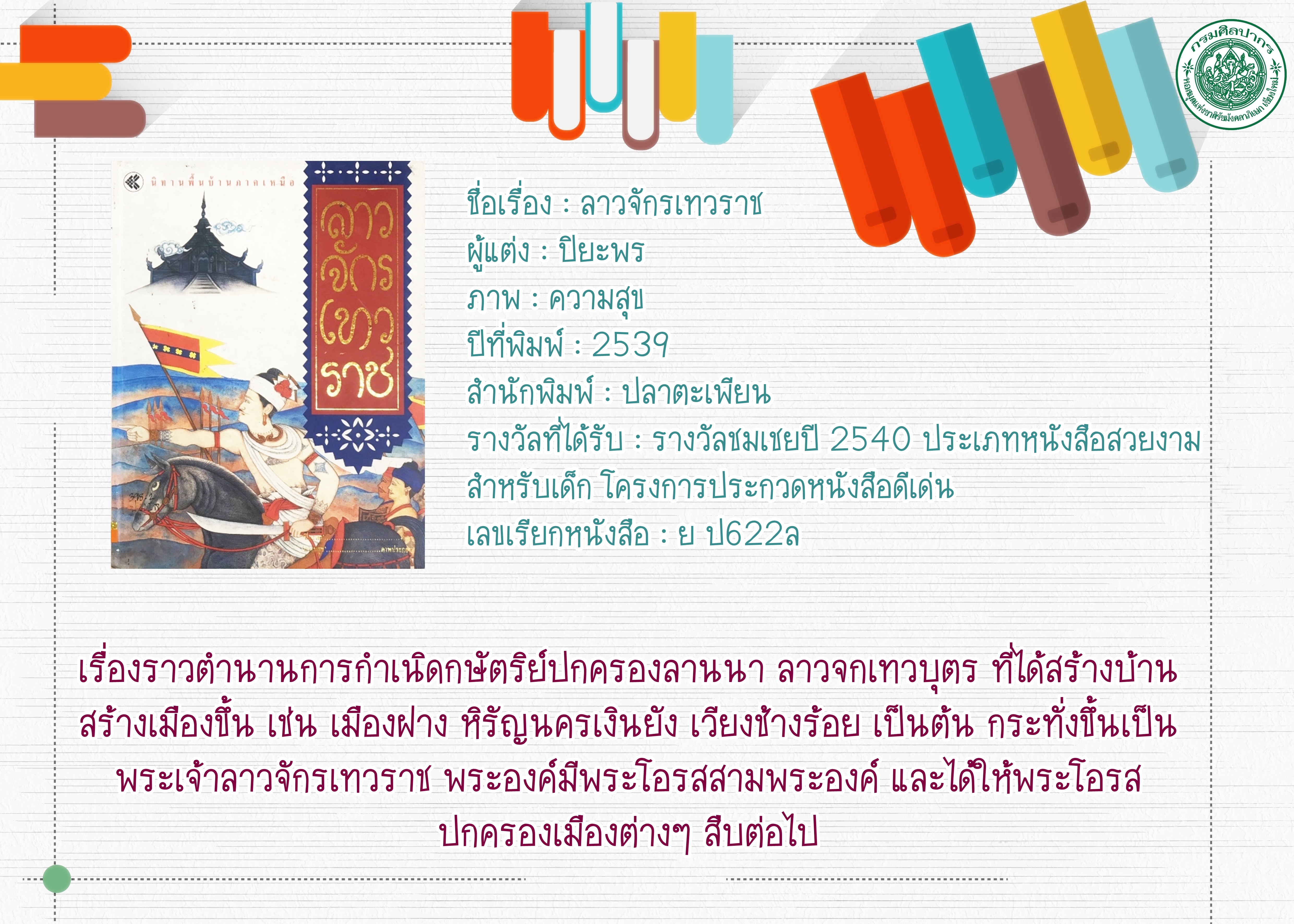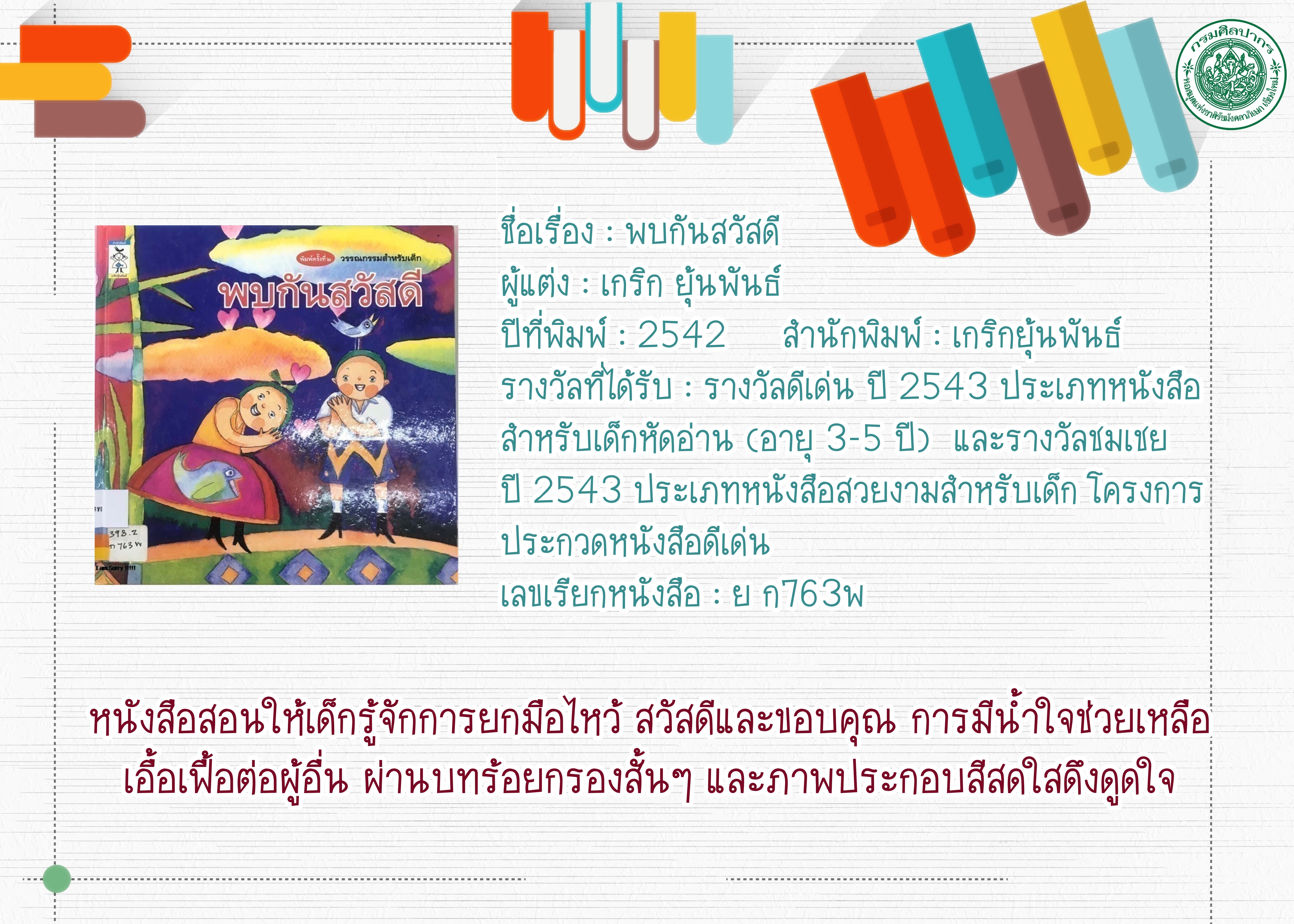รายการหนังสือเด็กที่ได้รับรางวัล เช่น รางวัลมูลนิธิเด็ก รางวัลหนังสือดีเด่น รางวัลแว่นแก้ว ที่มีให้บริการในห้องหนังสือเด็กและเยาวชน หอสมุดแห่งชาติรัชมังคลาภิเษก เชียงใหม่