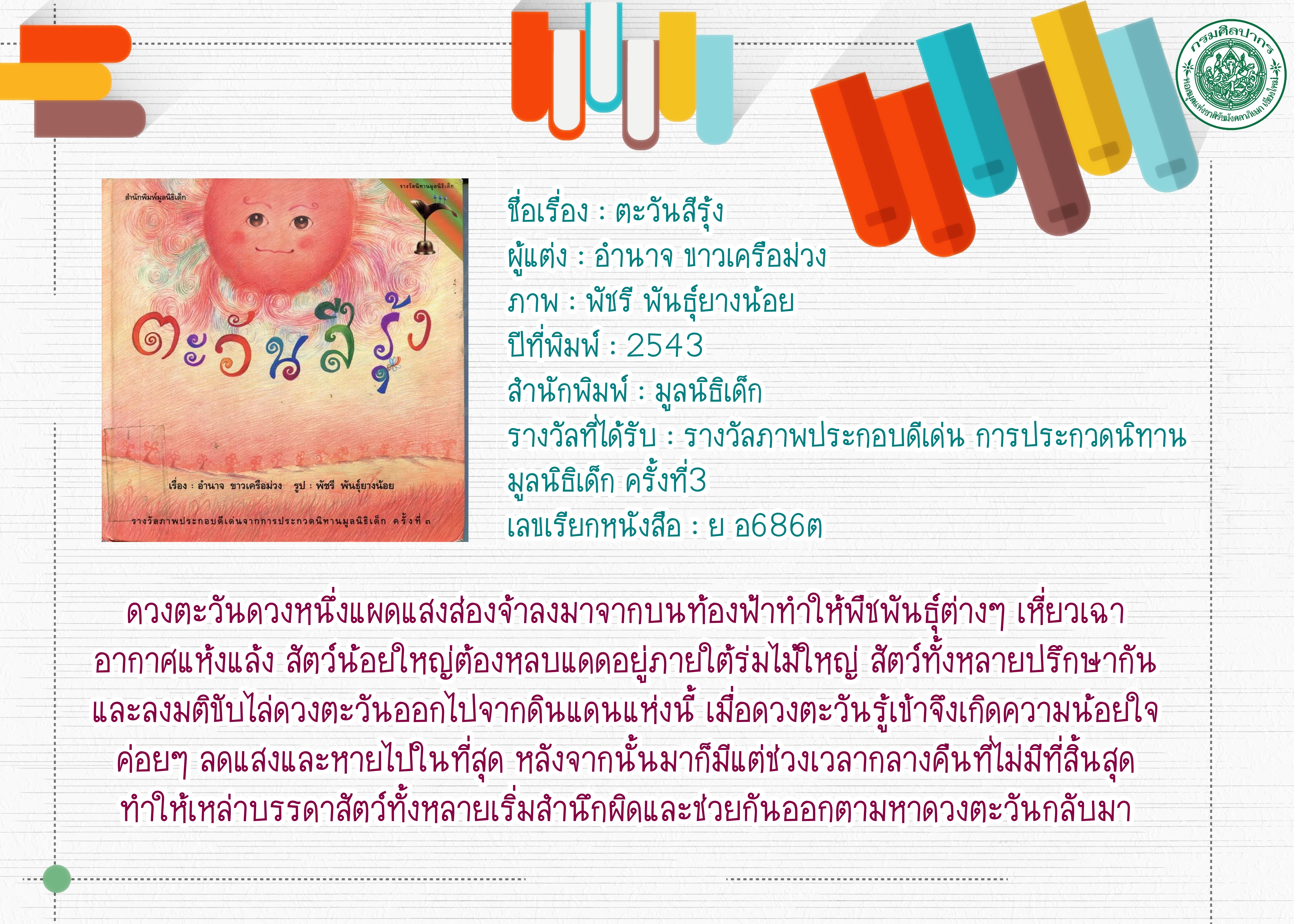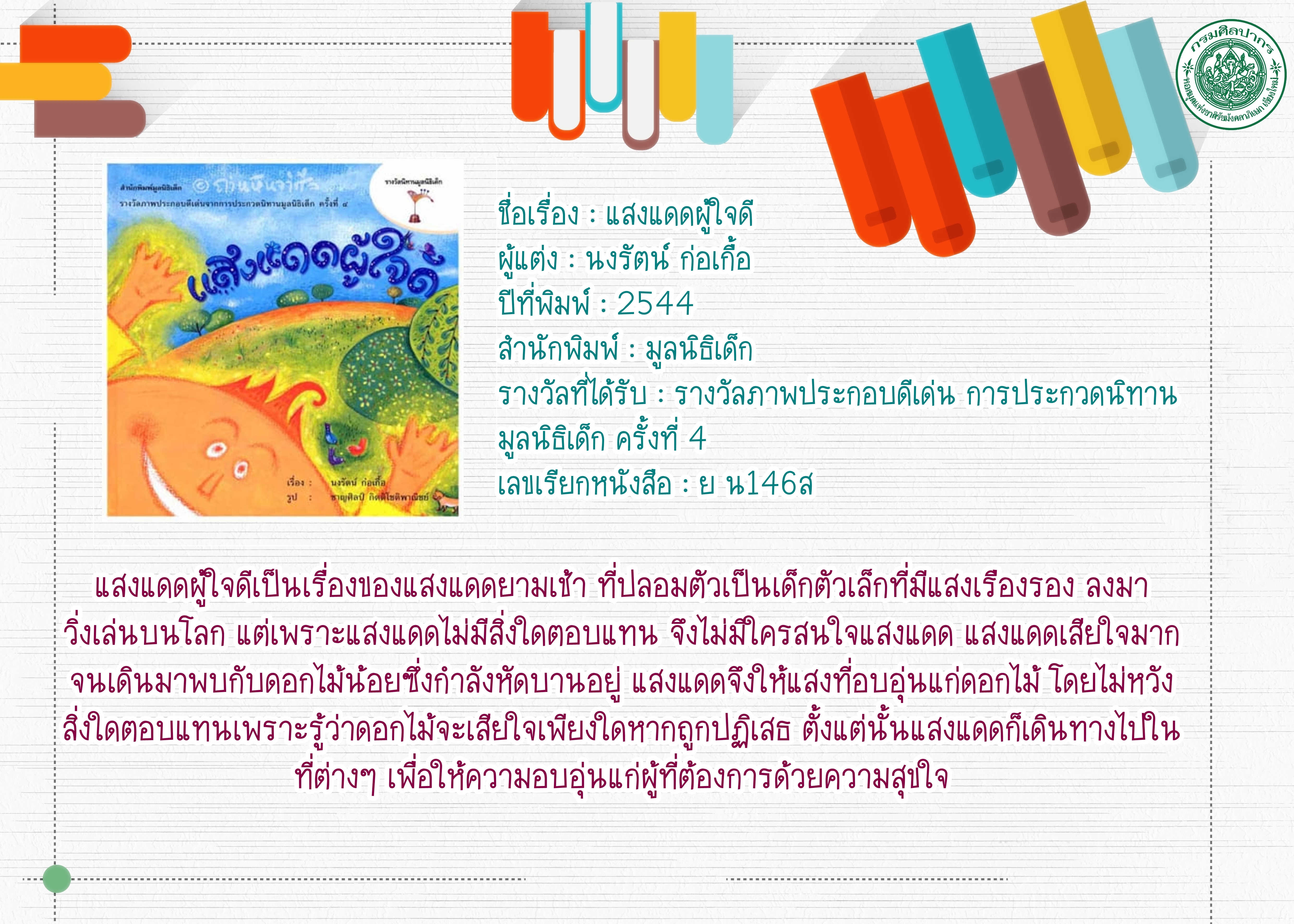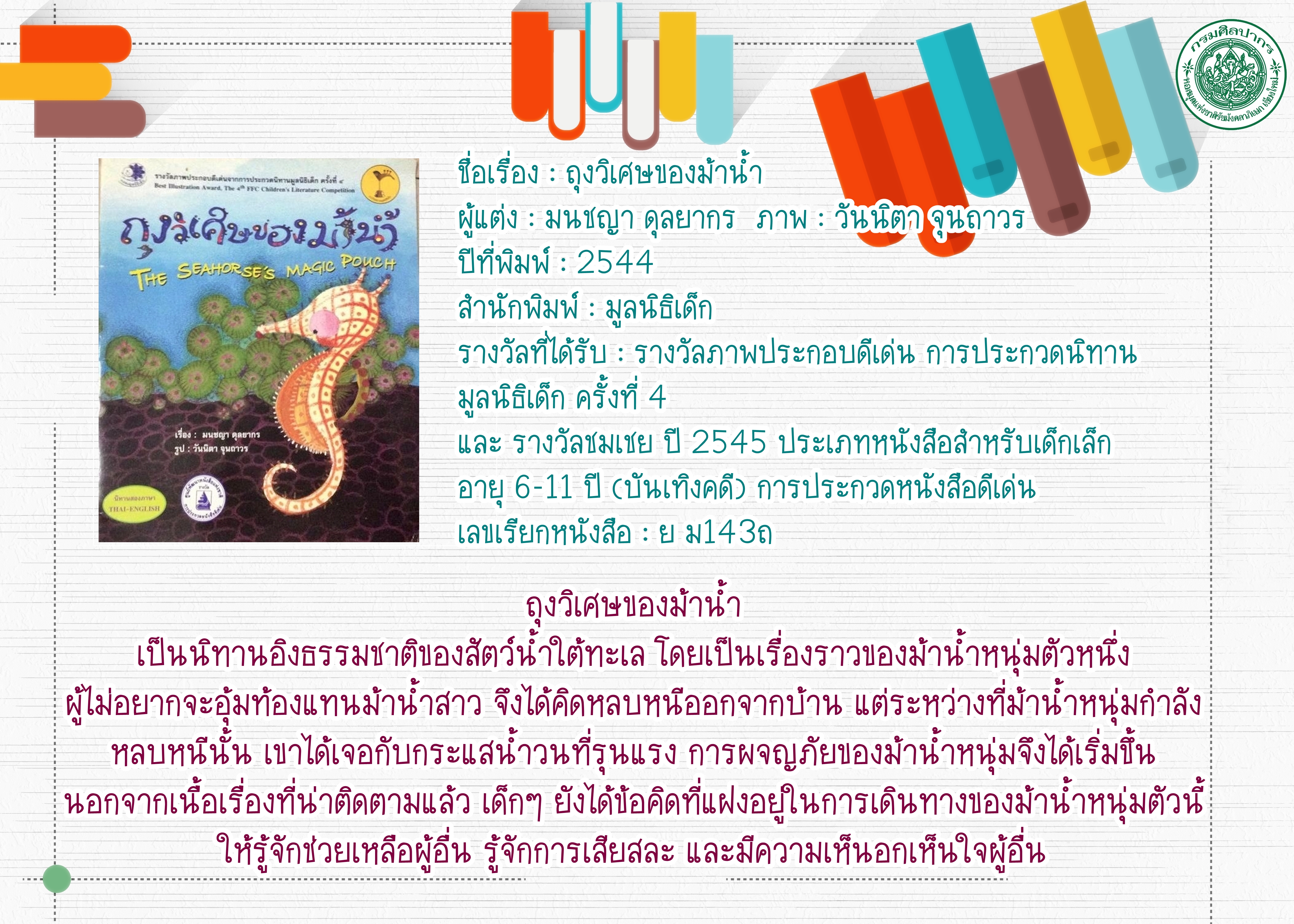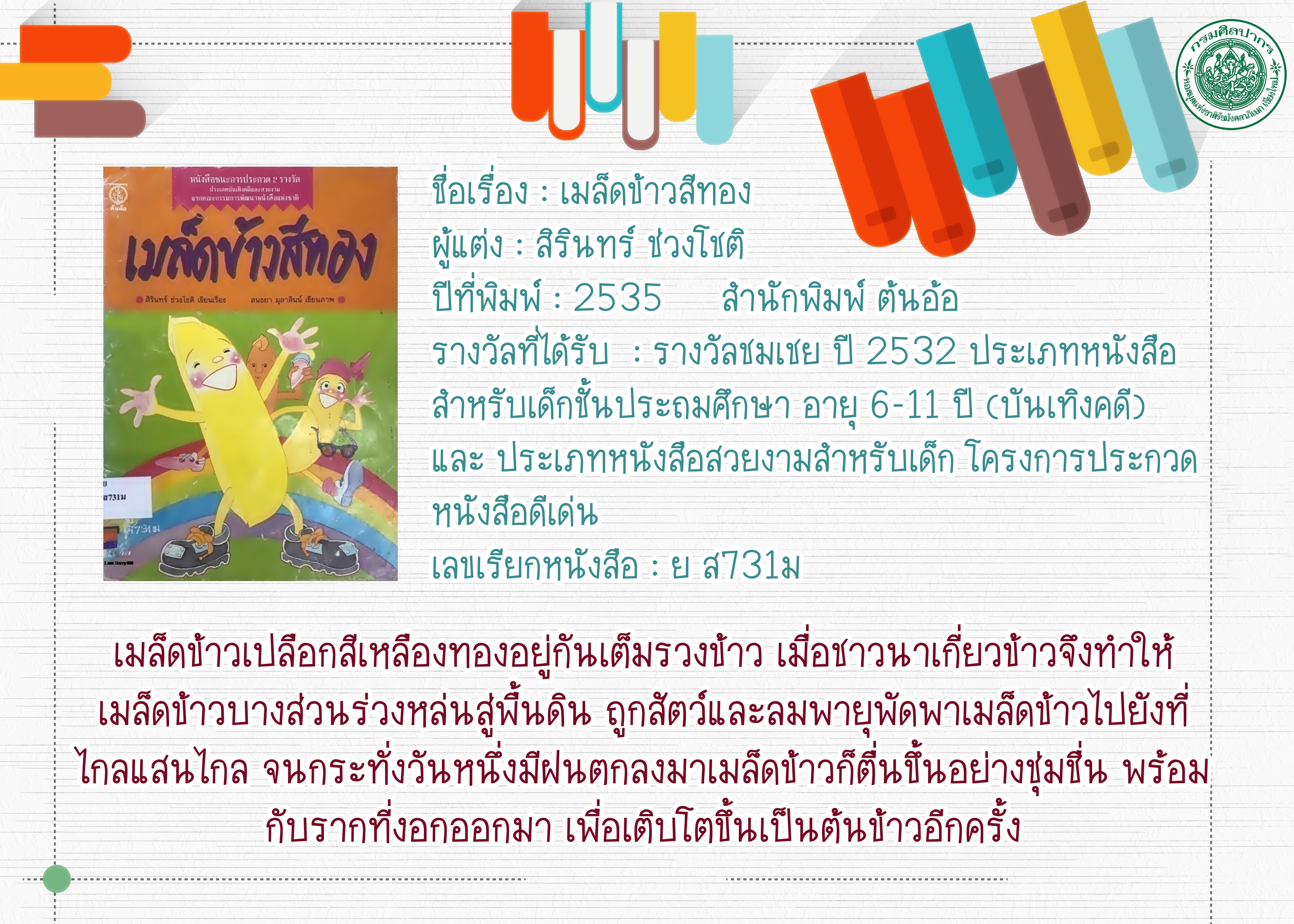 รายการหนังสือเด็กที่ได้รับรางวัล เช่น รางวัลมูลนิธิเด็ก รางวัลหนังสือดีเด่น รางวัลแว่นแก้ว ที่มีให้บริการในห้องหนังสือเด็กและเยาวชน หอสมุดแห่งชาติรัชมังคลาภิเษก เชียงใหม่
