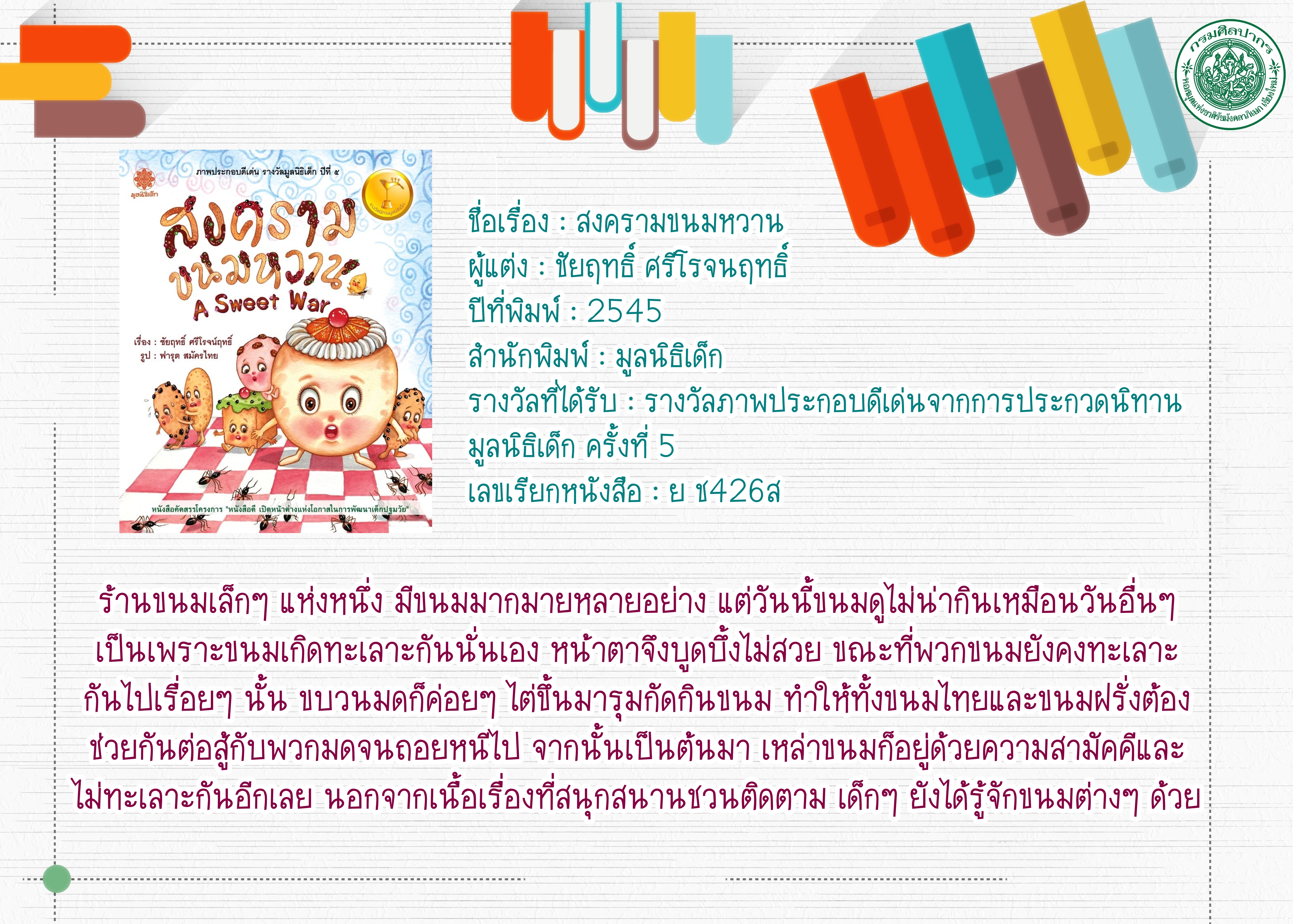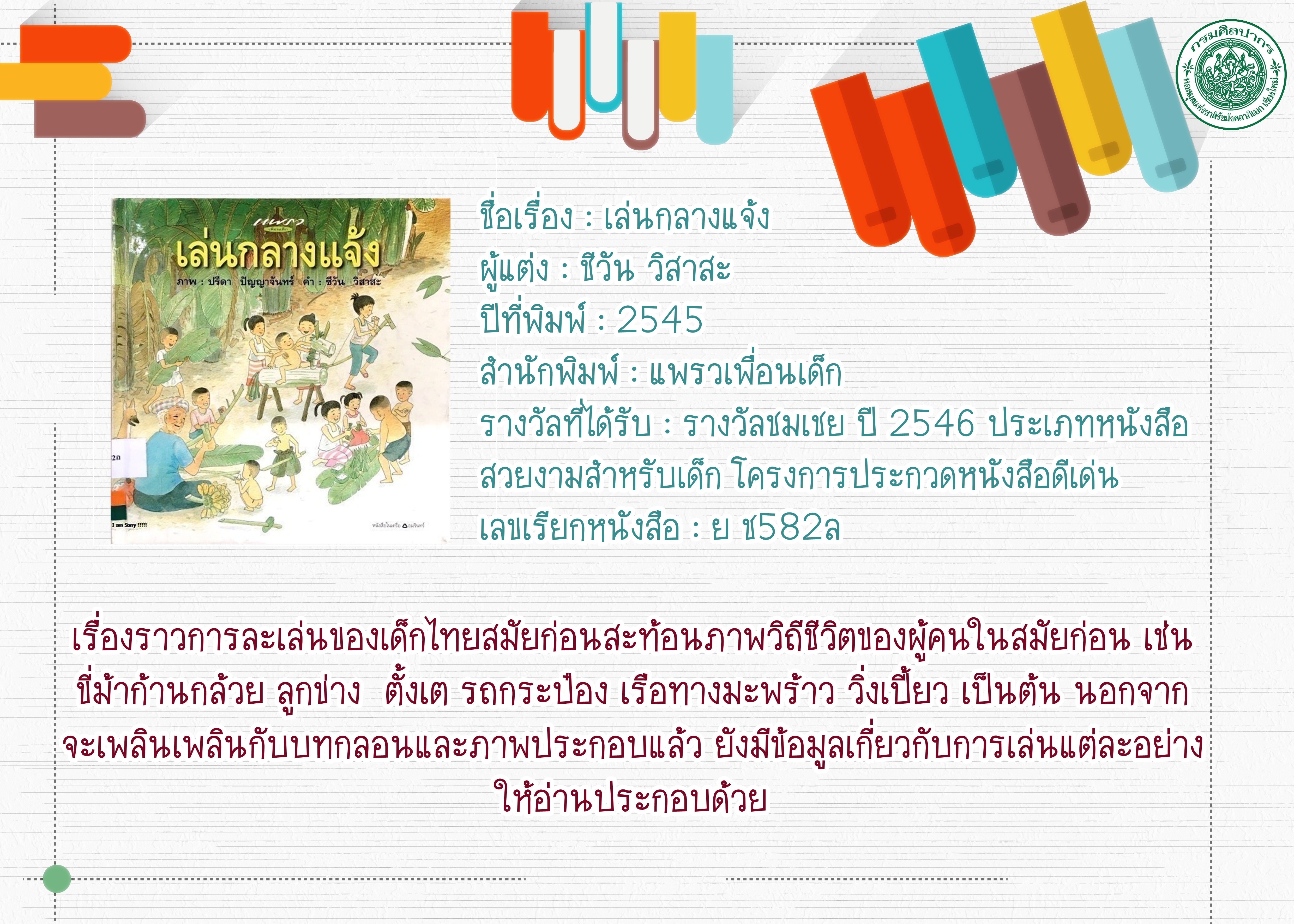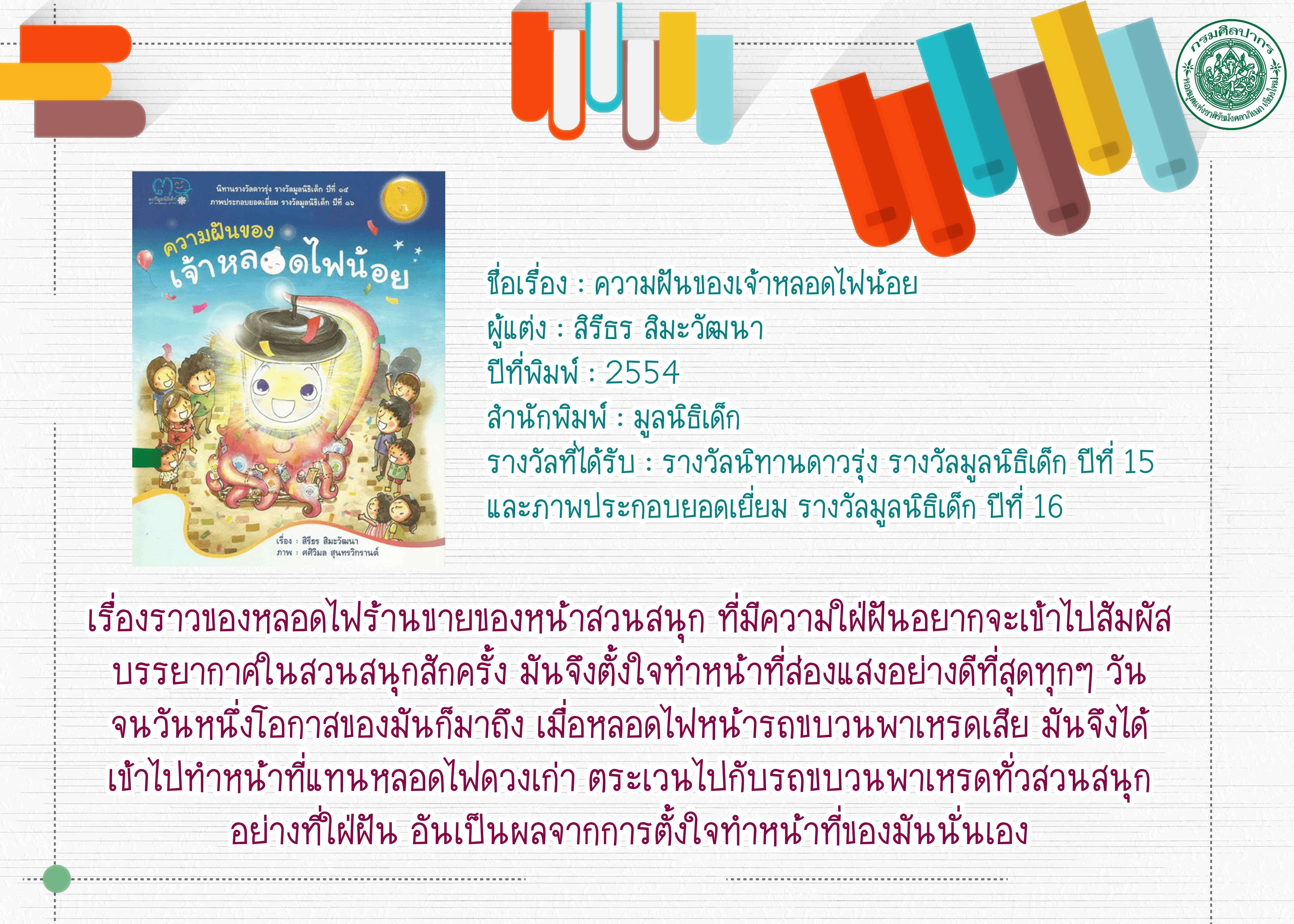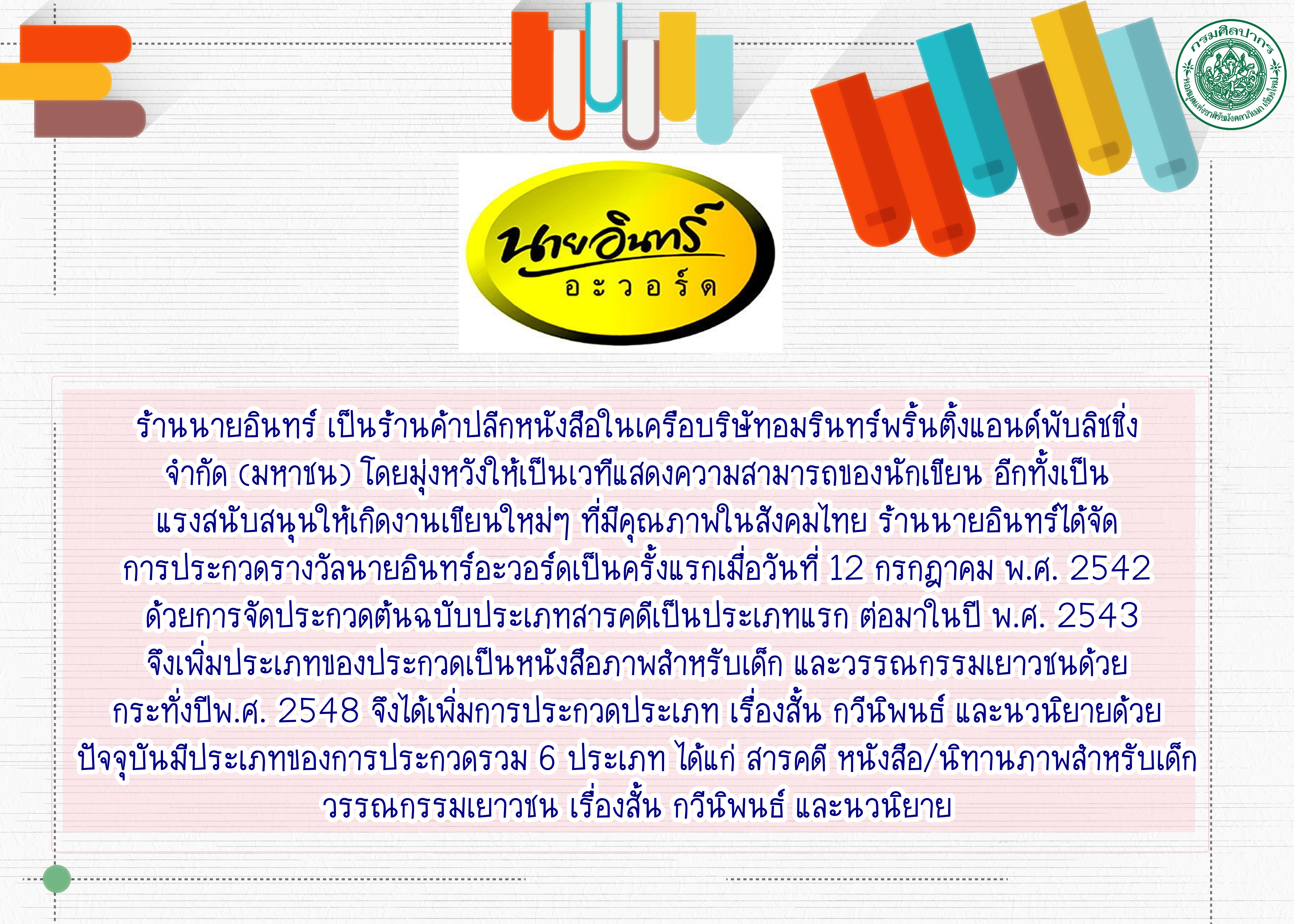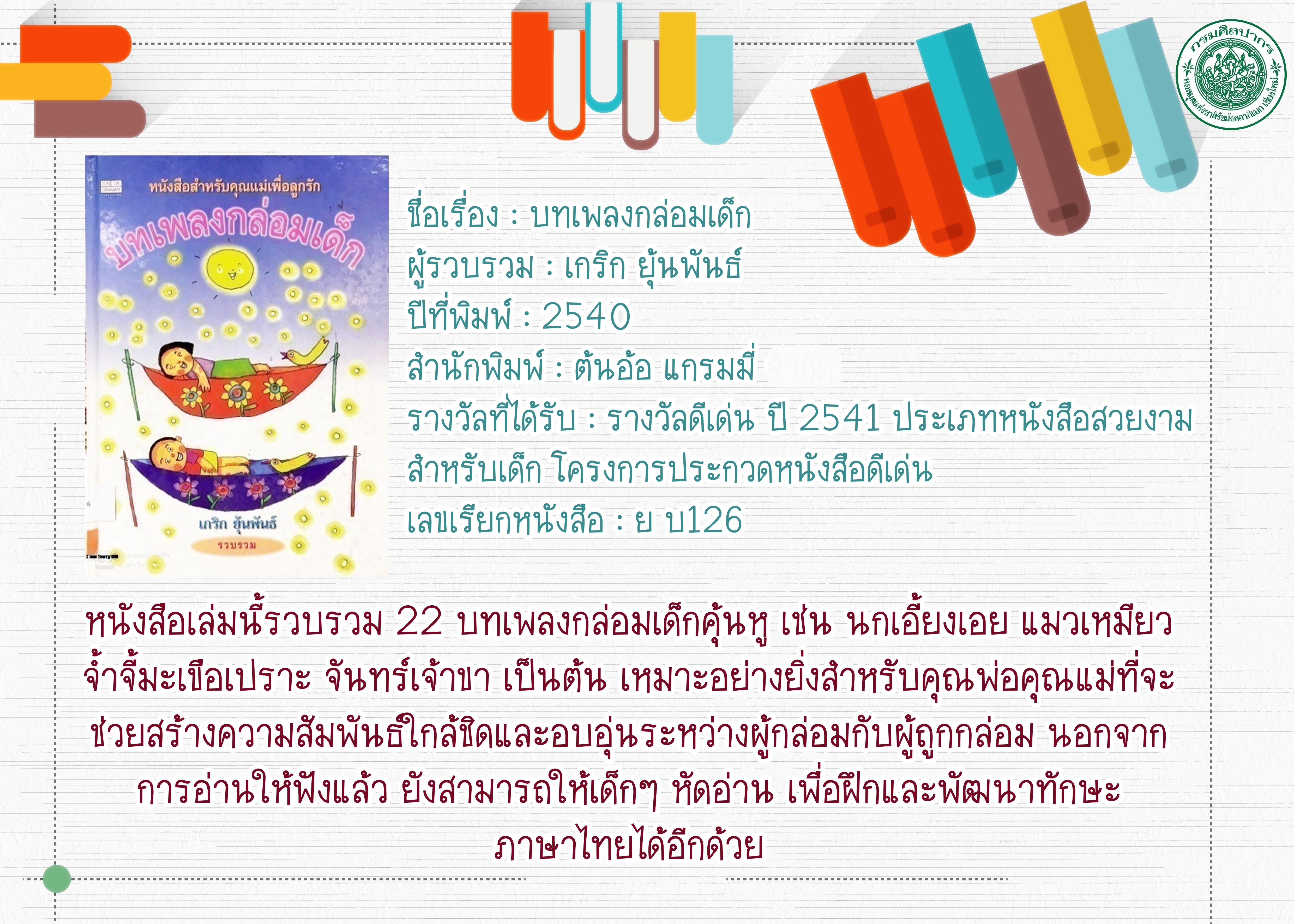 รายการหนังสือเด็กที่ได้รับรางวัล เช่น รางวัลมูลนิธิเด็ก รางวัลหนังสือดีเด่น รางวัลแว่นแก้ว ที่มีให้บริการในห้องหนังสือเด็กและเยาวชน หอสมุดแห่งชาติรัชมังคลาภิเษก เชียงใหม่