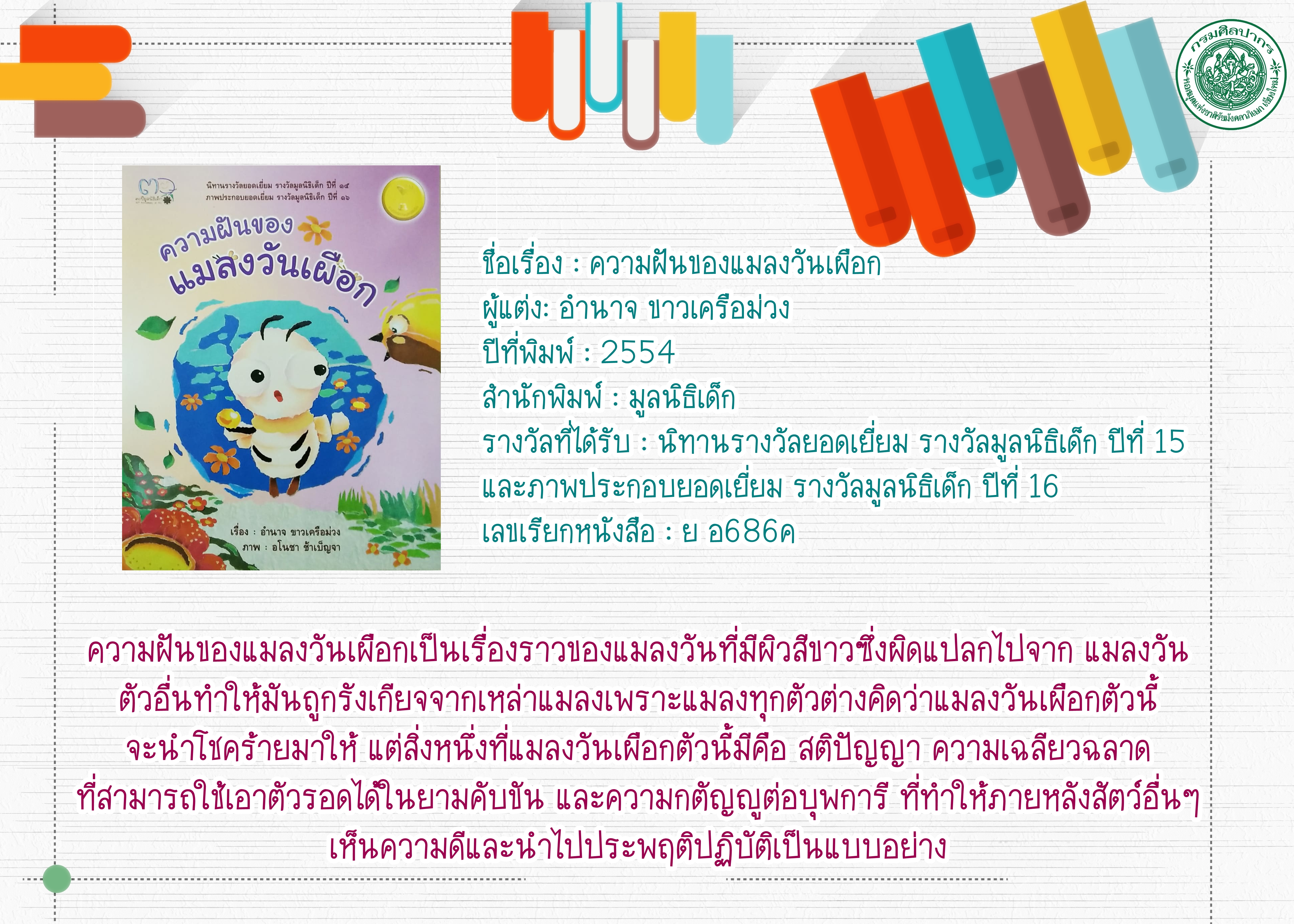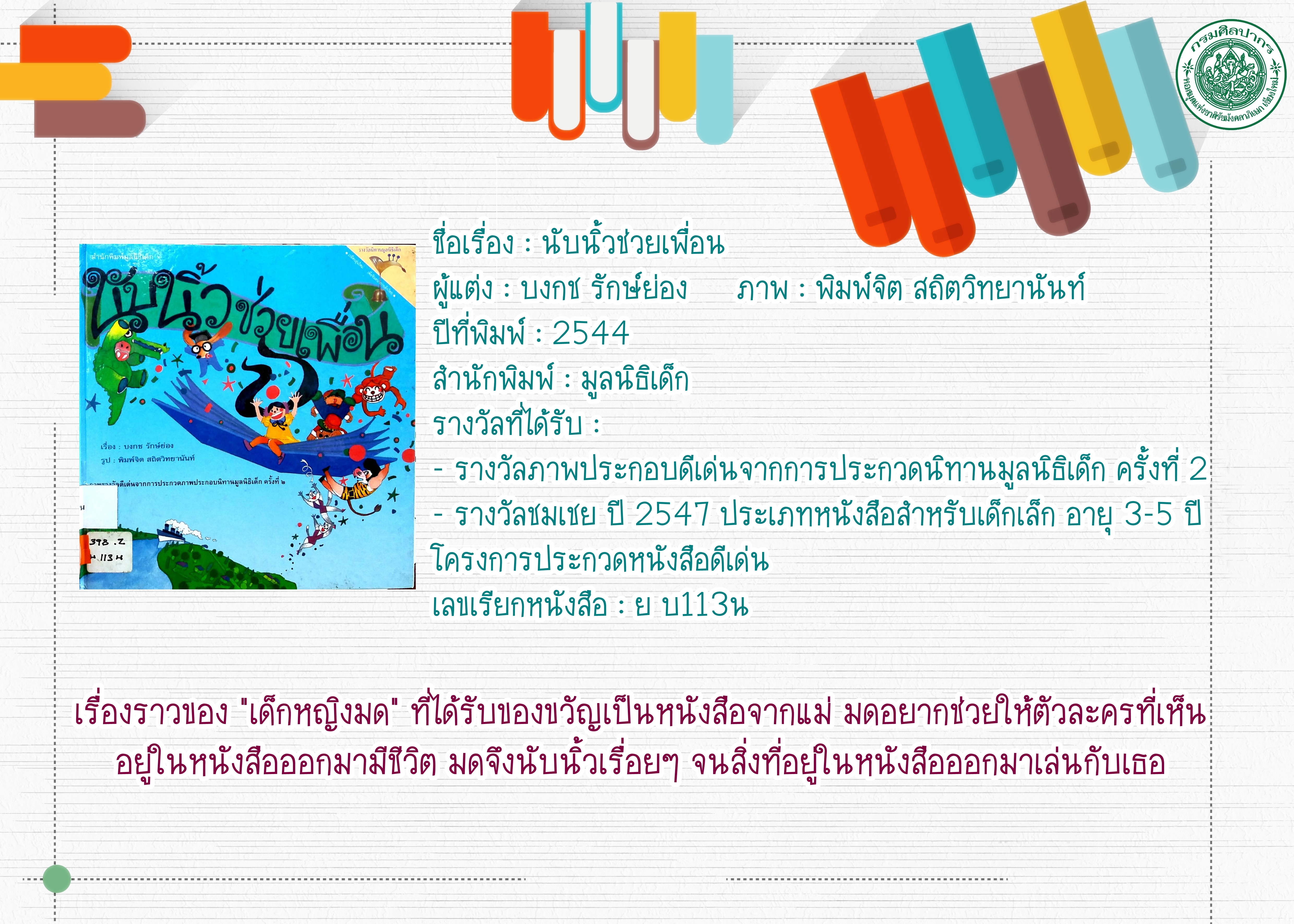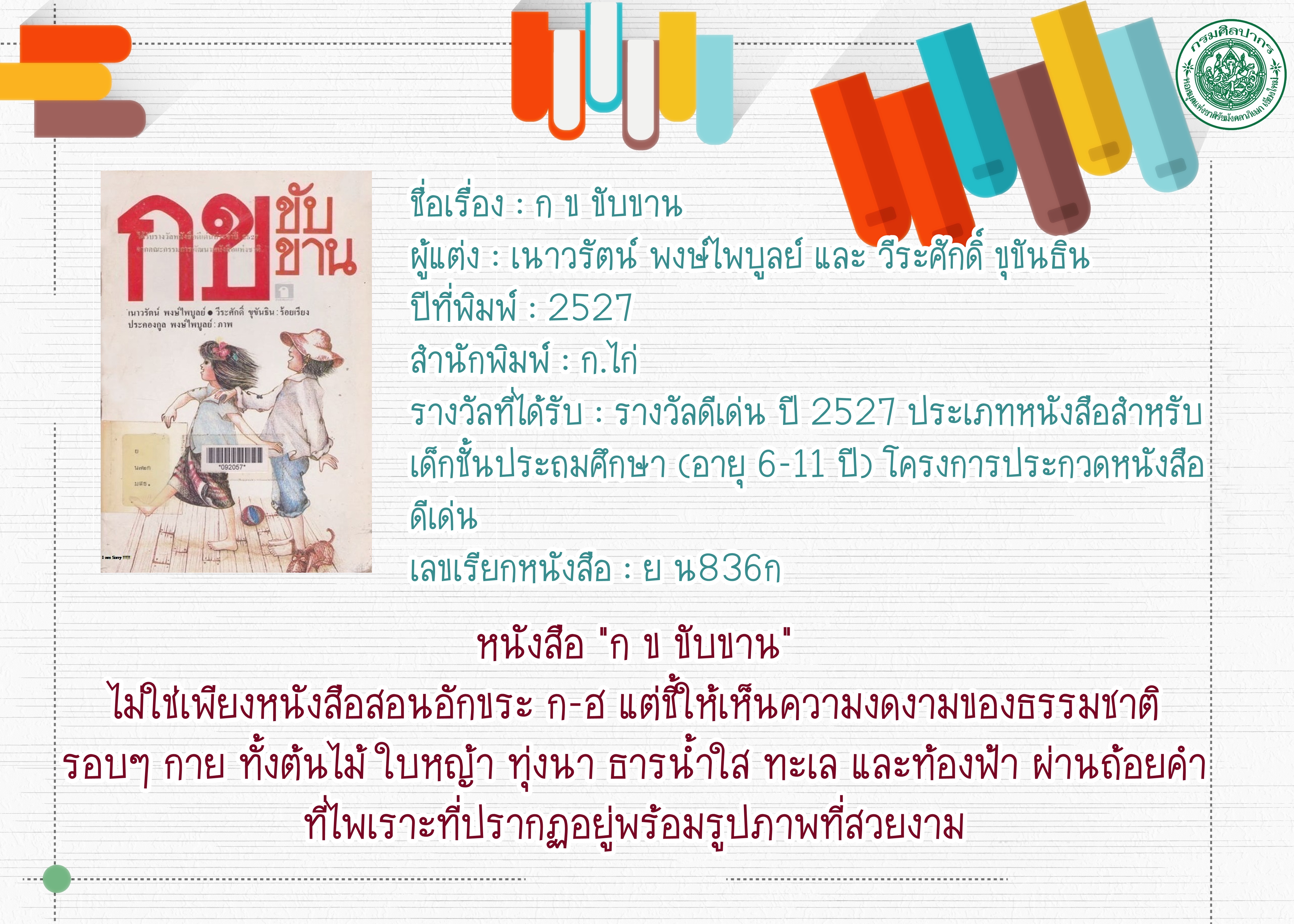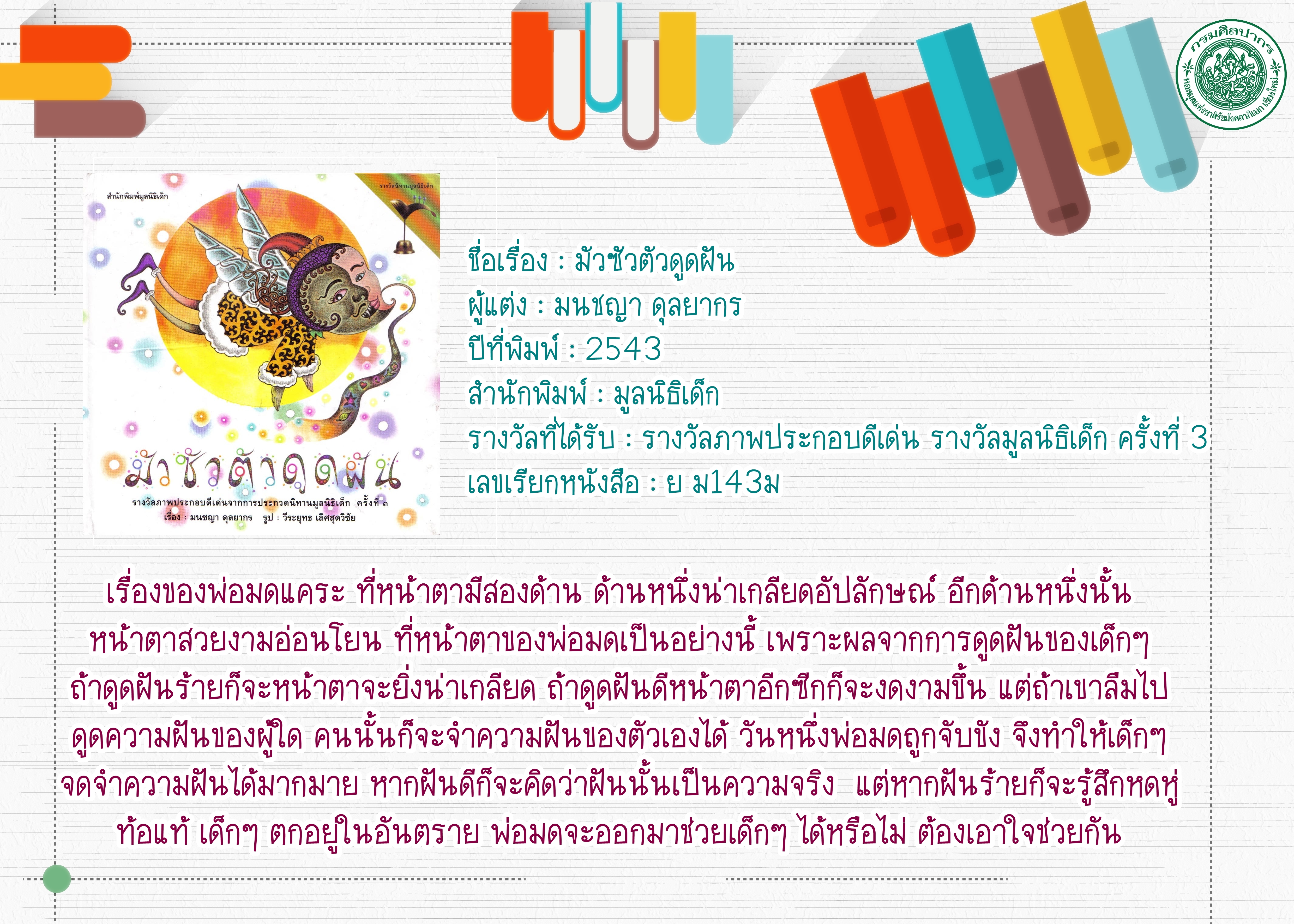 รายการหนังสือเด็กที่ได้รับรางวัล เช่น รางวัลมูลนิธิเด็ก รางวัลหนังสือดีเด่น รางวัลแว่นแก้ว ที่มีให้บริการในห้องหนังสือเด็กและเยาวชน หอสมุดแห่งชาติรัชมังคลาภิเษก เชียงใหม่