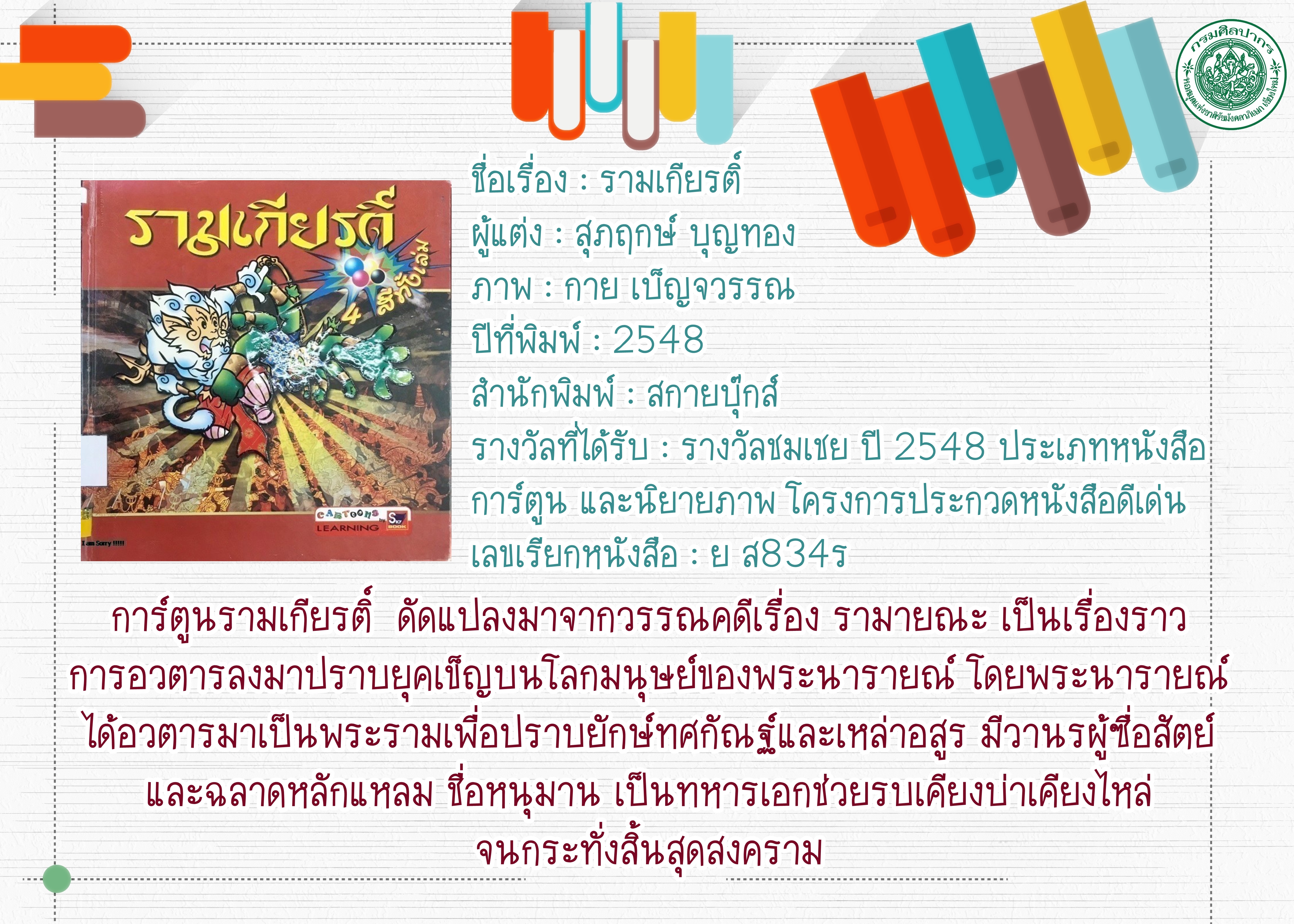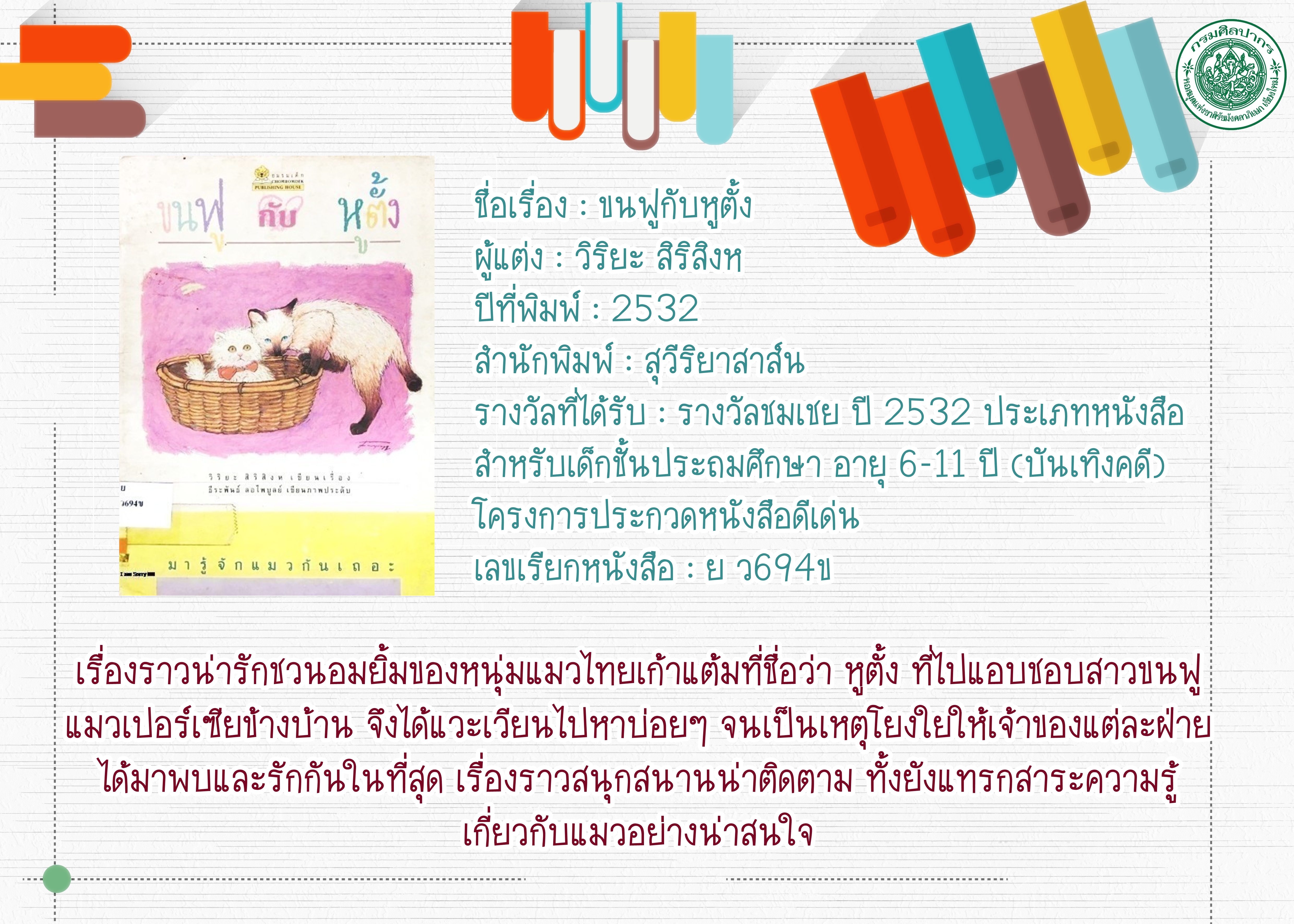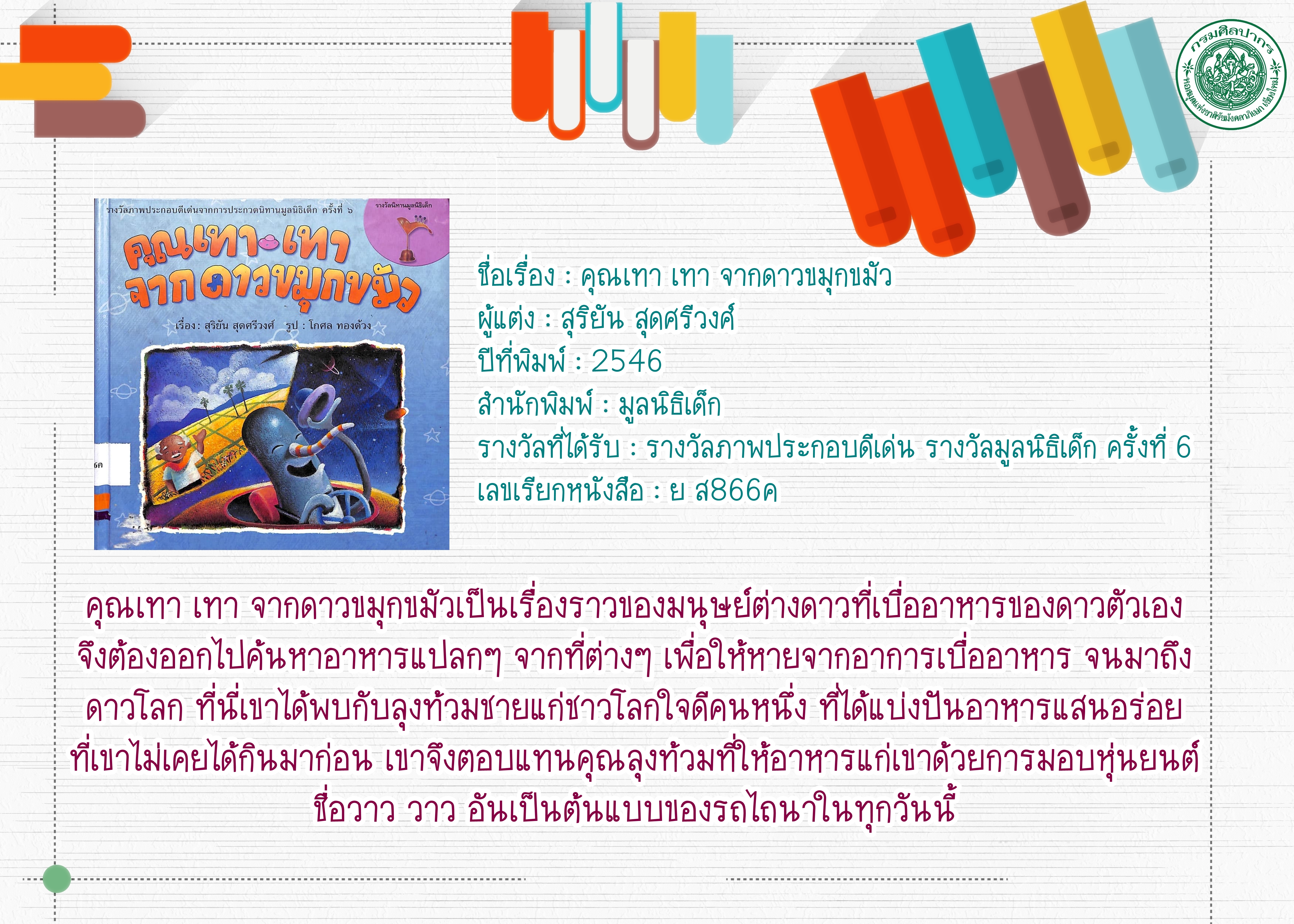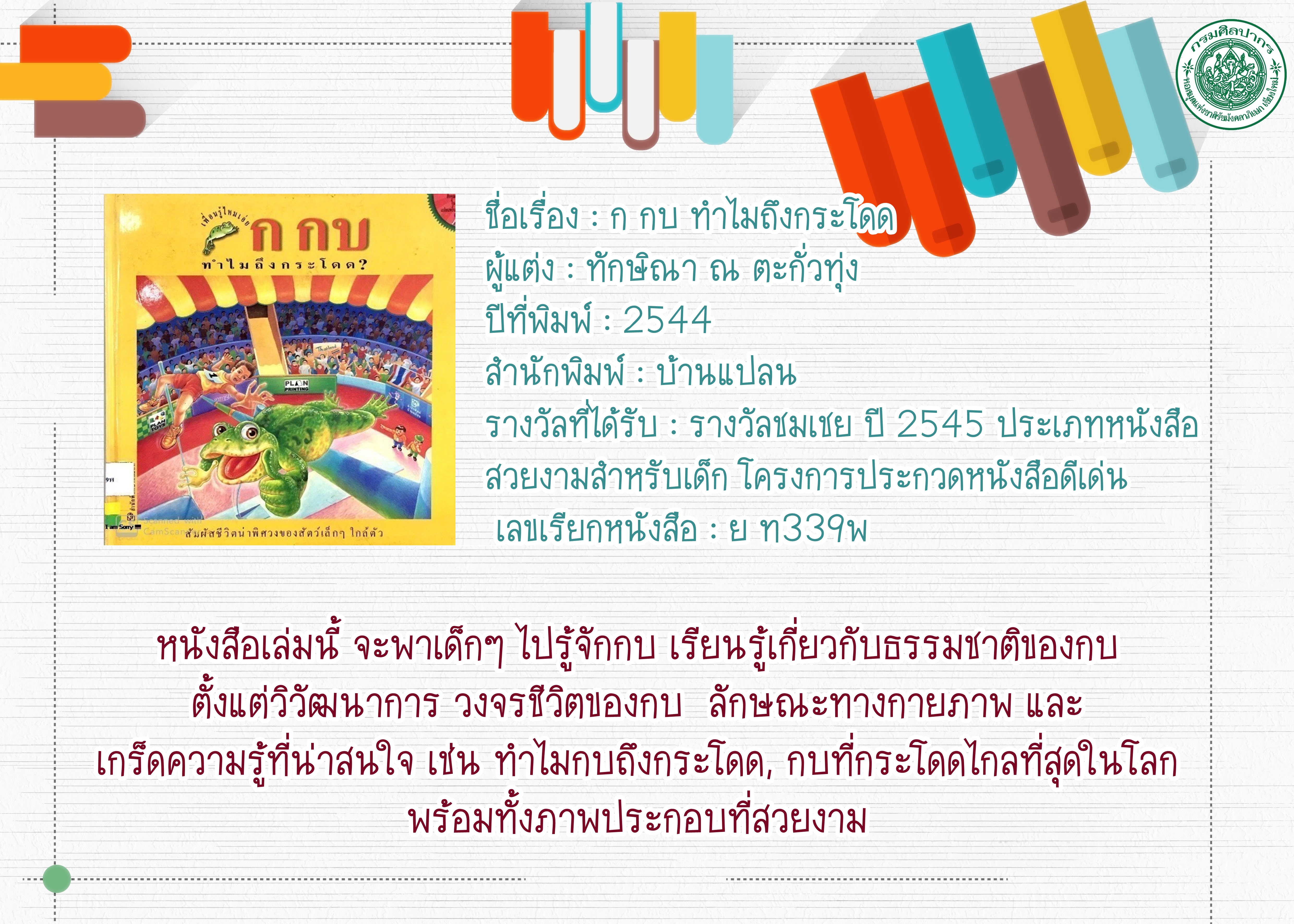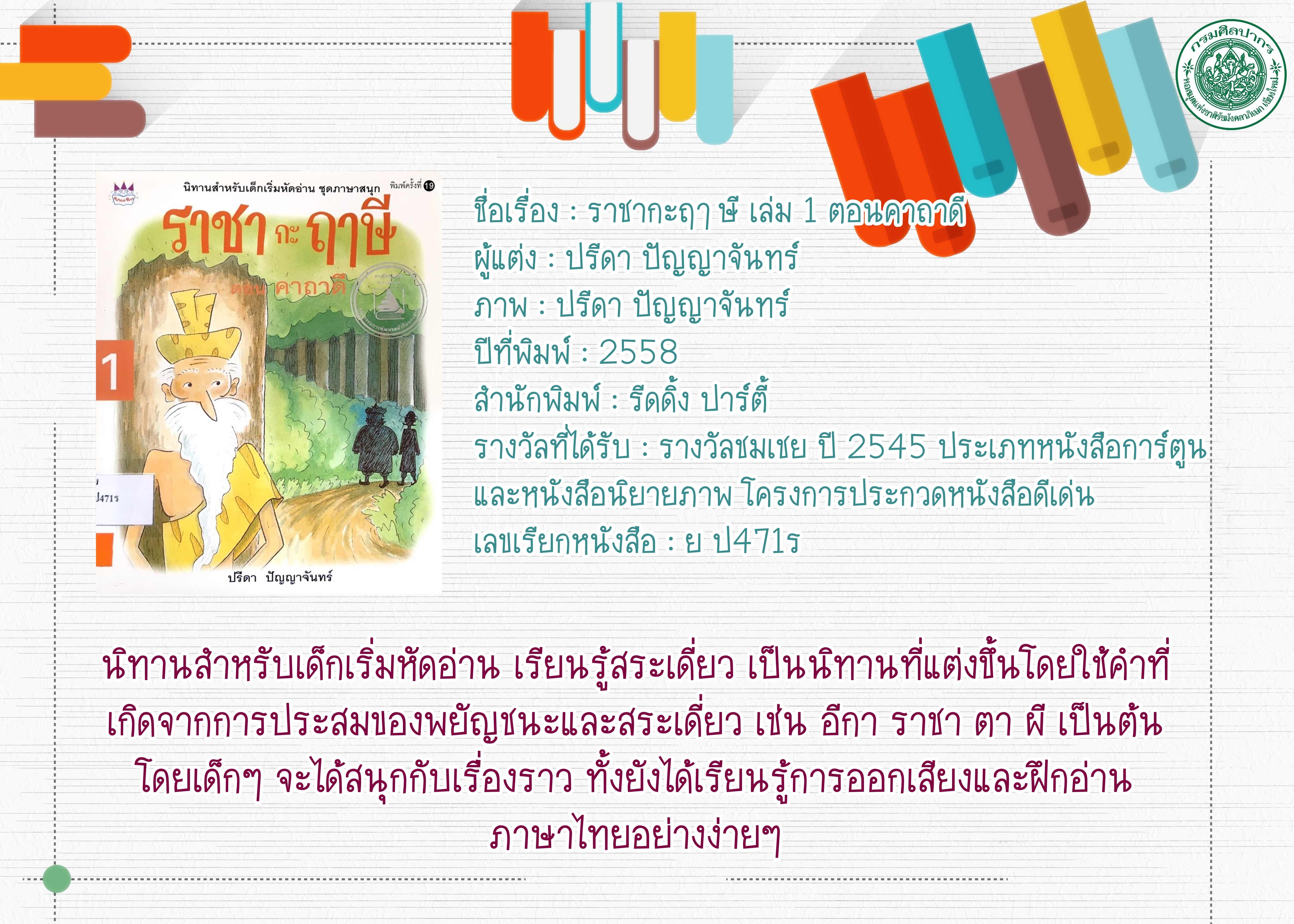 รายการหนังสือเด็กที่ได้รับรางวัล เช่น รางวัลมูลนิธิเด็ก รางวัลหนังสือดีเด่น รางวัลแว่นแก้ว ที่มีให้บริการในห้องหนังสือเด็กและเยาวชน หอสมุดแห่งชาติรัชมังคลาภิเษก เชียงใหม่
