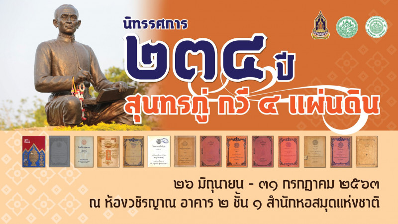 วันศุกร์ที่ ๒๖ มิถุนายน ๒๕๖๓ นางวราภรณ์ วสุนธรารัตน์ ผู้อำนวยการหอสมุดแห่งชาติรัชมังคลาภิเษก เชียงใหม่ เข้าร่วมพิธีเปิดนิทรรศการเนื่องในวันสุนทรภู่ ประจำปี พ.ศ. ๒๕๖๓ "๒๓๔ ปี สุนทรภู่ กวี ๔ แผ่นดิน" นิทรรศการฯ ดังกล่าวจัดตั้งแต่วันที่ ๒๖ มิถุนายน - ๓๑ กรกฎาคม พ.ศ. ๒๕๖๓ พบกับการจัดแสดงเอกสารโบราณ หนังสือหายาก ภาพถ่าย และสื่อดิจิทัลต่างๆ ที่เกี่ยวเนื่องกับสุนทรภู่และผลงาน เข้าชมโดยไม่เสียค่าใช้จ่ายได้ ณ ห้องวชิรญาณ อาคาร ๒ ชั้น ๑ สำนักหอสมุดแห่งชาติ กรุงเทพฯ