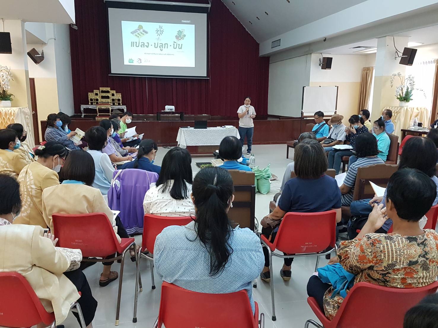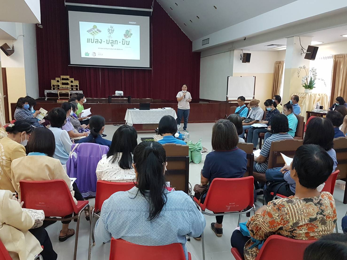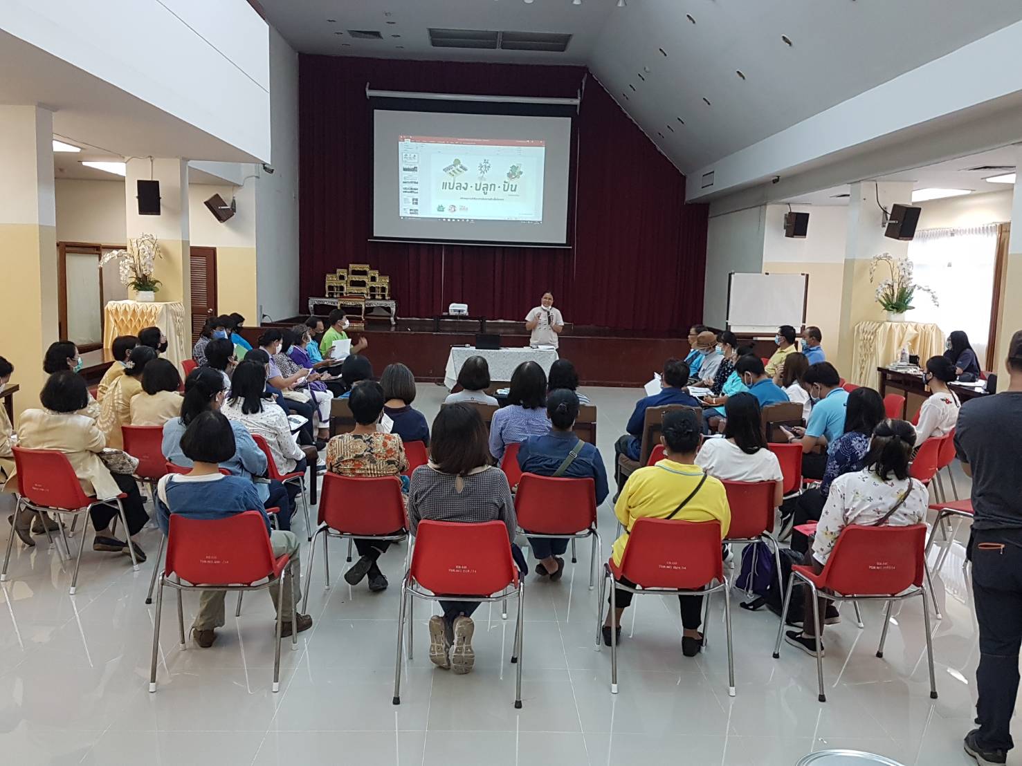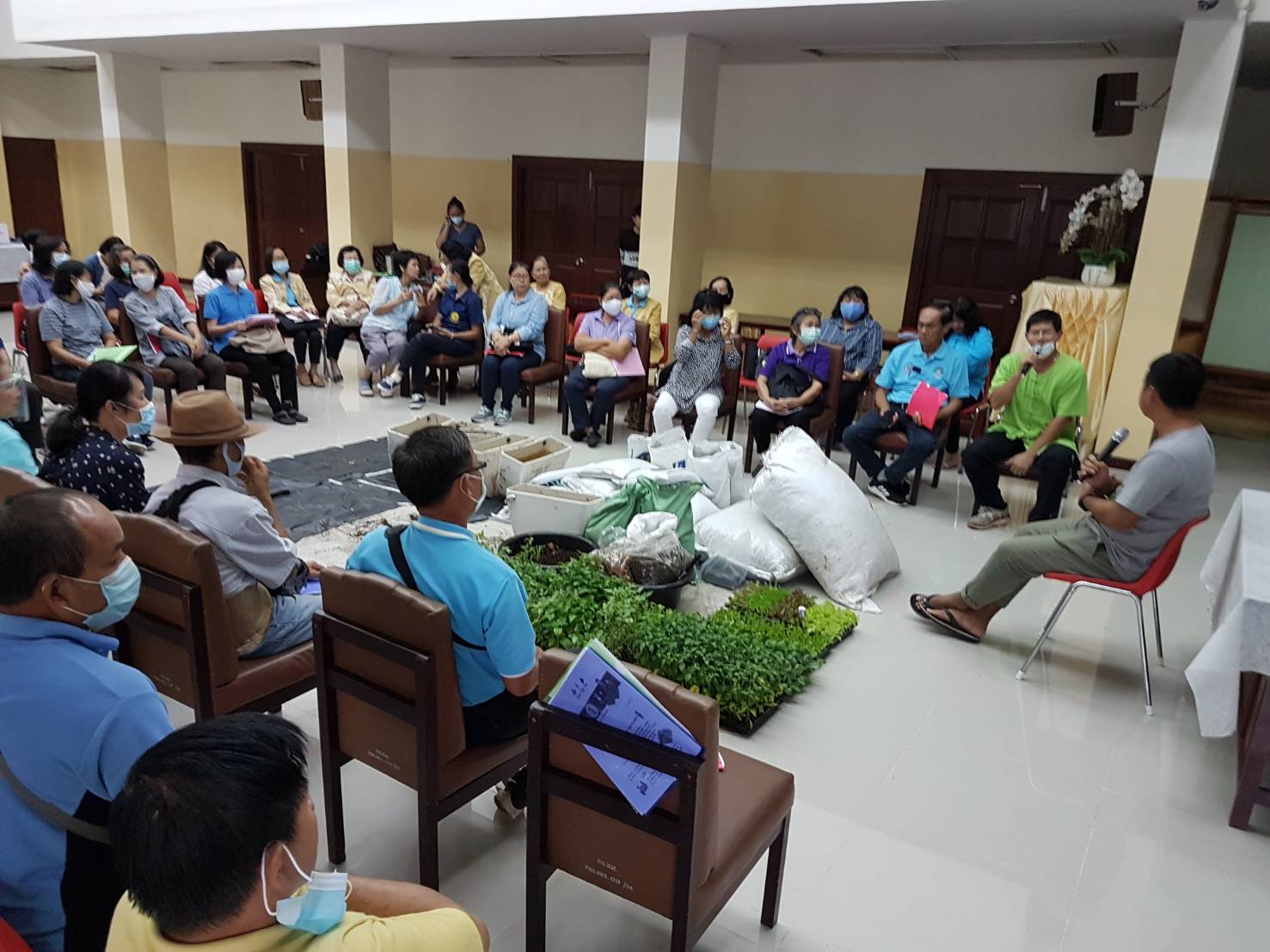 วันเสาร์ที่ ๑๕ สิงหาคม ๒๕๖๓ เวลา ๐๘.๓๐ - ๑๖.๐๐ น. เครือข่ายเชียงใหม่เขียวสวยหอม ร่วมกับเครือข่ายสวนผักคนเมืองกรุงเทพฯ มูลนิธิเกษตรยั่งยืน (ประเทศไทย) และหอสมุดแห่งชาติรัชมังคลาภิเษก เชียงใหม่ ดำเนินโครงการอบรมเชิงปฏิบัติการ "แปลง ปลูก ปัน" เพื่อสร้างสังคมที่มีความมั่นคงทางอาหารและสร้างความสมดุลให้ระบบอาหารของเมือง รวมทั้งบริหารจัดการสิ่งแวดล้อมอย่างเหมาะสมกับบริบทของพื้นที่ ทั้งหมด ๑๑ พื้นที่ในเมือเชียงใหม่ โดยมีนางวราภรณ์ วสุนธรารัตน์ ผู้อำนวยการหอสมุดแห่งชาติรัชมังคลาภิเษก เชียงใหม่ กล่าวต้อนรับ จำนวน ๖๐ คน ณ ห้องประชุม หอสมุดแห่งชาติรัชมังคลาภิเษก เชียงใหม่