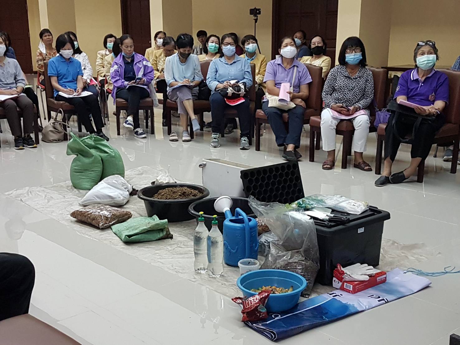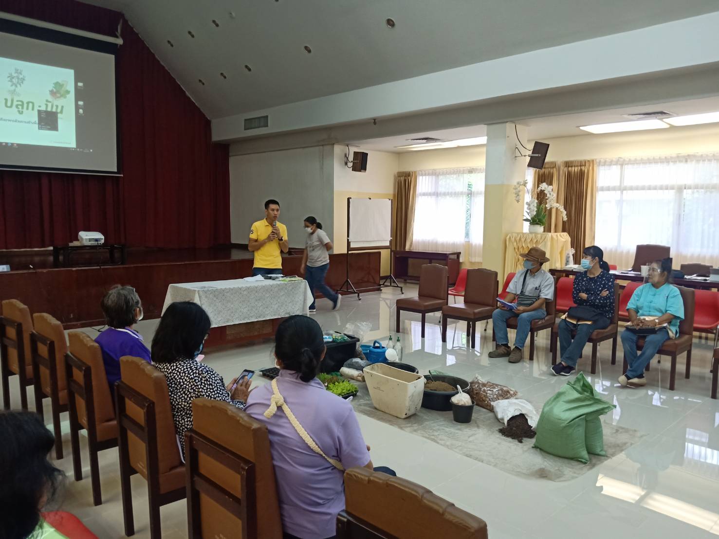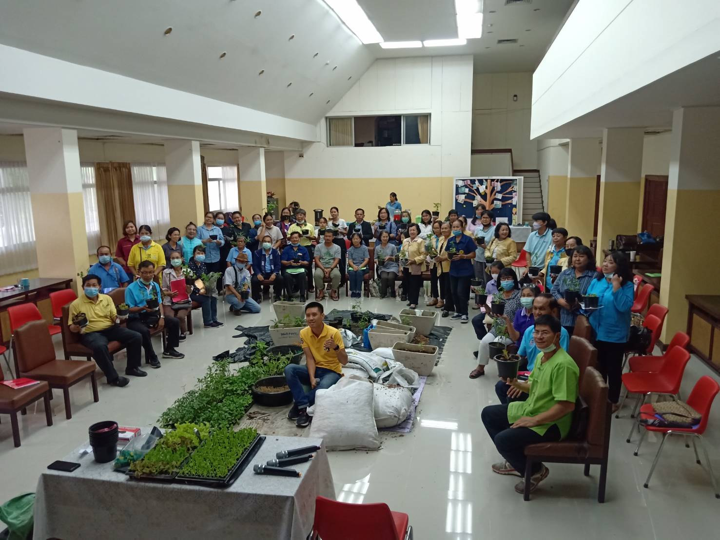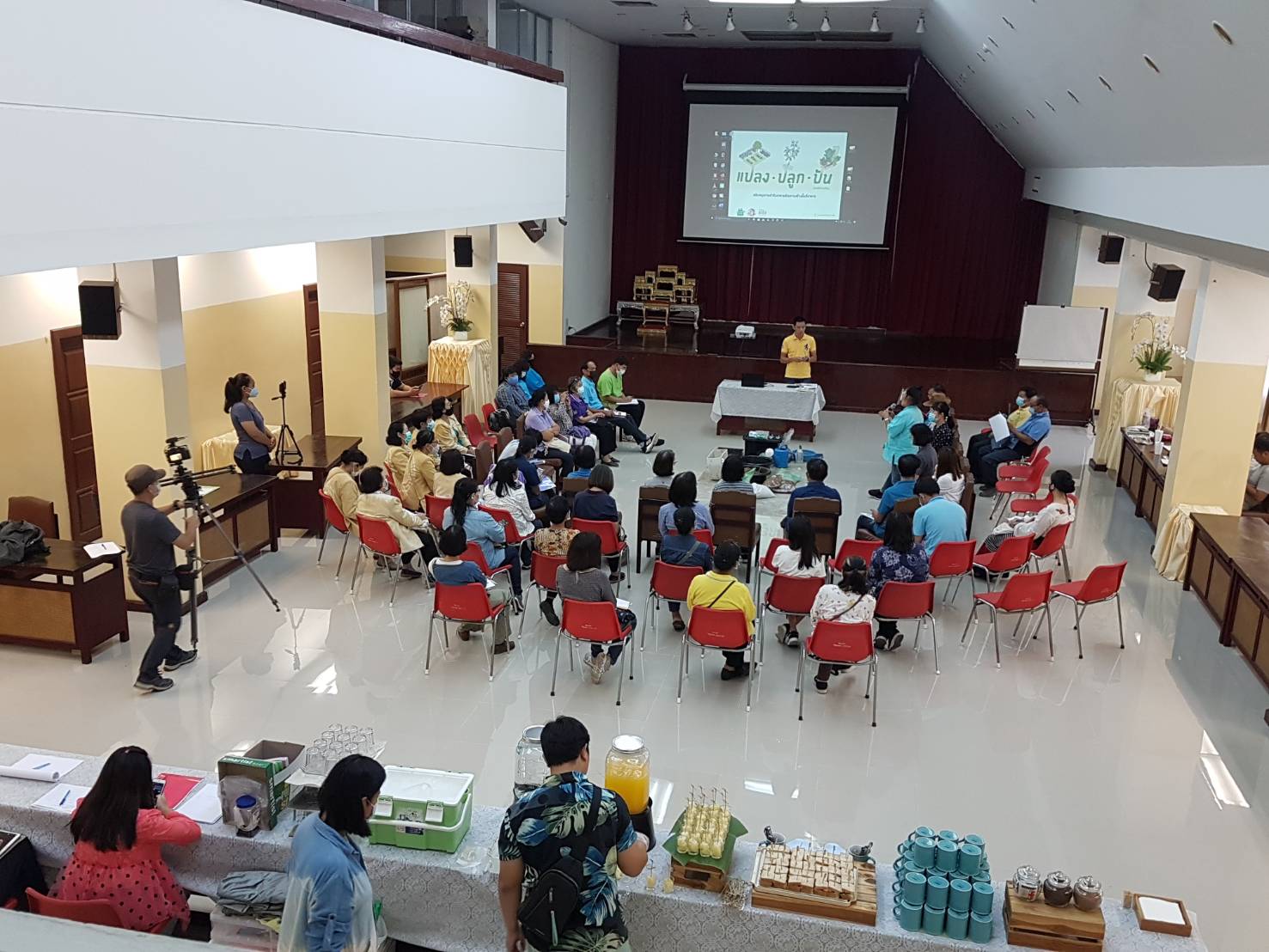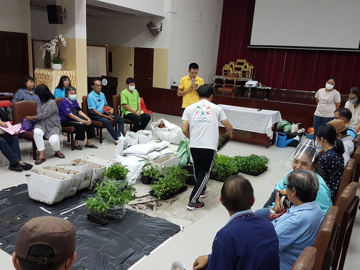 วันเสาร์ที่ ๑๕ สิงหาคม ๒๕๖๓ เวลา ๐๘.๓๐ - ๑๖.๐๐ น. เครือข่ายเชียงใหม่เขียวสวยหอม ร่วมกับเครือข่ายสวนผักคนเมืองกรุงเทพฯ มูลนิธิเกษตรยั่งยืน (ประเทศไทย) และหอสมุดแห่งชาติรัชมังคลาภิเษก เชียงใหม่ ดำเนินโครงการอบรมเชิงปฏิบัติการ "แปลง ปลูก ปัน" เพื่อสร้างสังคมที่มีความมั่นคงทางอาหารและสร้างความสมดุลให้ระบบอาหารของเมือง รวมทั้งบริหารจัดการสิ่งแวดล้อมอย่างเหมาะสมกับบริบทของพื้นที่ ทั้งหมด ๑๑ พื้นที่ในเมือเชียงใหม่ โดยมีนางวราภรณ์ วสุนธรารัตน์ ผู้อำนวยการหอสมุดแห่งชาติรัชมังคลาภิเษก เชียงใหม่ กล่าวต้อนรับ จำนวน ๖๐ คน ณ ห้องประชุม หอสมุดแห่งชาติรัชมังคลาภิเษก เชียงใหม่