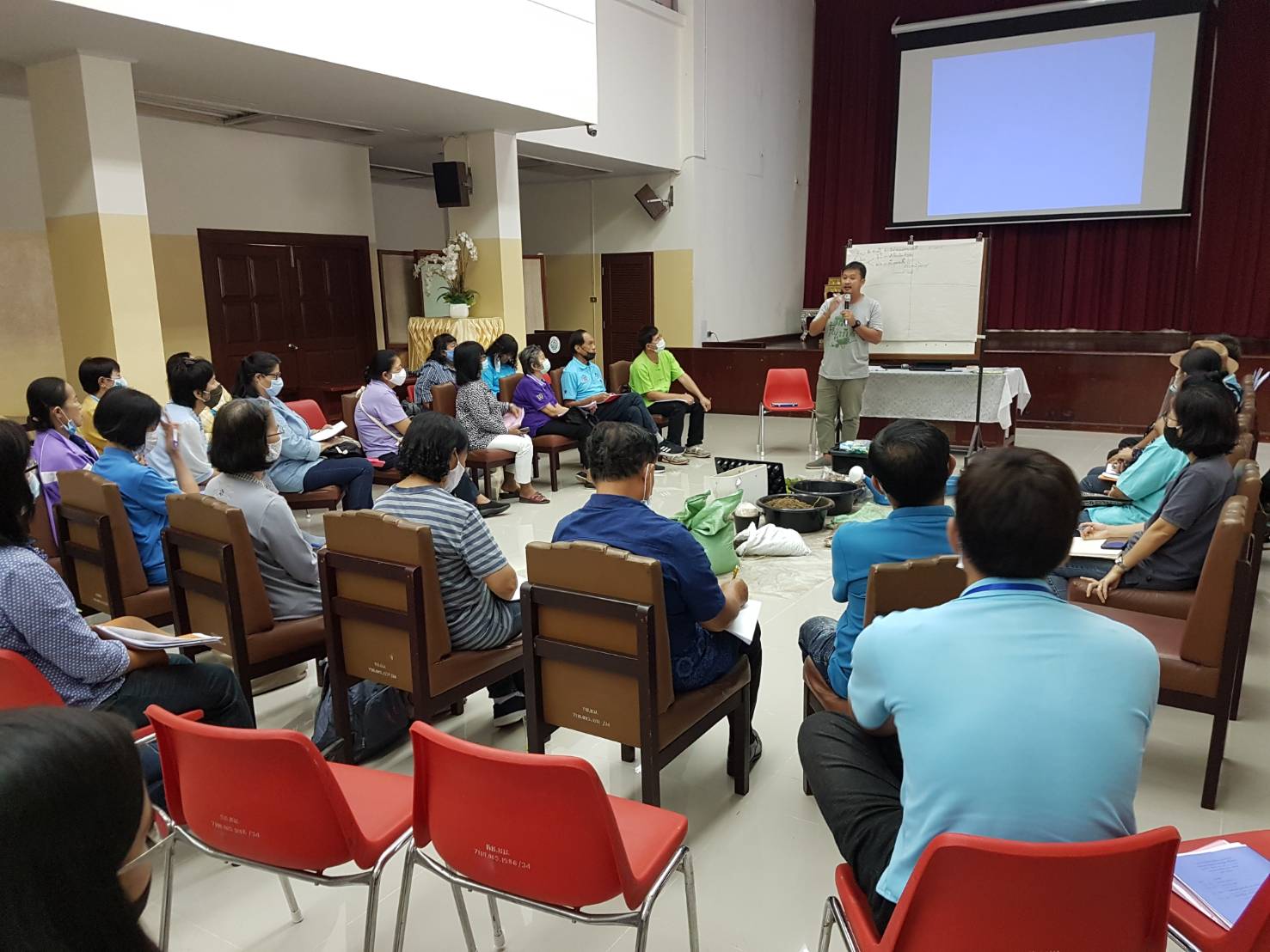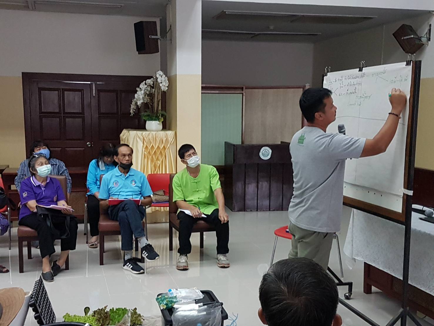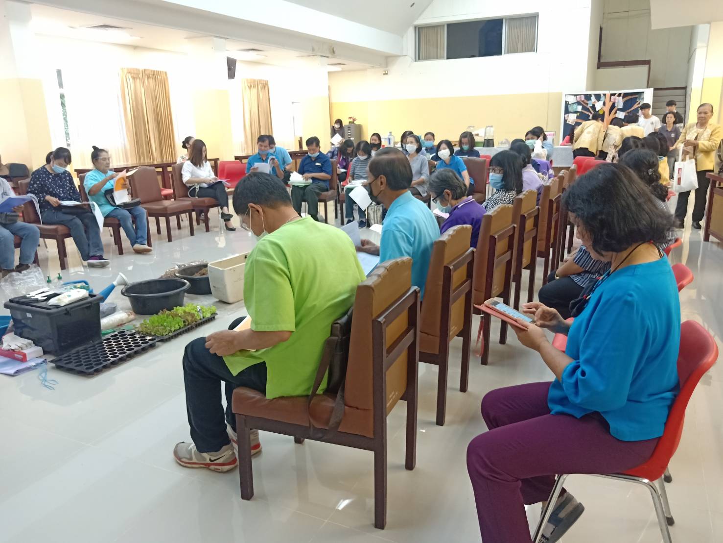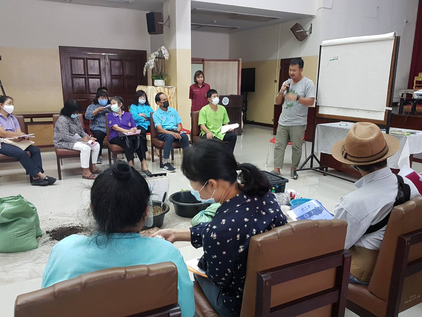 วันเสาร์ที่ ๑๕ สิงหาคม ๒๕๖๓ เวลา ๐๘.๓๐ - ๑๖.๐๐ น. เครือข่ายเชียงใหม่เขียวสวยหอม ร่วมกับเครือข่ายสวนผักคนเมืองกรุงเทพฯ มูลนิธิเกษตรยั่งยืน (ประเทศไทย) และหอสมุดแห่งชาติรัชมังคลาภิเษก เชียงใหม่ ดำเนินโครงการอบรมเชิงปฏิบัติการ "แปลง ปลูก ปัน" เพื่อสร้างสังคมที่มีความมั่นคงทางอาหารและสร้างความสมดุลให้ระบบอาหารของเมือง รวมทั้งบริหารจัดการสิ่งแวดล้อมอย่างเหมาะสมกับบริบทของพื้นที่ ทั้งหมด ๑๑ พื้นที่ในเมือเชียงใหม่ โดยมีนางวราภรณ์ วสุนธรารัตน์ ผู้อำนวยการหอสมุดแห่งชาติรัชมังคลาภิเษก เชียงใหม่ กล่าวต้อนรับ จำนวน ๖๐ คน ณ ห้องประชุม หอสมุดแห่งชาติรัชมังคลาภิเษก เชียงใหม่