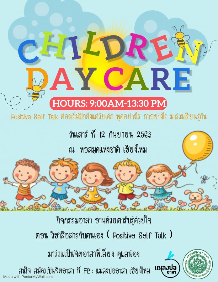วันเสาร์ ที่ ๑๒ กันยายน ๒๕๖๓ เวลา ๐๙.๐๐ - ๑๓.๓๐ น. กลุ่มแมลงปออาสา เชียงใหม่ ร่วมกับ หอสมุดแห่งชาติรัชมังคลาภิเษก เชียงใหม่ และบ้านเด็กยินดี จัดกิจกรรมอาสา อ่านด้วยตารับรู้ด้วยใจ ตอนวิชาสื่อสารกับตนเอง (Positive Self Talk) ต้องเริ่มฝึกตั้งแต่วัยเด็ก พูดอย่างไร ทำอย่างไร มาร่วมเรียนรู้กัน โดยมีจิตอาสาพี่เลี้ยง ดูแลน้องและร่วมทำกิจกรรม ณ ห้องโสตทัศนวัสดุ หอสมุดแห่งชาติ เชียงใหม่