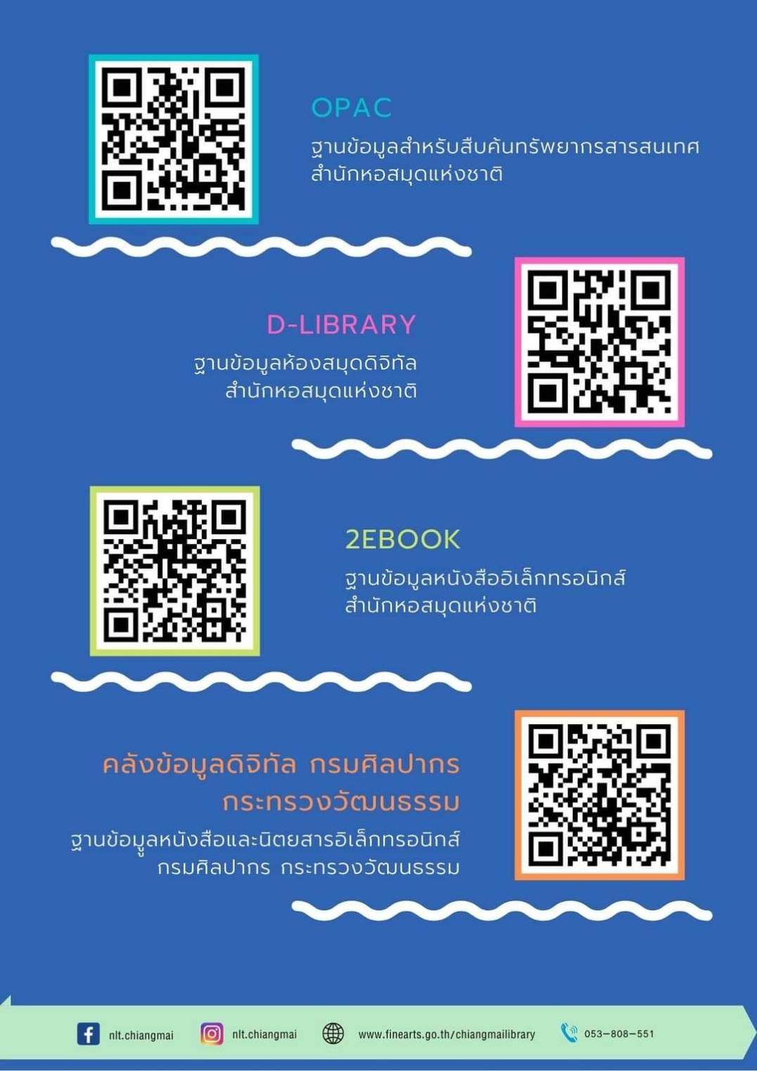 ผู้ใช้บริการสามารถเข้าฐานข้อมูล ด้วยการสแกนคิวอาร์โค้ด ๔ ฐานข้อมูล ดังนี้