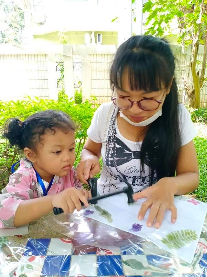 ทุบสนุก ได้เรียนรู้ หยิบจับใบไม้ ดอกไม้ ที่อยู่รอบๆ ตัว มาสร้างลวดลาย