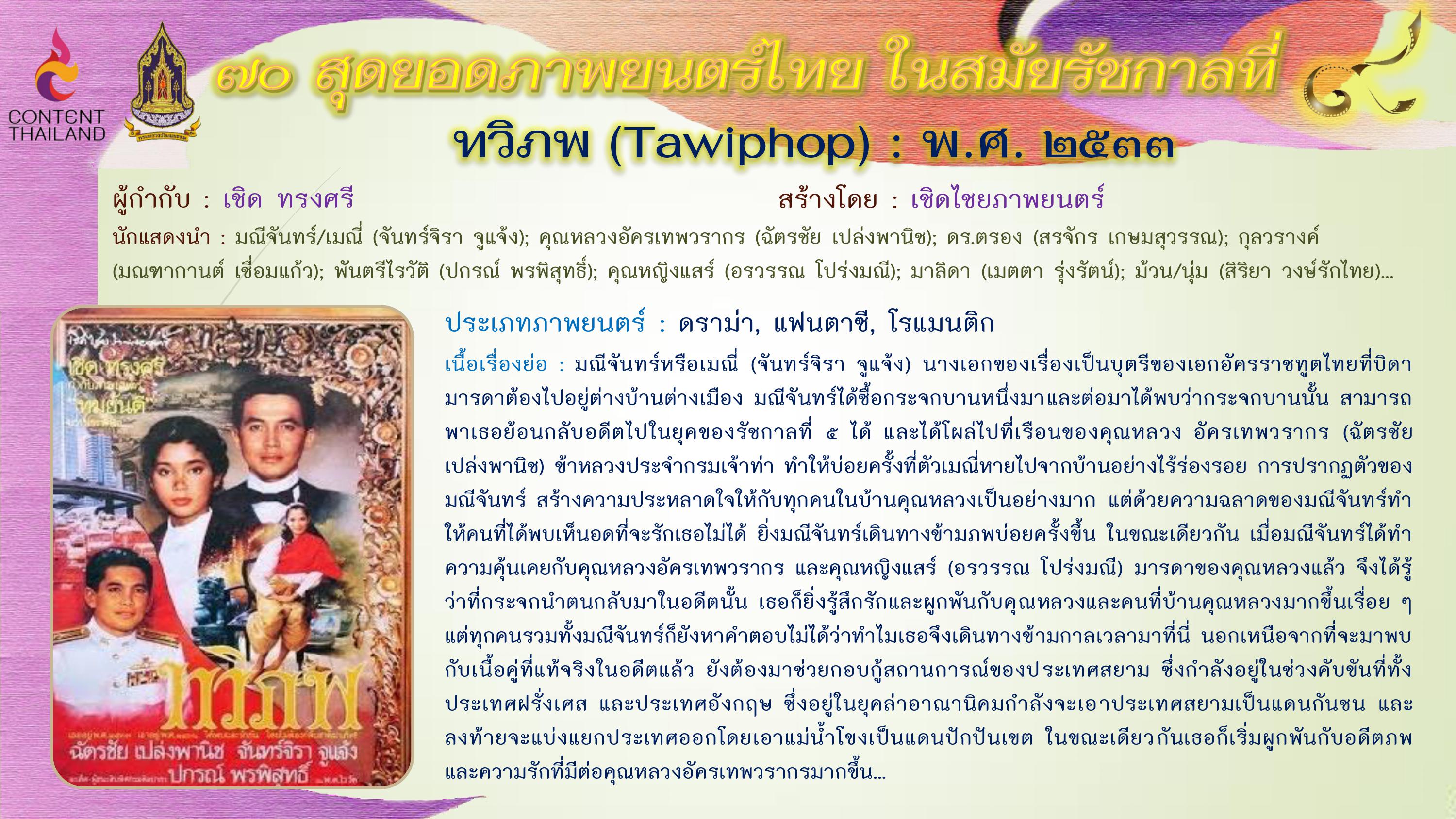 ๗๐ สุดยอดภาพยนตร์ไทย ในสมัยรัชกาลที่ ๙