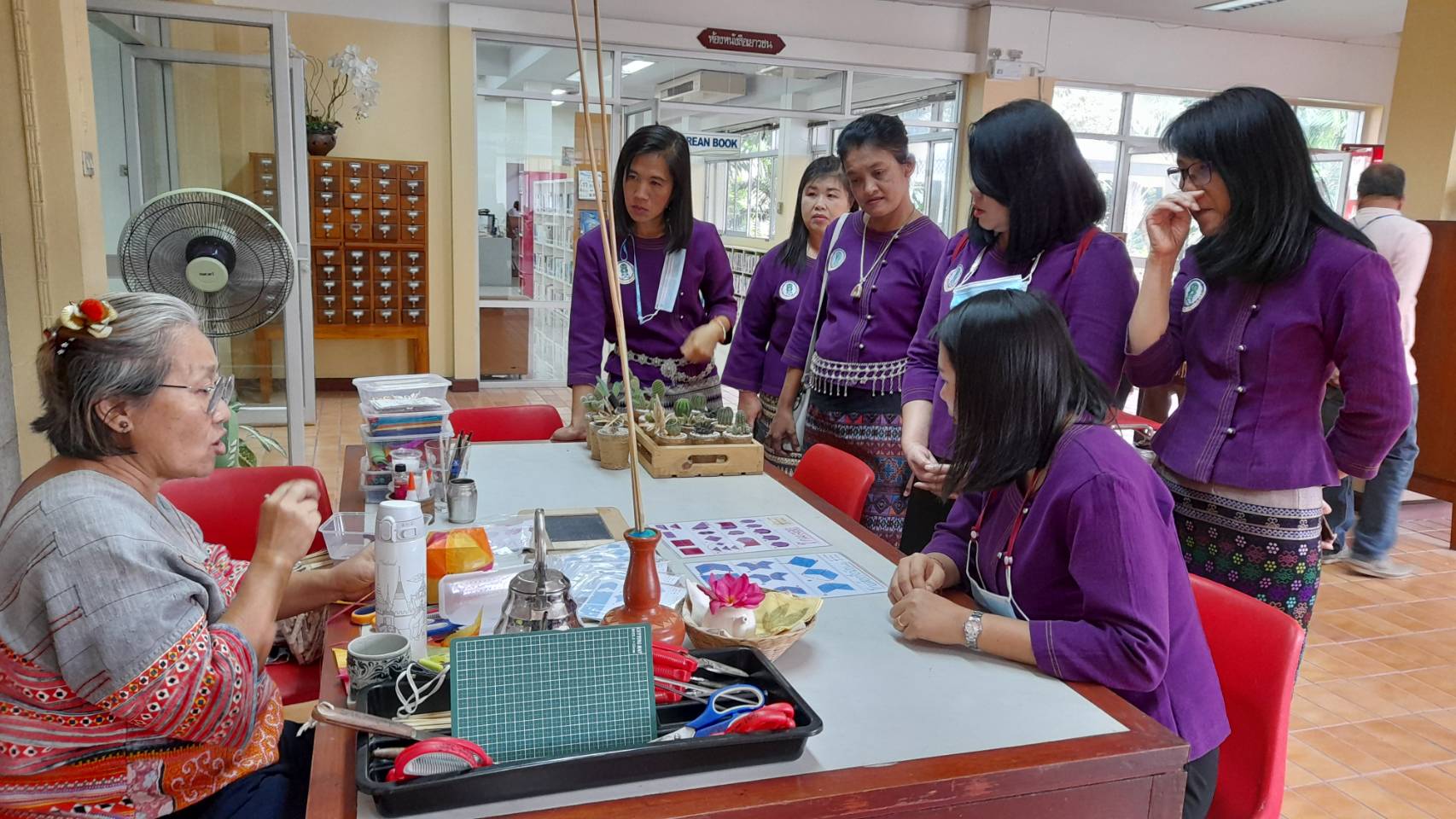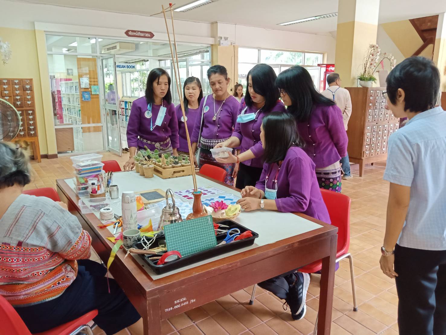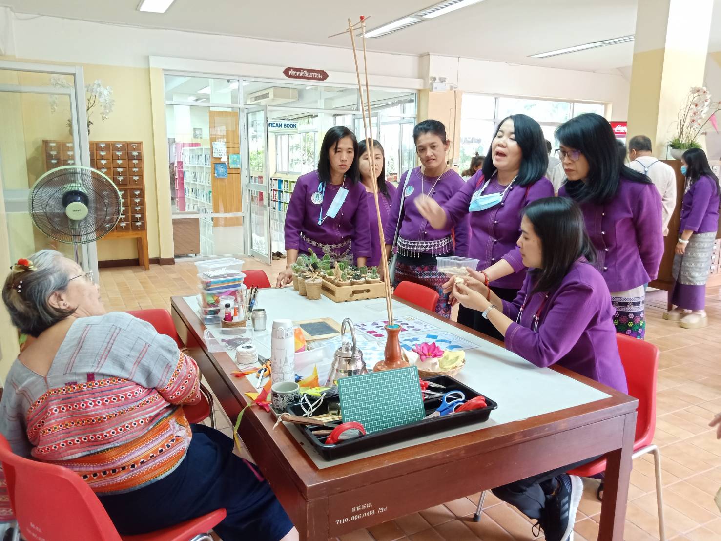 วันเสาร์ที่ ๑๗ ตุลาคม ๒๕๖๓ คณะบุคลากรสำนักงานส่งเสริมการศึกษานอกระบบและการศึกษาตามอัธยาศัย จังหวัดเชียงราย เข้าเยี่ยมชมหอสมุดแห่งชาติรัชมังคลาภิเษก เชียงใหม่ โดยมีนางสาวสุคนธ์ทิพย์ จันทะลุน บรรณารักษ์ชำนาญการ รักษาราชการแทนผู้อำนวยการหอสมุดแห่งชาติรัชมังคลาภิเษก เชียงใหม่ และบุคลากร ให้การต้อนรับ และแนะนำห้องบริการ พร้อมนี้ร่วมทำกิจกรรมส่งเสริมการอ่านในแหล่งเรียนรู้ เช่น การประดิษฐ์ผางผึ้ง การทำลายผ้าด้วยการทุบจากวัสดุธรรมชาติ และการสอนการประดิษฐ์โคมล้านนา โคมพับ โคมควัน เป็นต้น