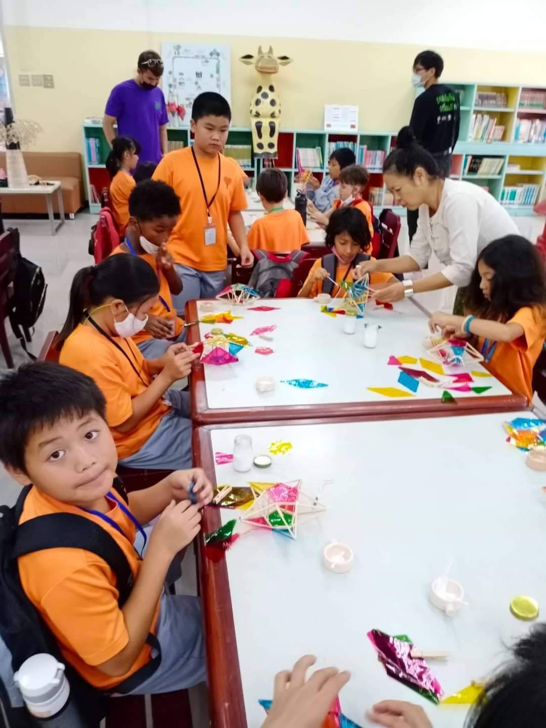 คณะครูจากโรงเรียนนานาชาติปัญญาเด่น ร่วมจัดกิจกรรมส่งเสริมการเรียนรู้ให้นักเรียนทำโคมล้านนารูปดาว