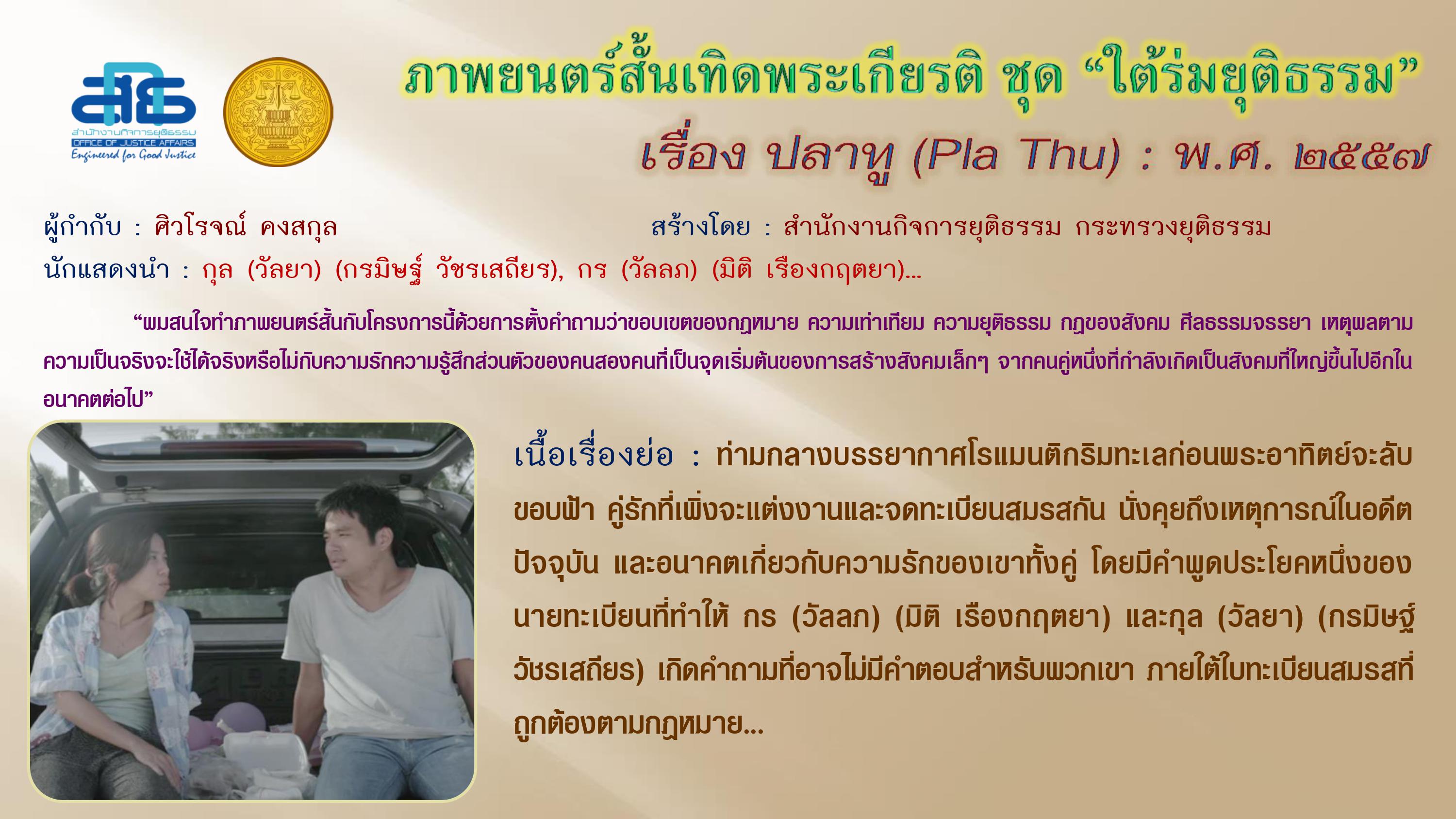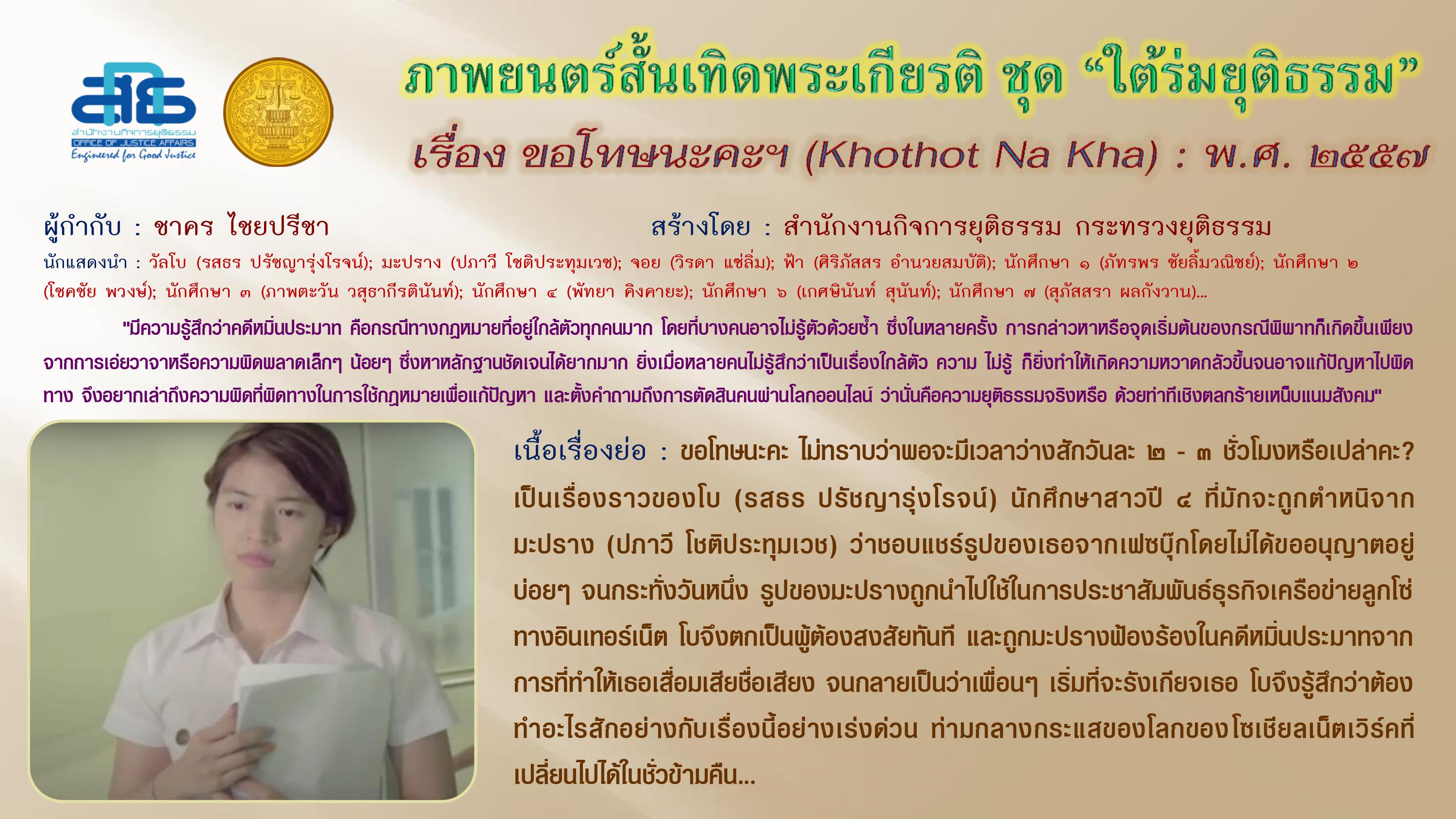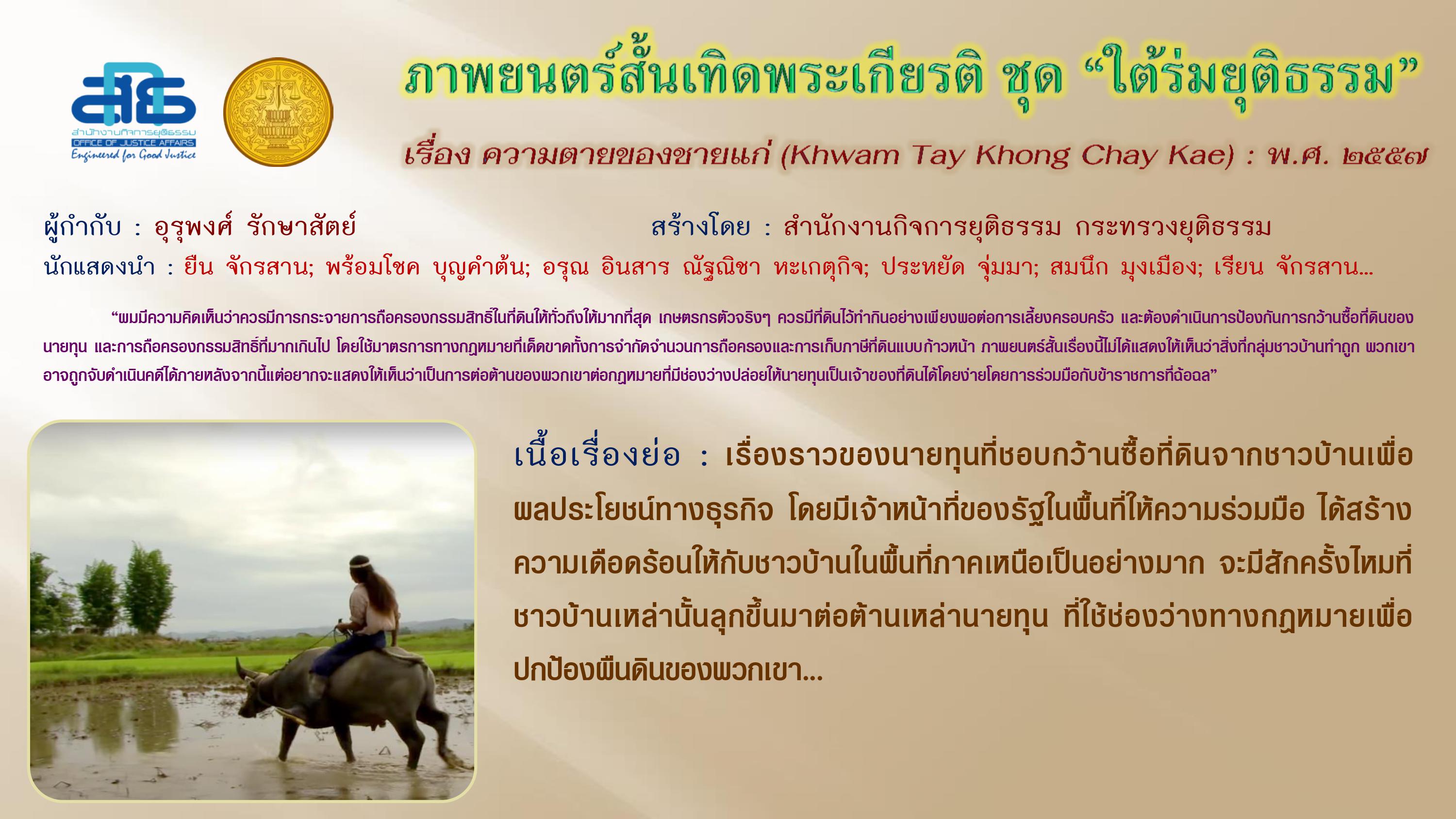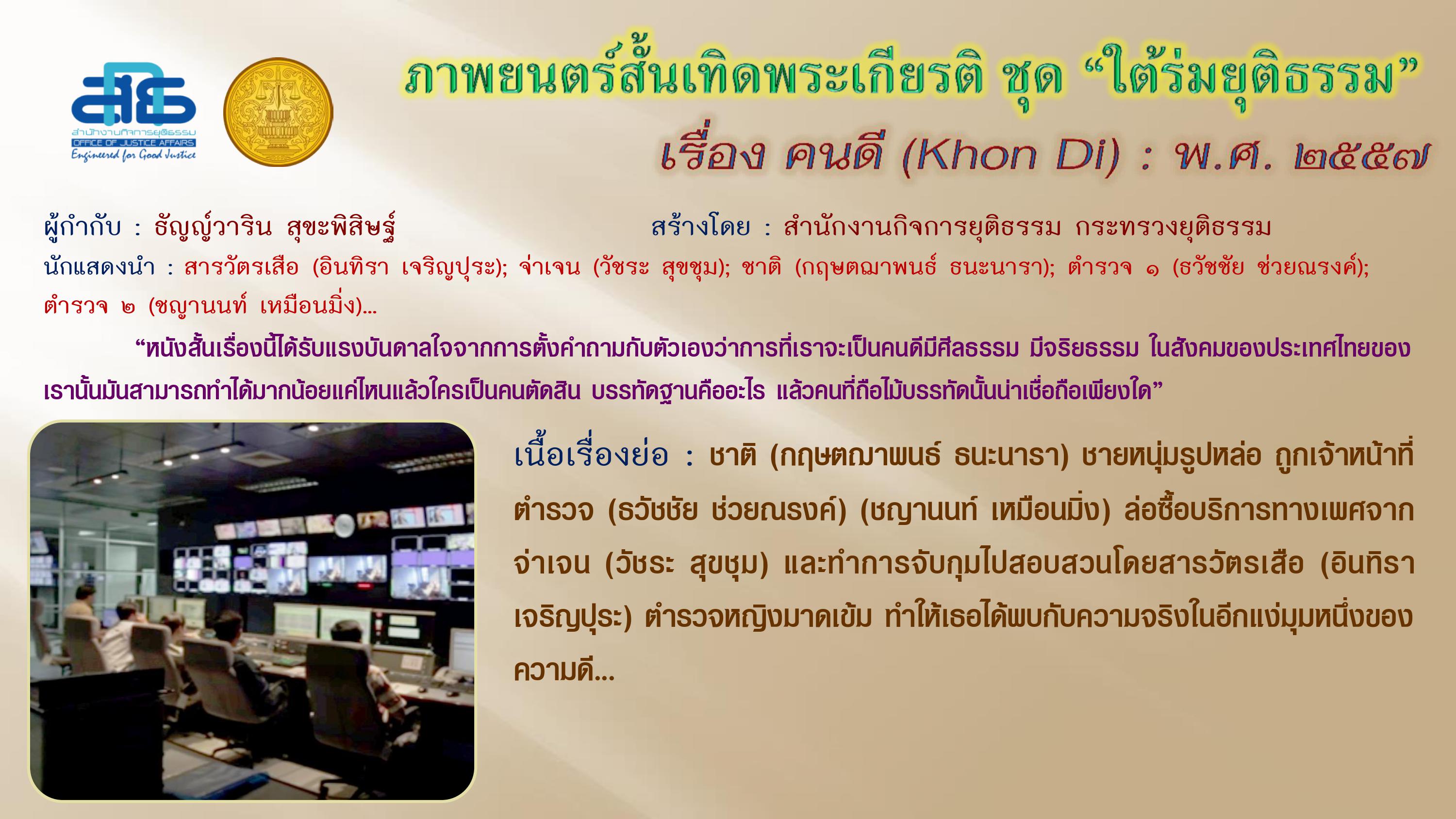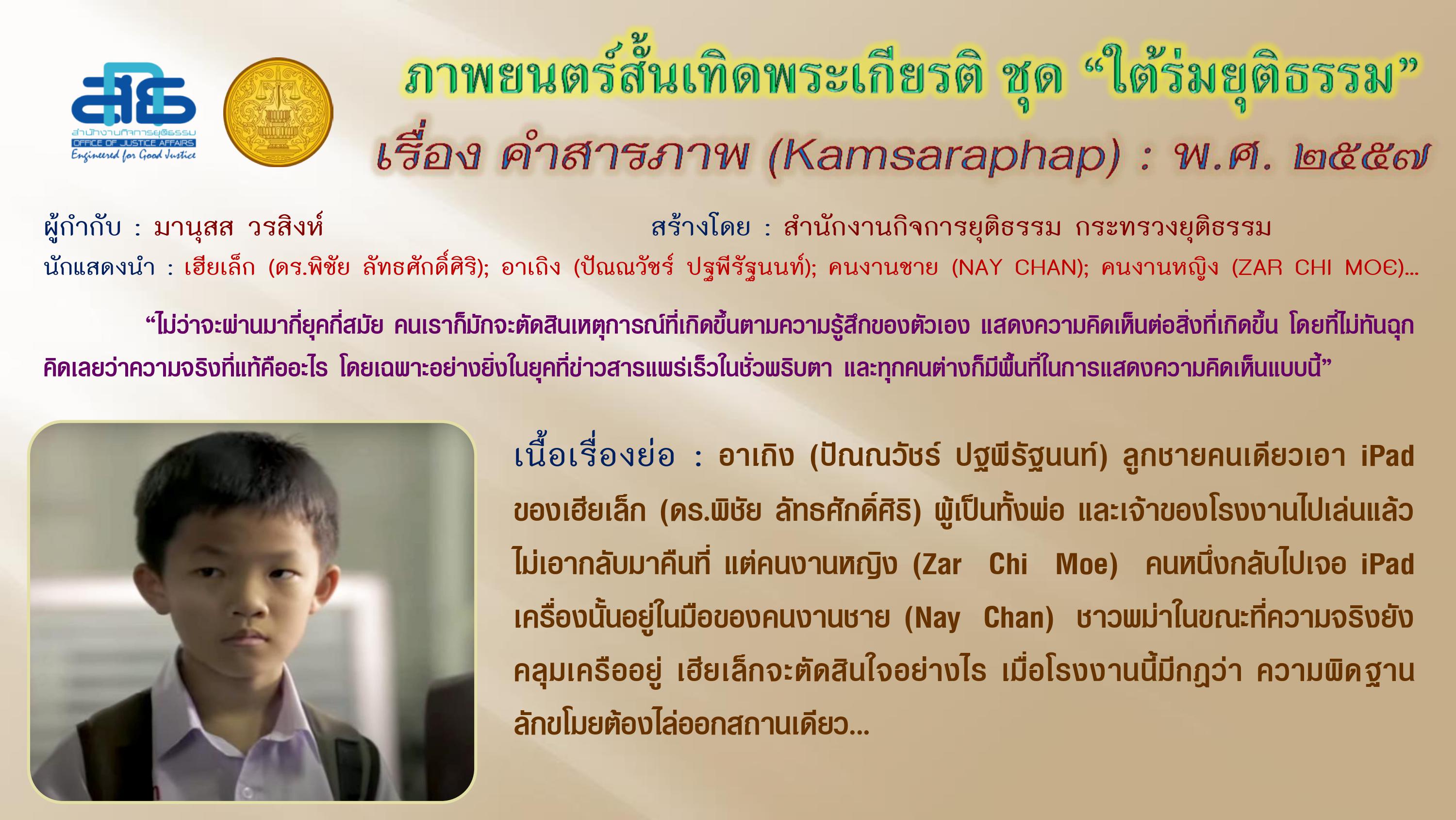 ภาพยนตร์สั้นเทิดพระเกียรติ ชุด “ใต้ร่มยุติธรรม” เนื่องในโอกาสเฉลิมพระชนมพรรษา ๘๗ พรรษา วันที่ ๕ ธันวาคม พ.ศ.๒๕๕๗