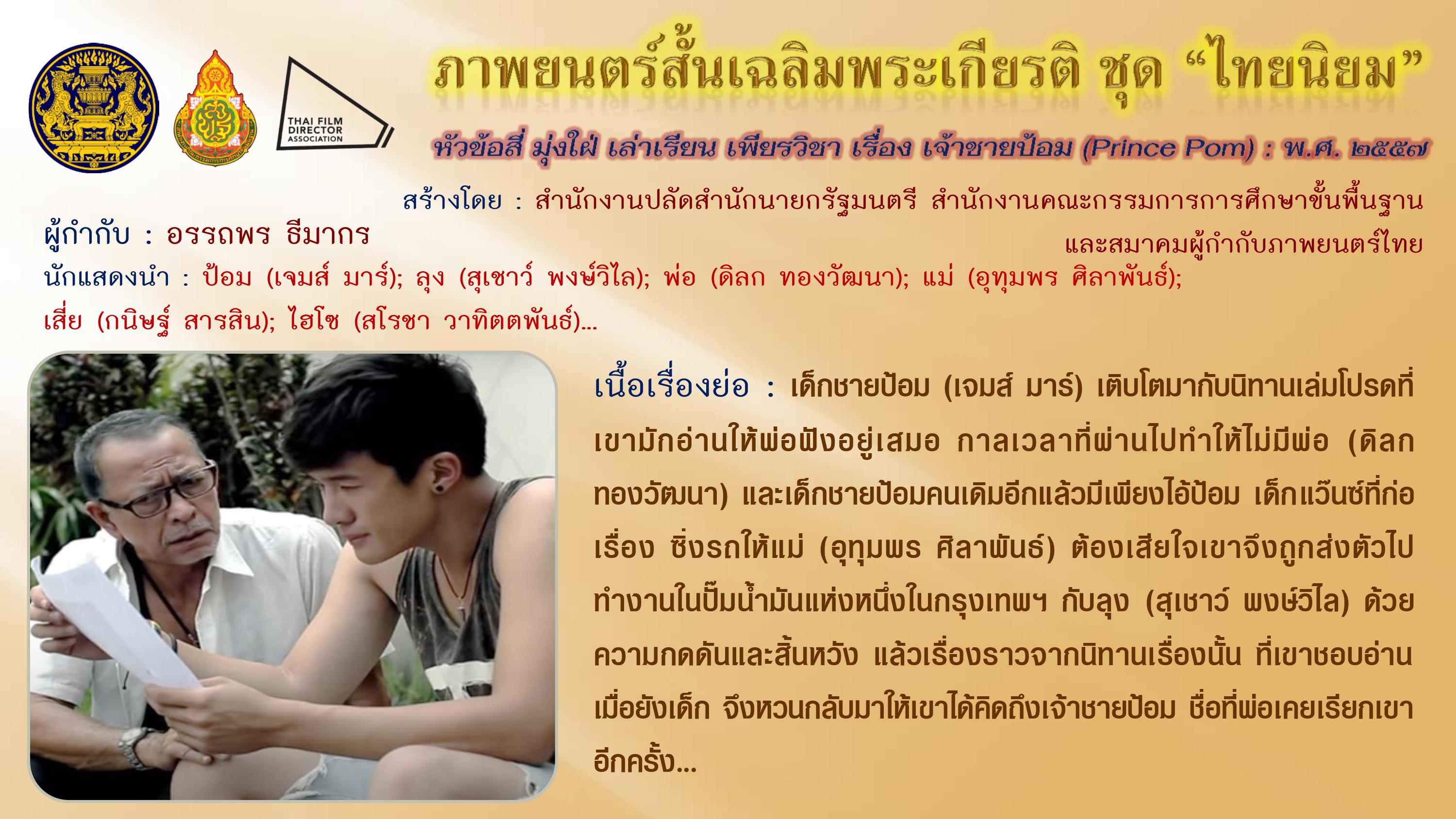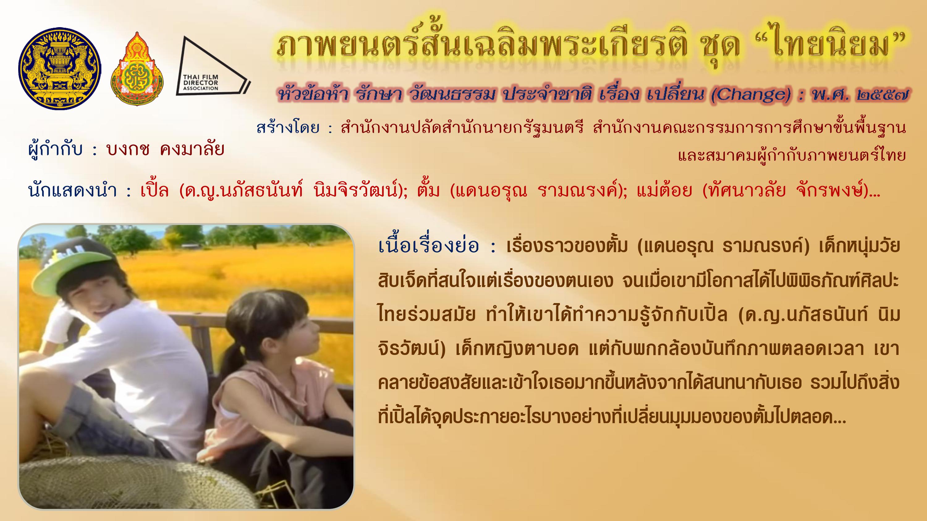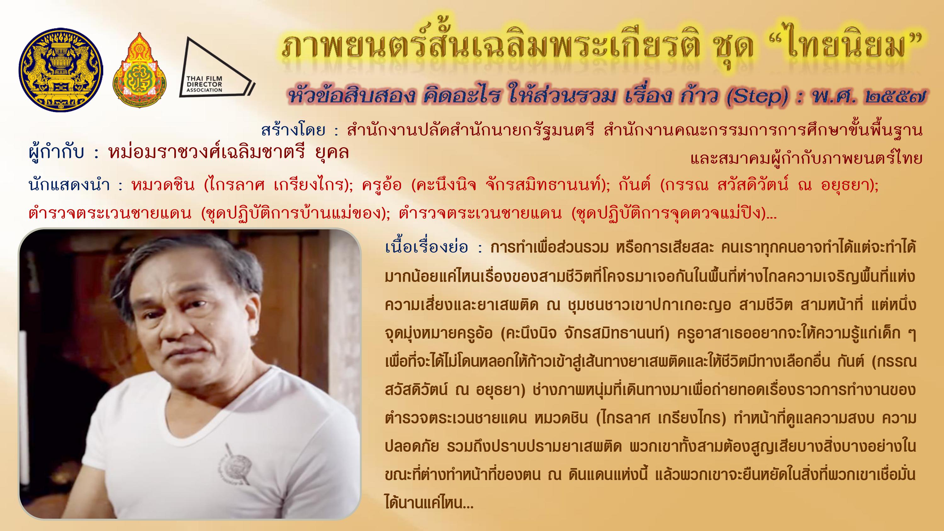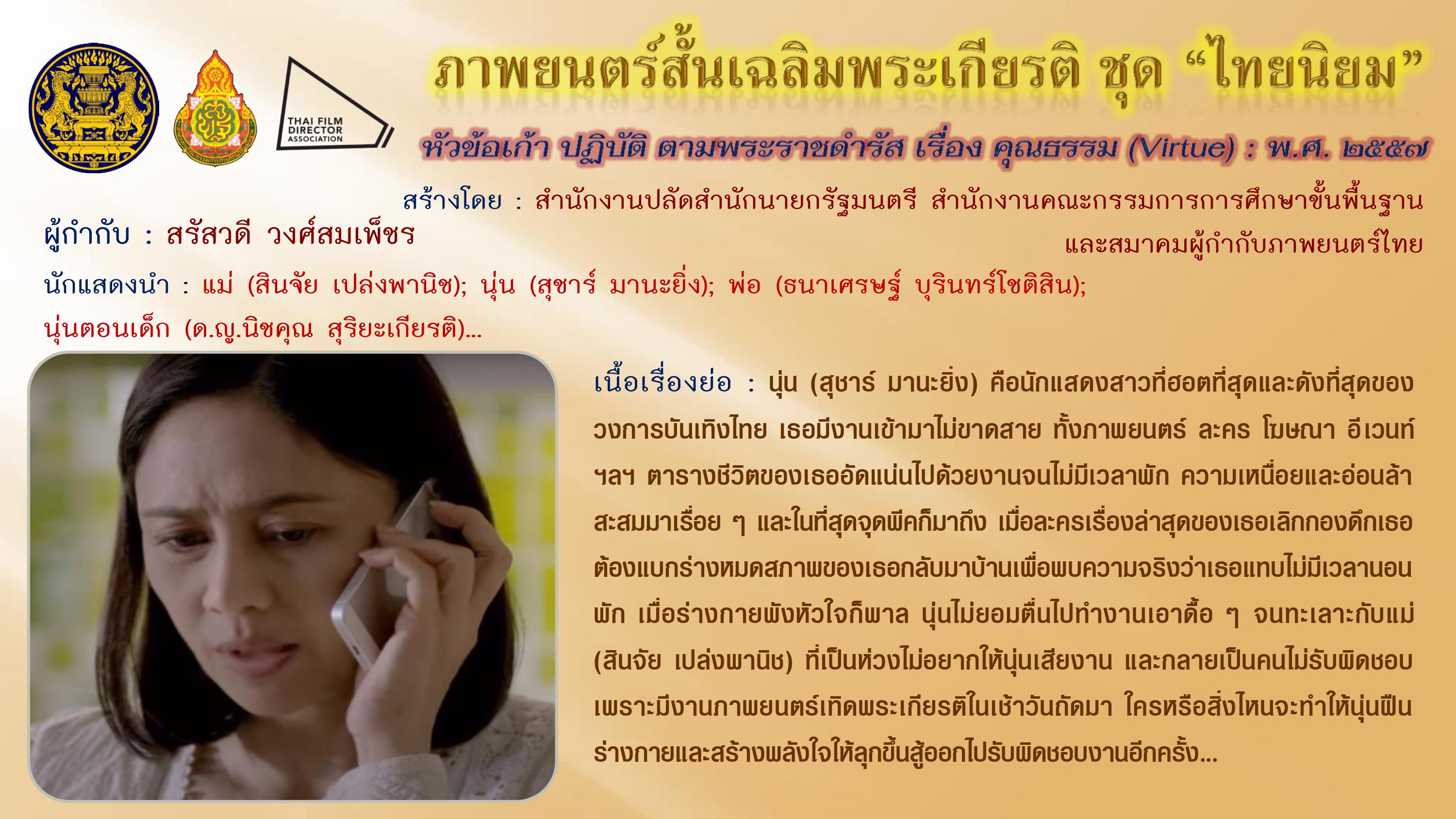 ภาพยนตร์สั้นเฉลิมพระเกียรติ ชุด “ไทยนิยม” เนื่องในโอกาสมหามงคลเฉลิมพระชนมพรรษา ๘๗ พรรษา ๕ ธันวาคม ๒๕๕๗
