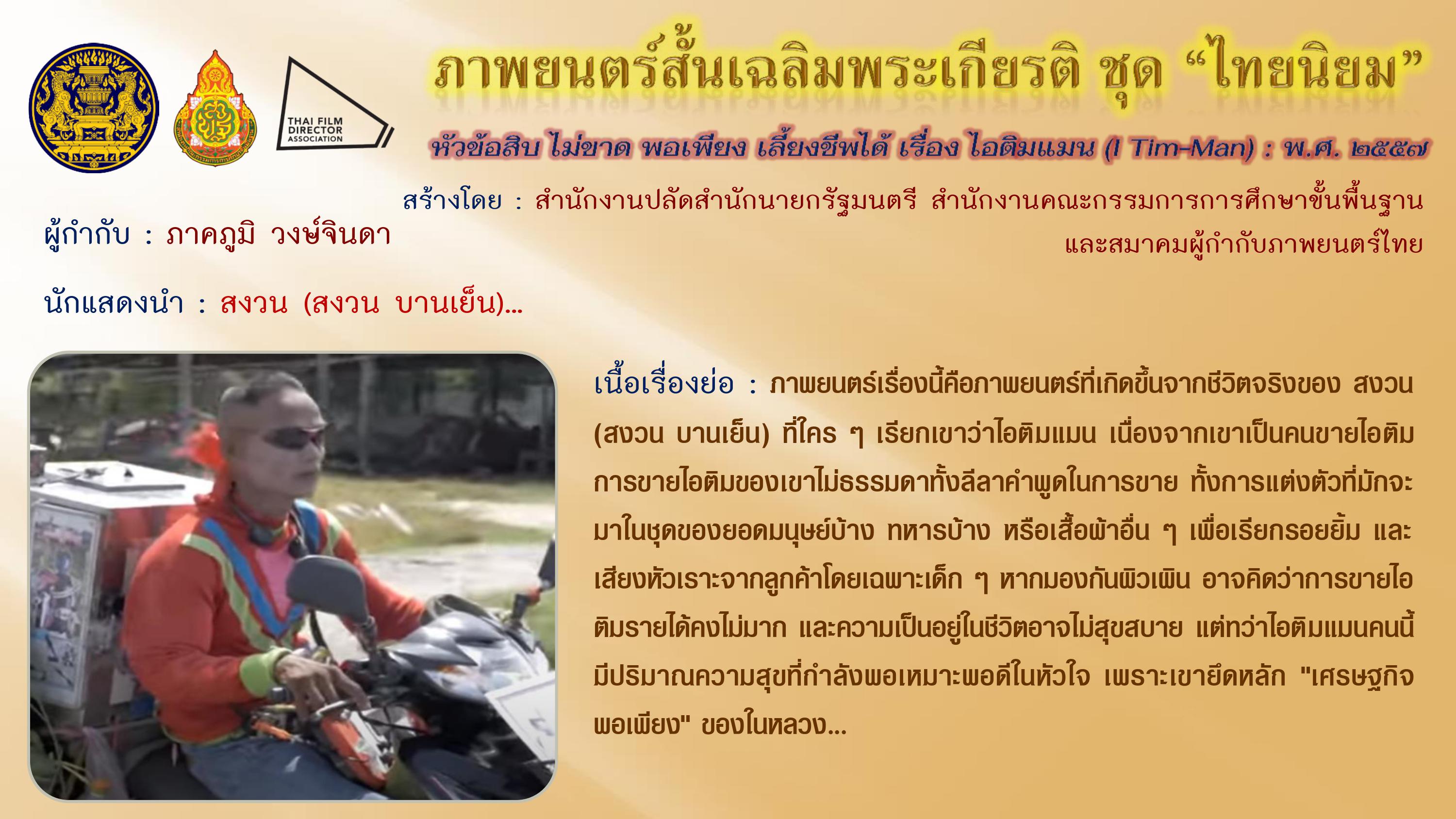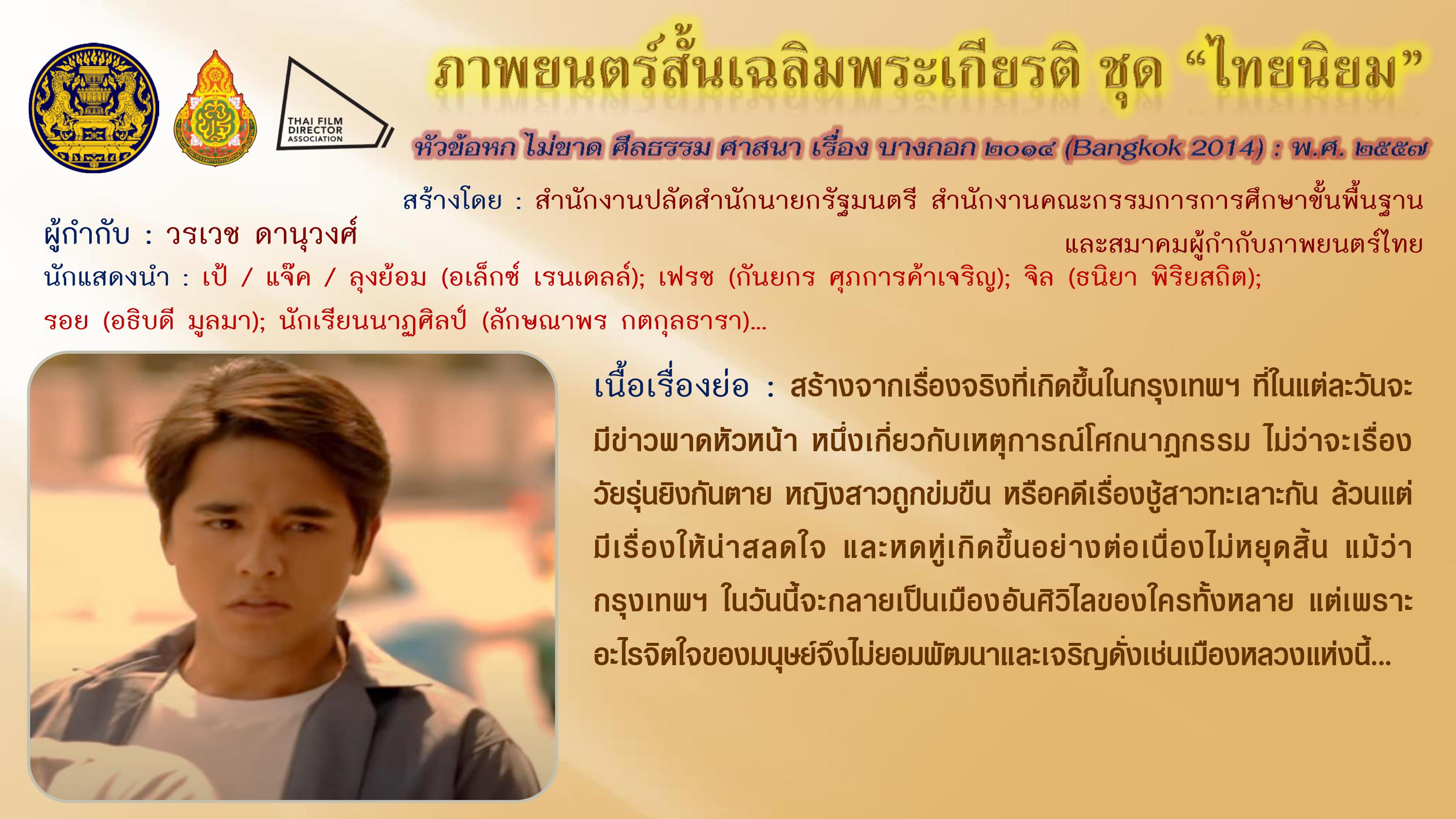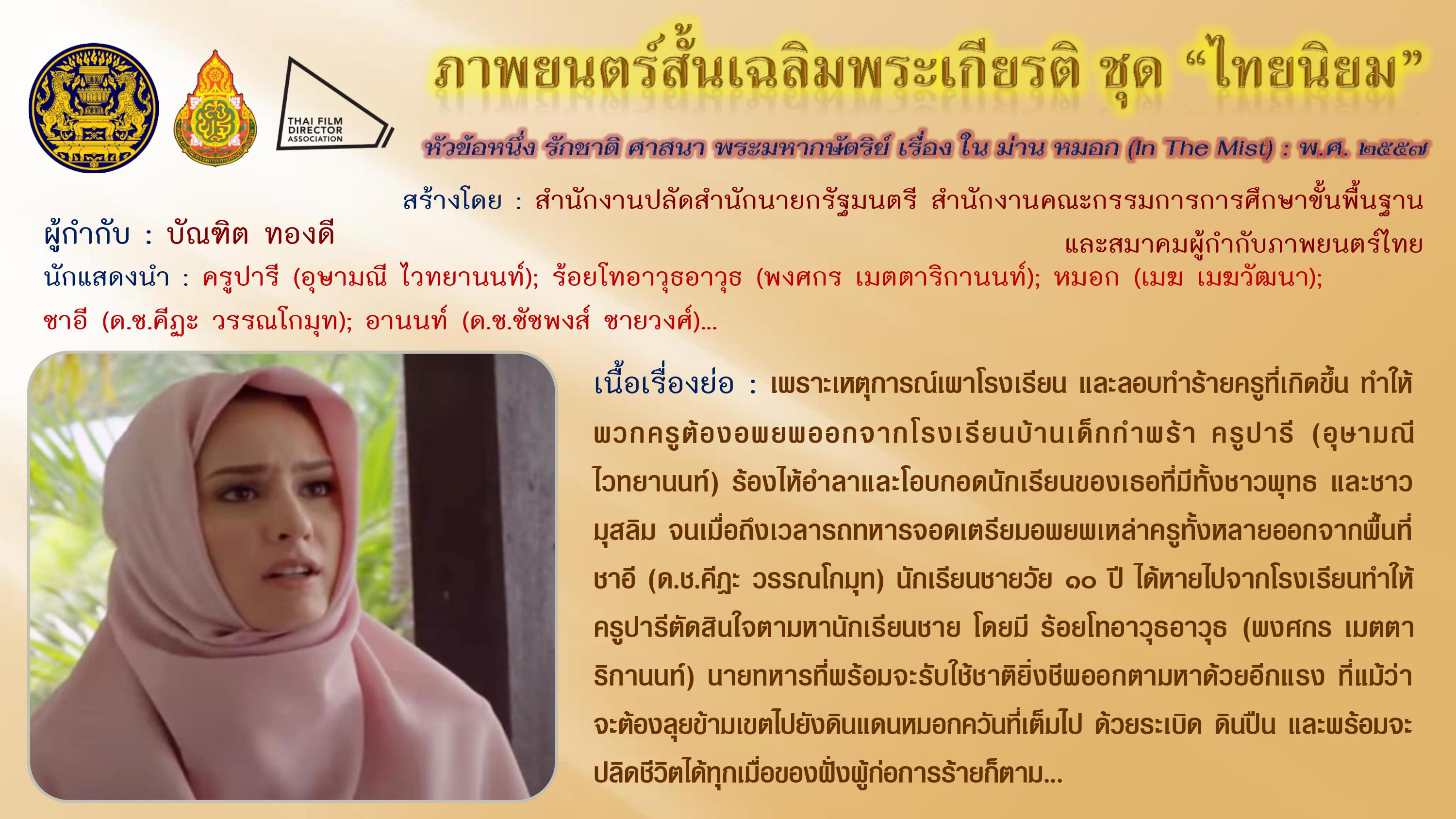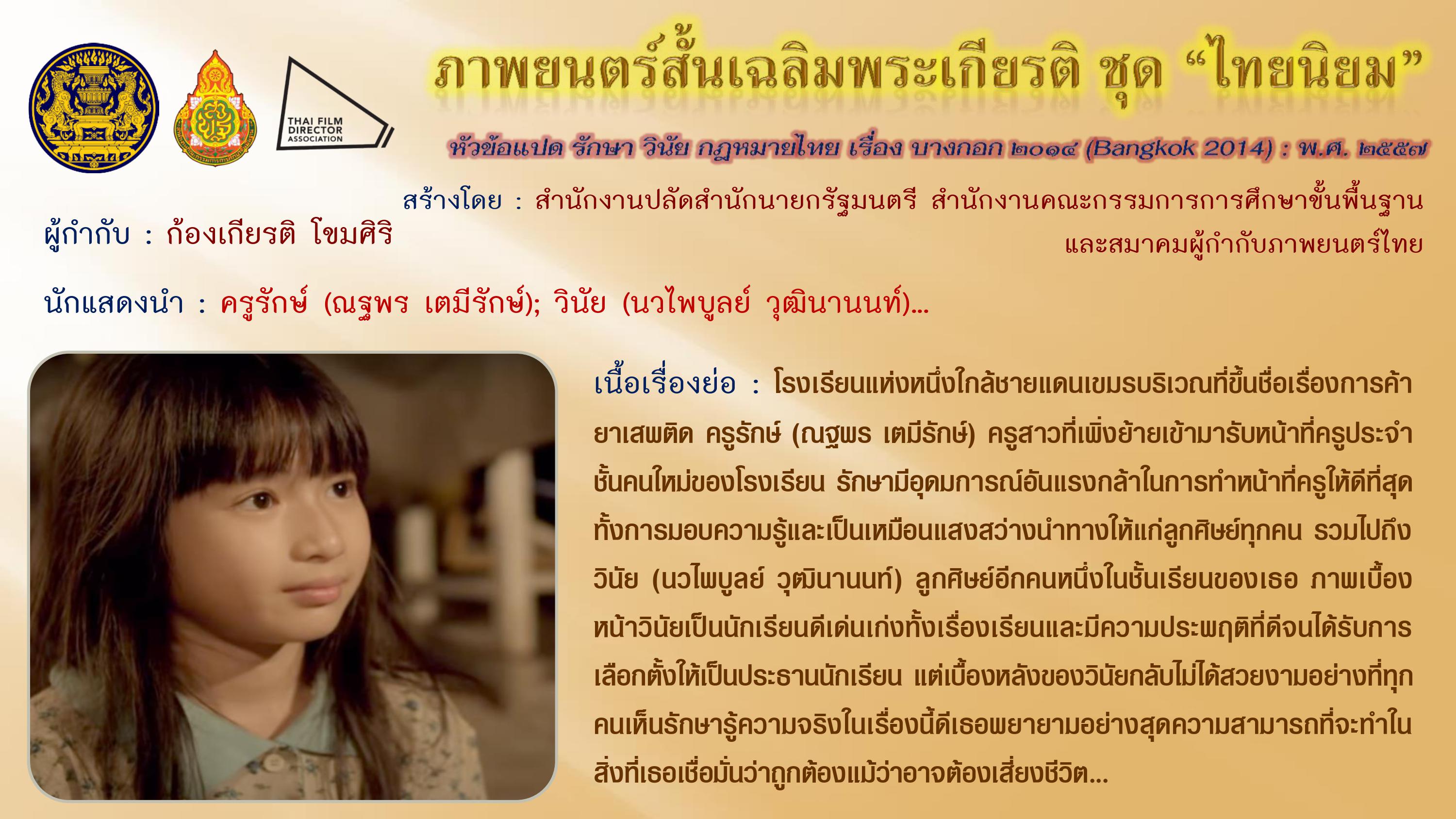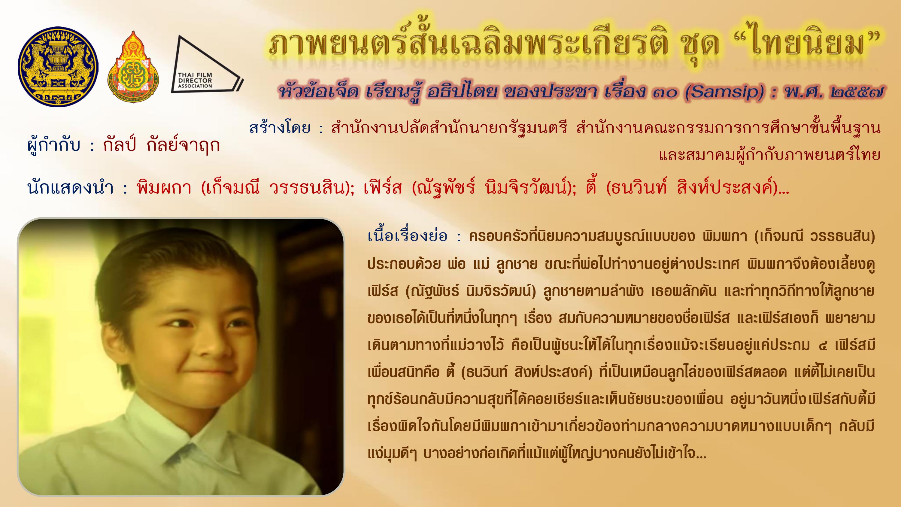 ภาพยนตร์สั้นเฉลิมพระเกียรติ ชุด “ไทยนิยม” เนื่องในโอกาสมหามงคลเฉลิมพระชนมพรรษา ๘๗ พรรษา ๕ ธันวาคม ๒๕๕๗