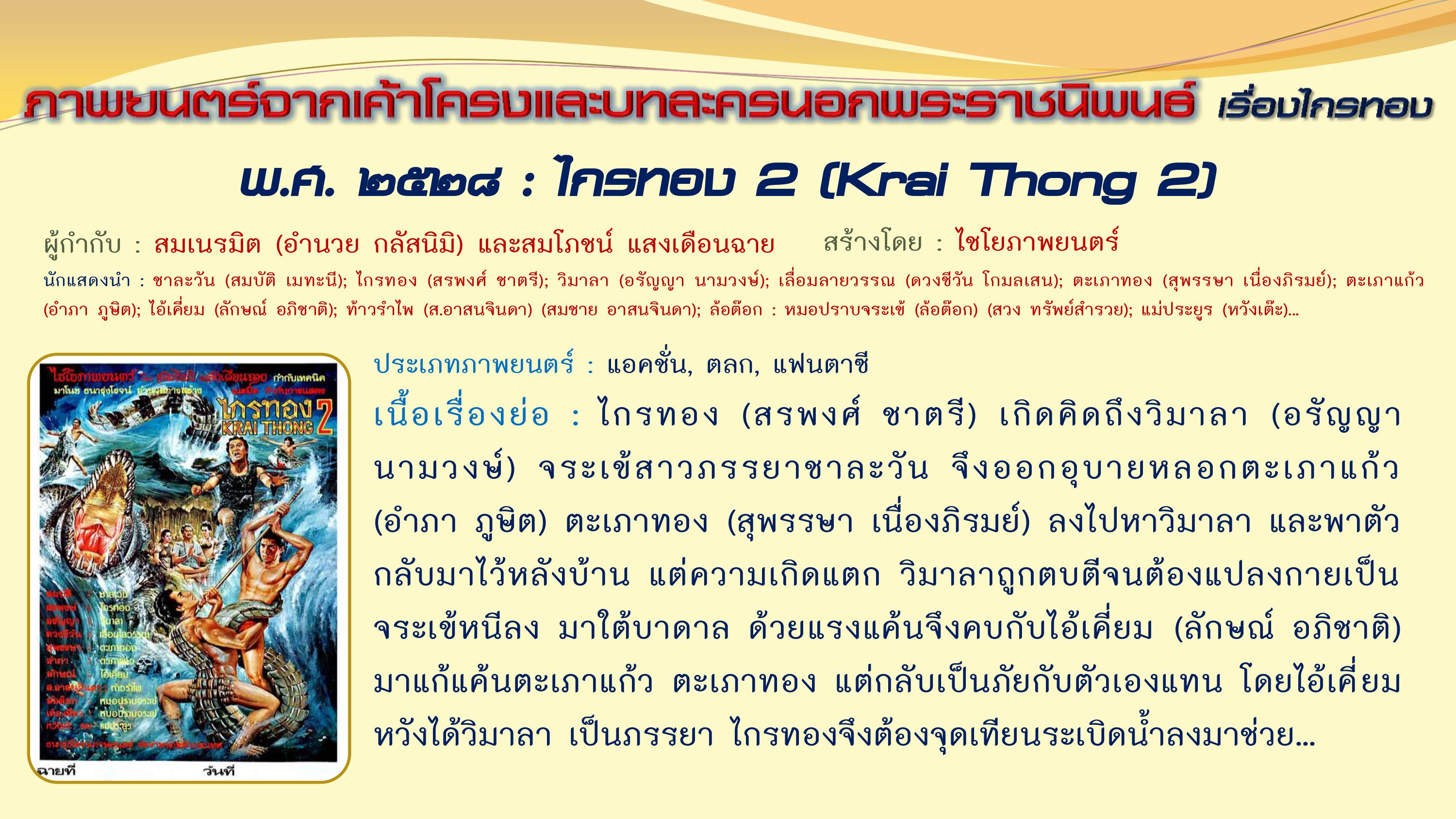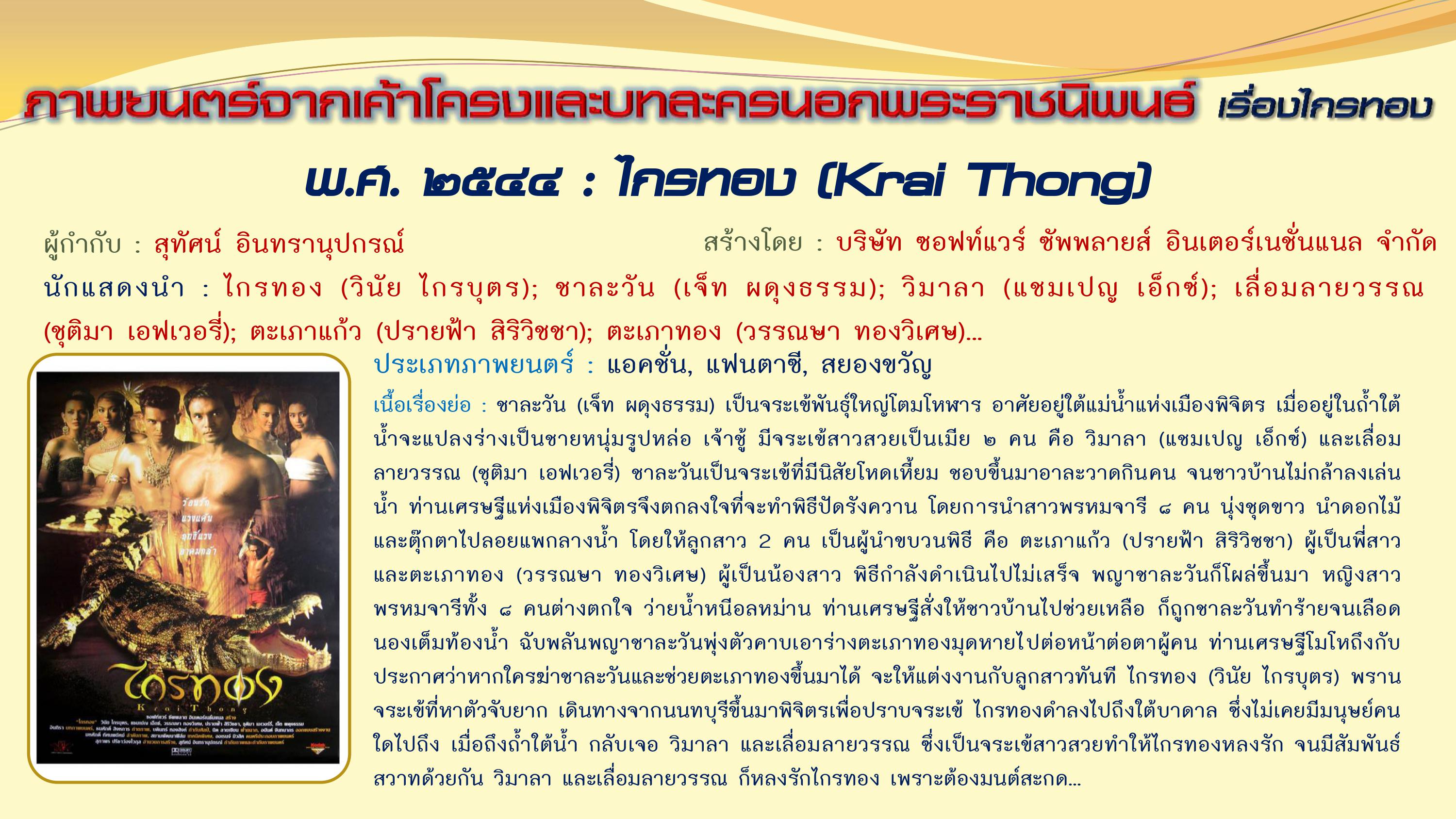 ภาพยนตร์จากเค้าโครงและบทละครนอกพระราชนิพนธ์ เรื่องไกรทอง ของพระบาทสมเด็จพระพุทธเลิศหล้านภาลัย