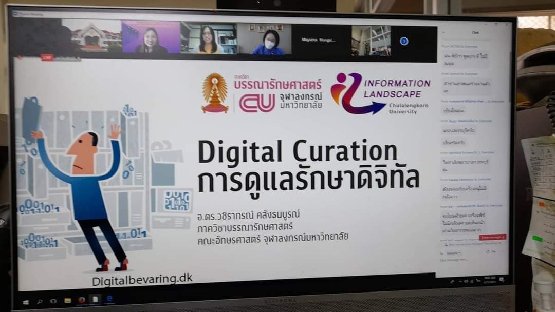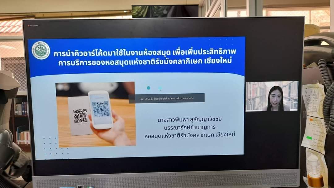 วันศุกร์ที่ ๒๕ มิถุนายน ๒๕๖๔ นางวราภรณ์ วสุนธรารัตน์ ผู้อำนวยการหอสมุดแห่งชาติรัชมังคลาภิเษก เชียงใหม่ พร้อมด้วยนางสาวสุคนธ์ทิพย์ จันทะลุน และนางสาวพิมพา สุธัญญาวัชชัย บรรณารักษ์ชำนาญการ เข้าร่วมประชุมวิชาการหอสมุดแห่งชาติ ประจำปี ๒๕๖๔ เรื่อง Digital Curation : การจัดการข้อมูลในยุคสถานการณ์ COVID-19 ผ่านโปรแกรม ZOOM โดยมีนางสาวพิมพา สุธัญญาวัชชัย ร่วมเป็นวิทยากรนำเสนอแนวความคิด เรื่อง การนำคิวอาร์โค้ดมาใช้ในงานห้องสมุดเพื่อเพิ่มประสิทธิภาพการบริการของหอสมุดแห่งชาติรัชมังคลาภิเษก เชียงใหม่