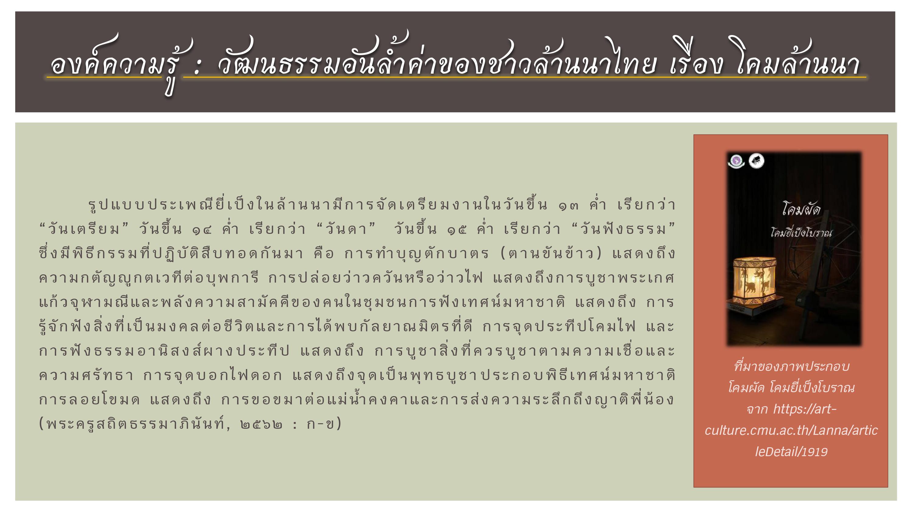 องค์ความรู้ : วัฒนธรรมอันล้ำค่าของชาวล้านนาไทย