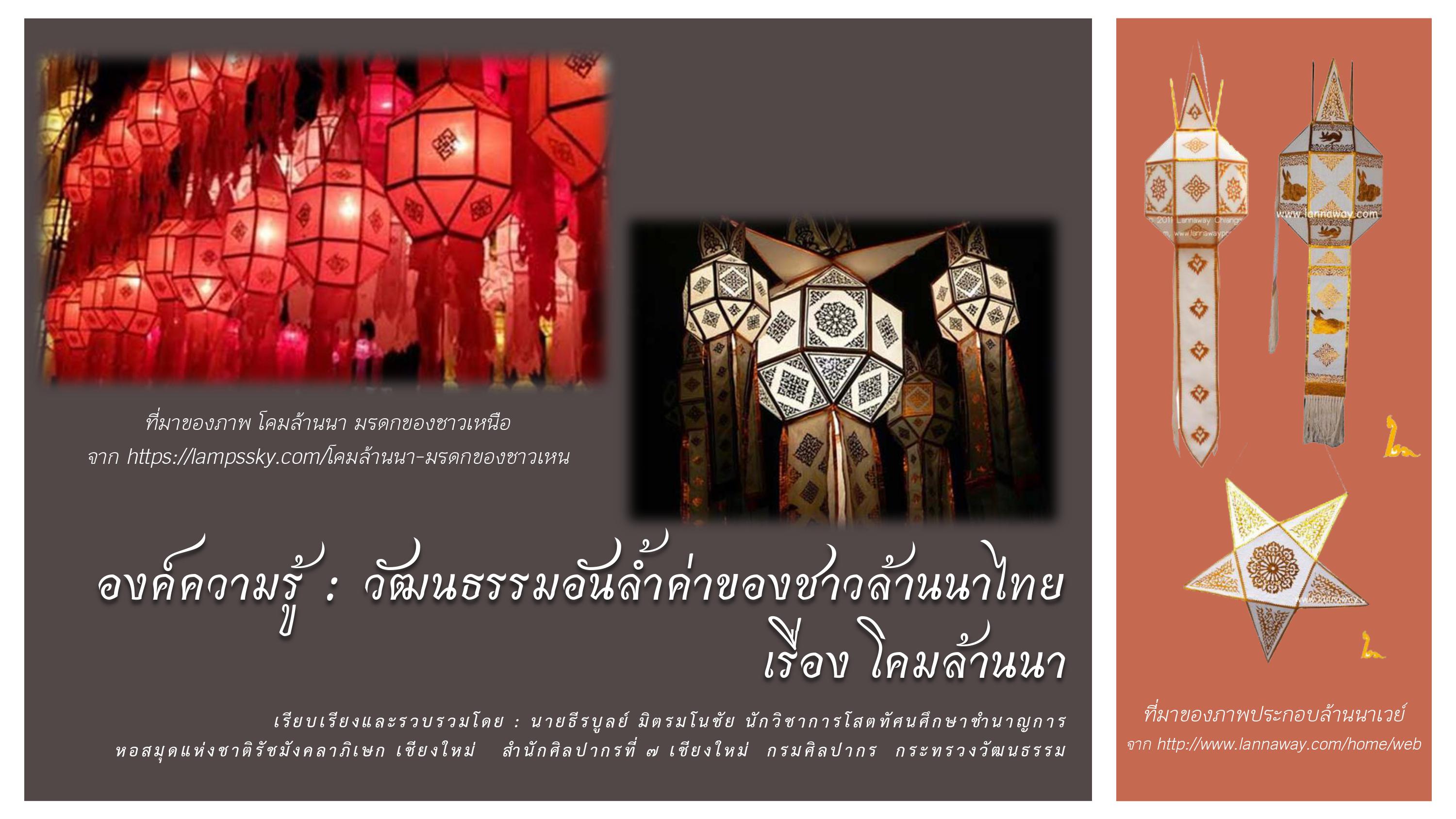 lampssky. โคมล้านนา มรดกของชาวเหนือ. [ออนไลน์]. สืบค้นเมื่อ ๒๑ สิงหาคม ๒๕๖๔, จาก https://lampssky.com/โคมล้านนา-มรดกของชาวเหน